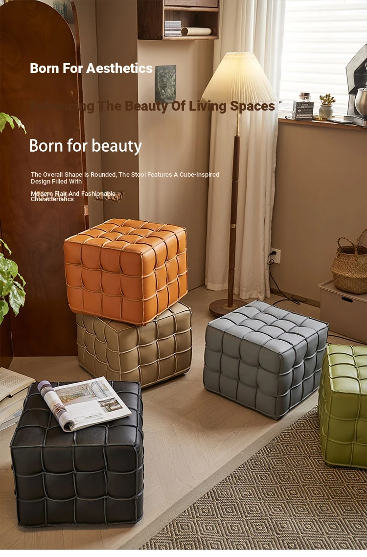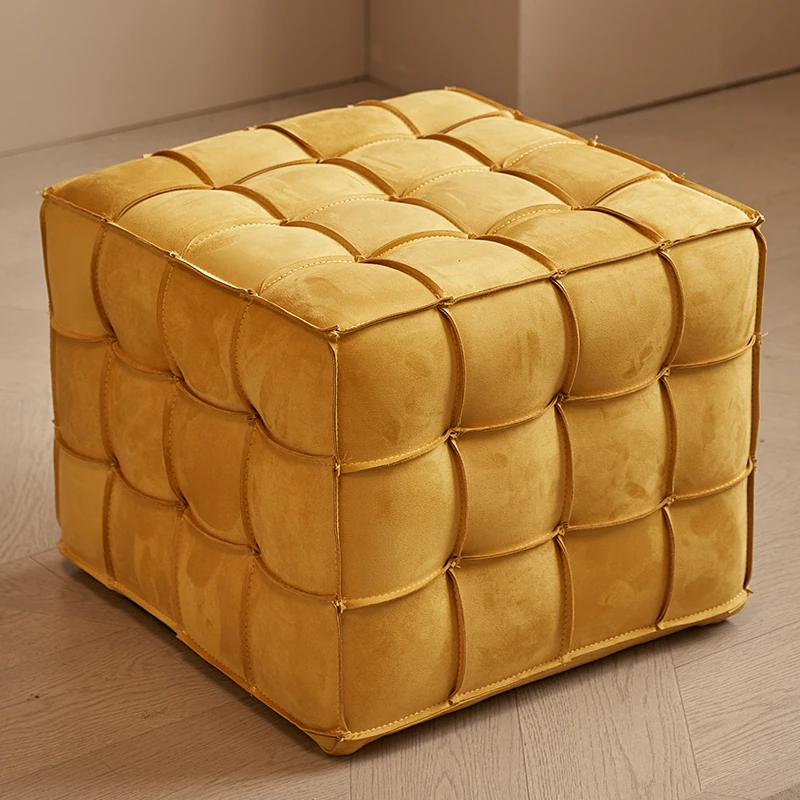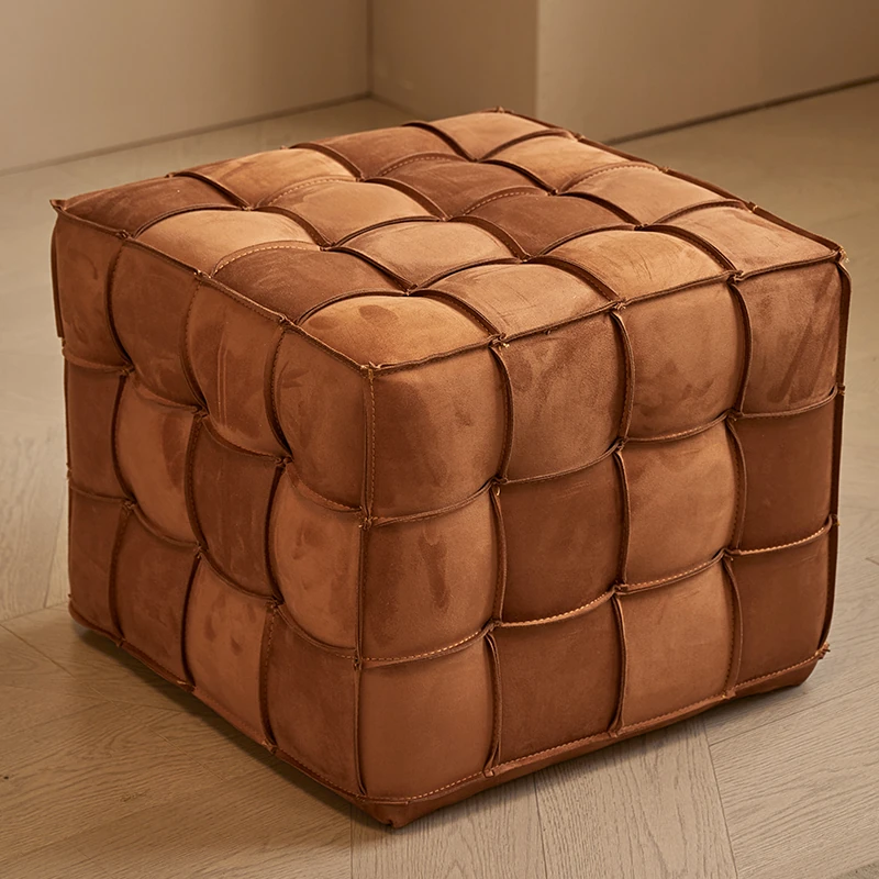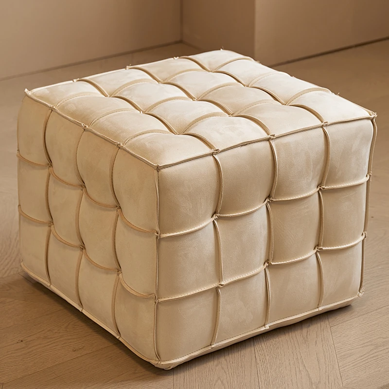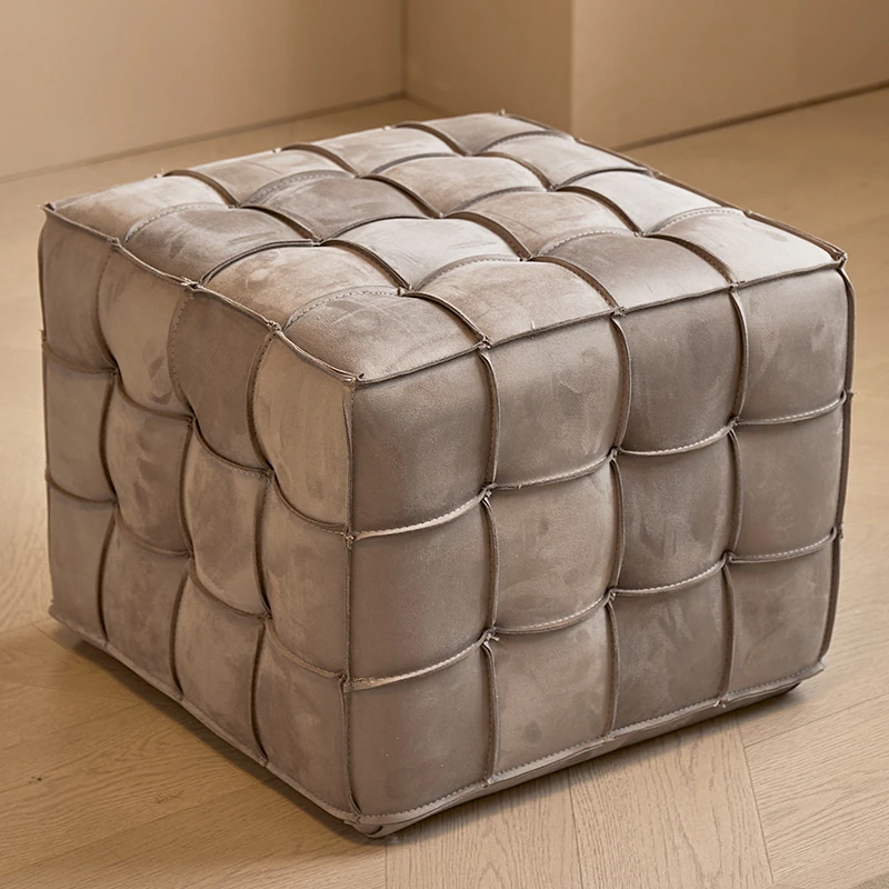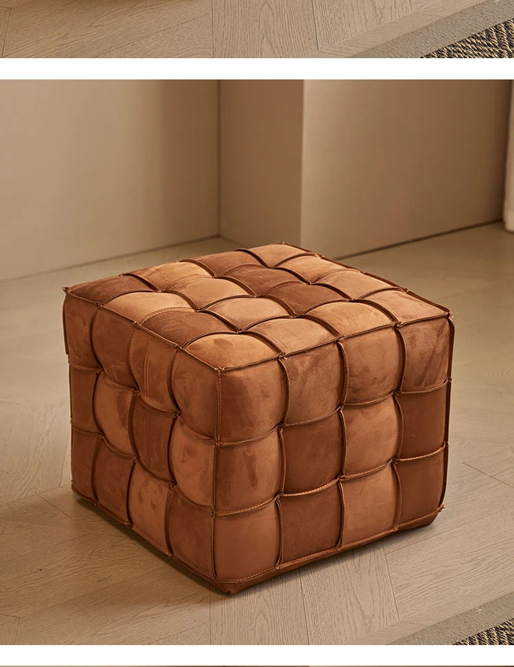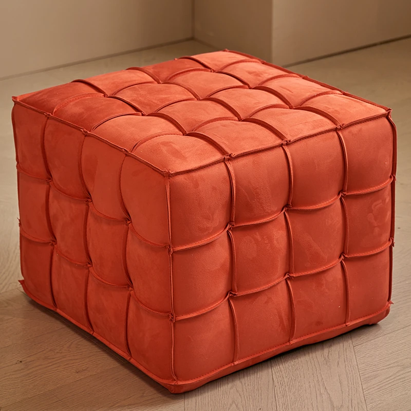 Stylish Velvet Upholstered Cube Ottoman - Versatile Genuine Leather Footstool for Dressing Room, Makeup, and Shoe Changing - Perfect for Home Decor and Comfort