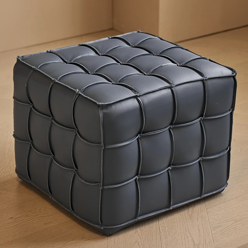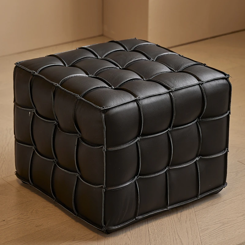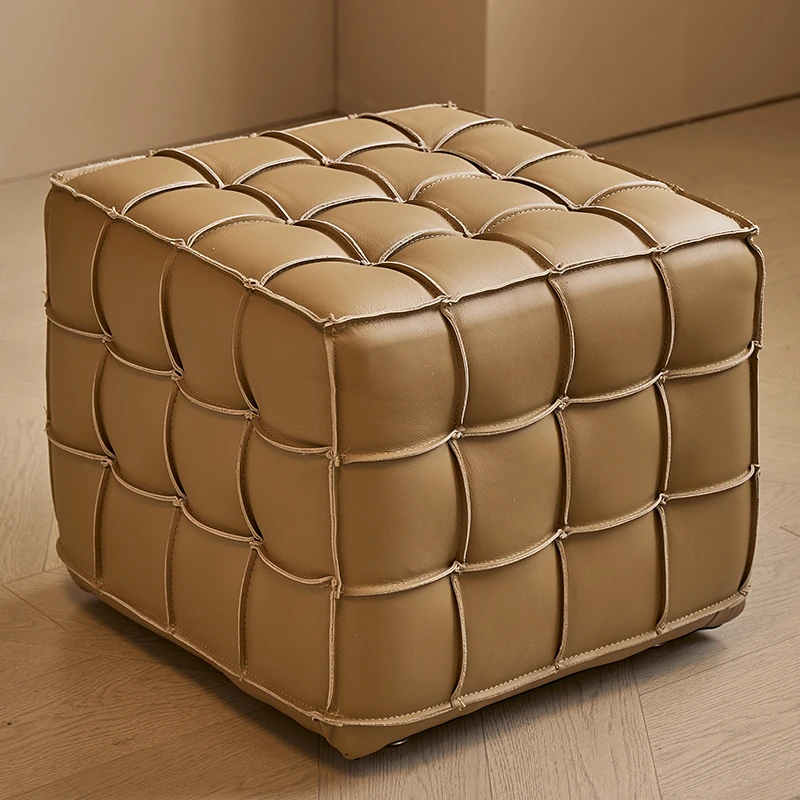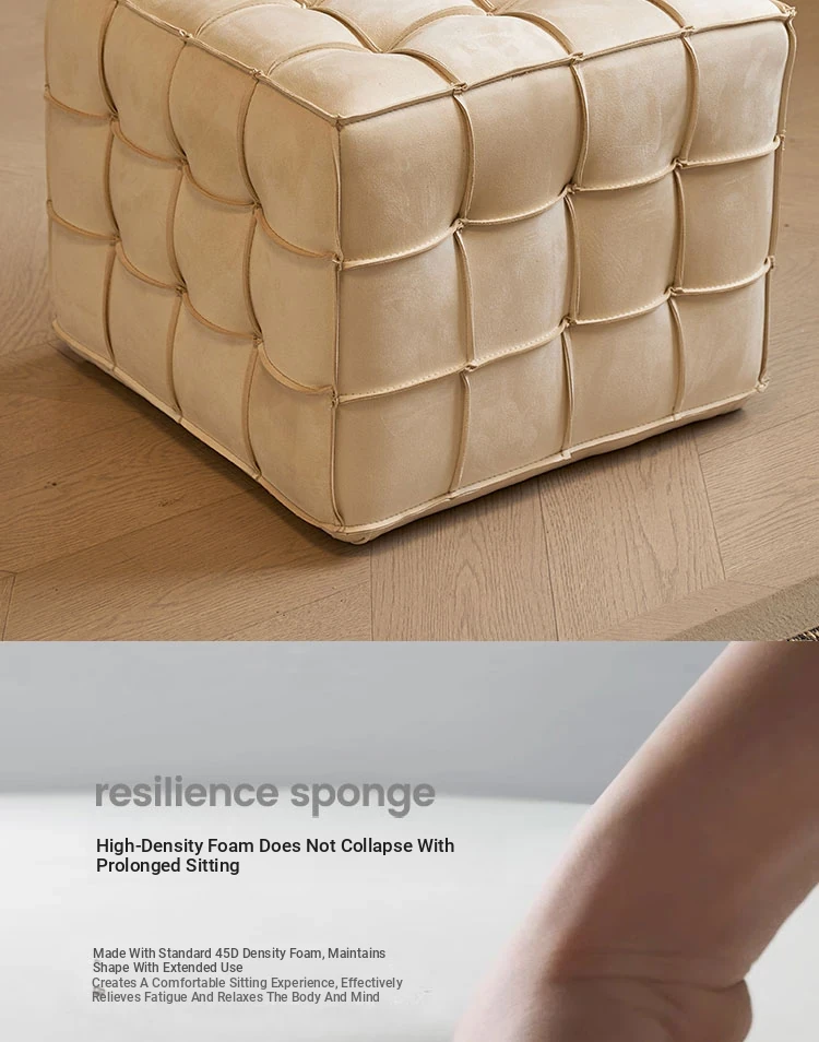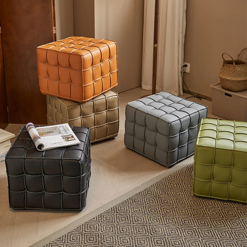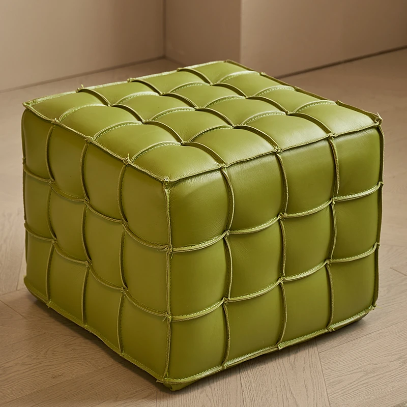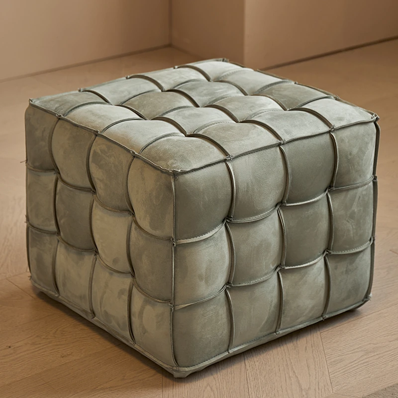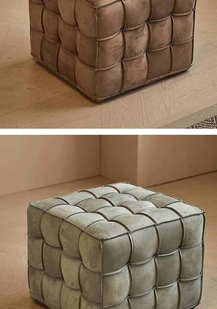 Stylish Velvet Upholstered Cube Ottoman - Versatile Genuine Leather Footstool for Dressing Room, Makeup, and Shoe Changing - Perfect for Home Decor and Comfort