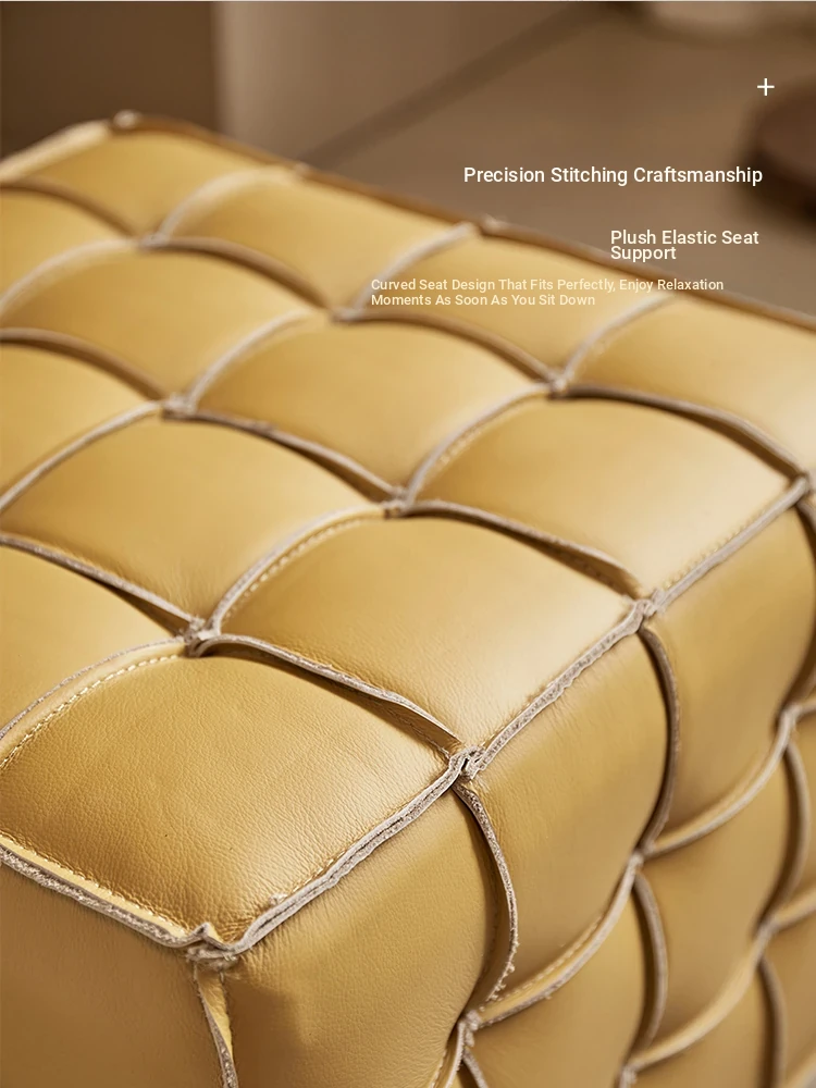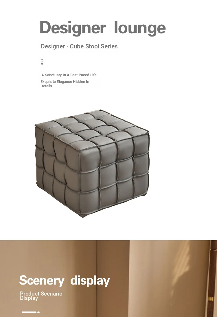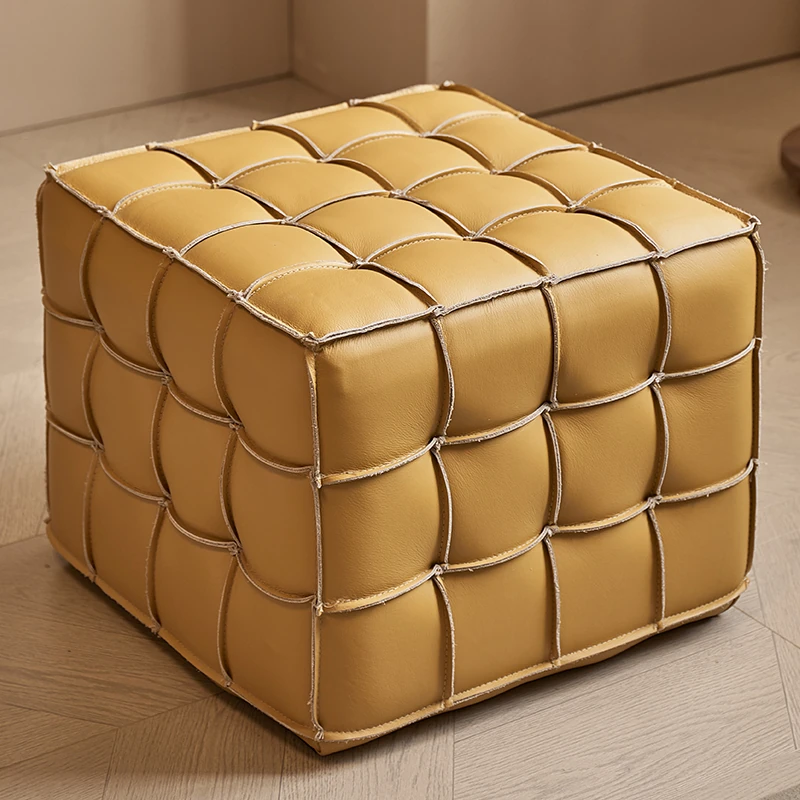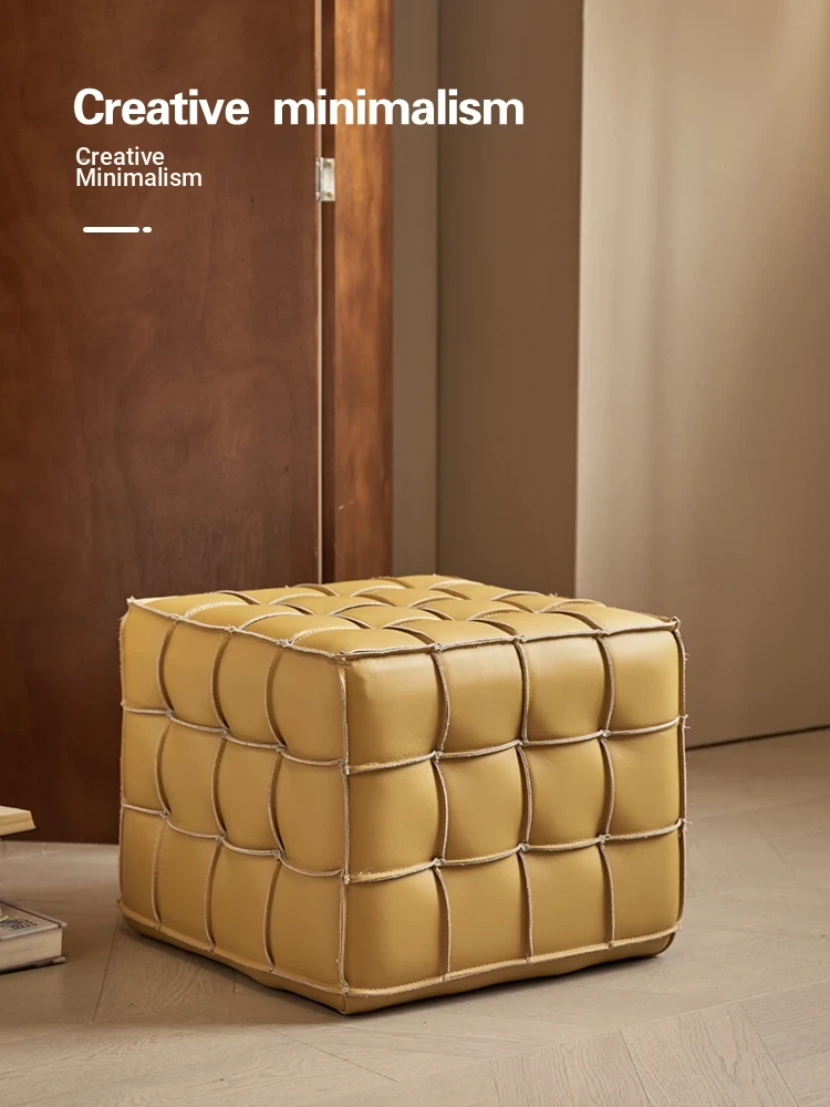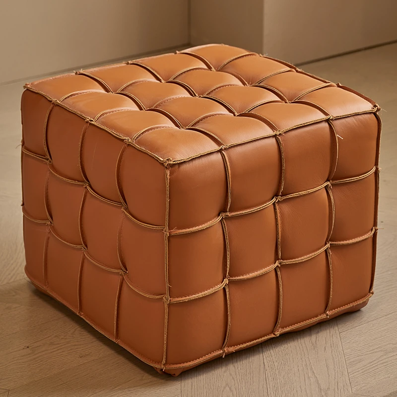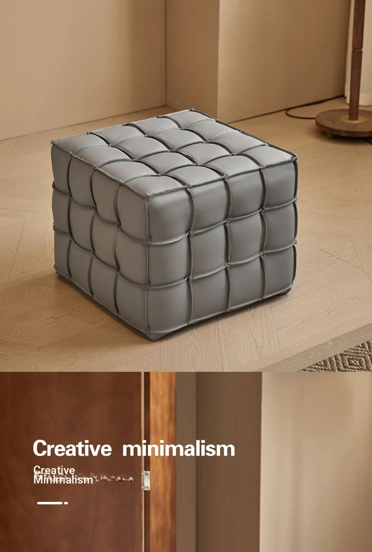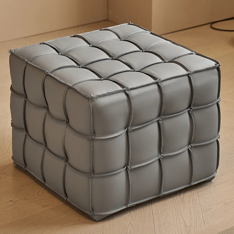 Stylish Velvet Upholstered Cube Ottoman - Versatile Genuine Leather Footstool for Dressing Room, Makeup, and Shoe Changing - Perfect for Home Decor and Comfort