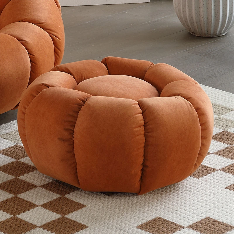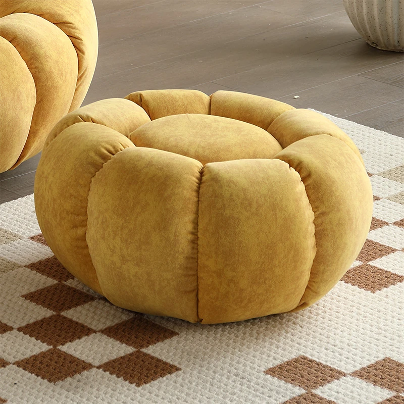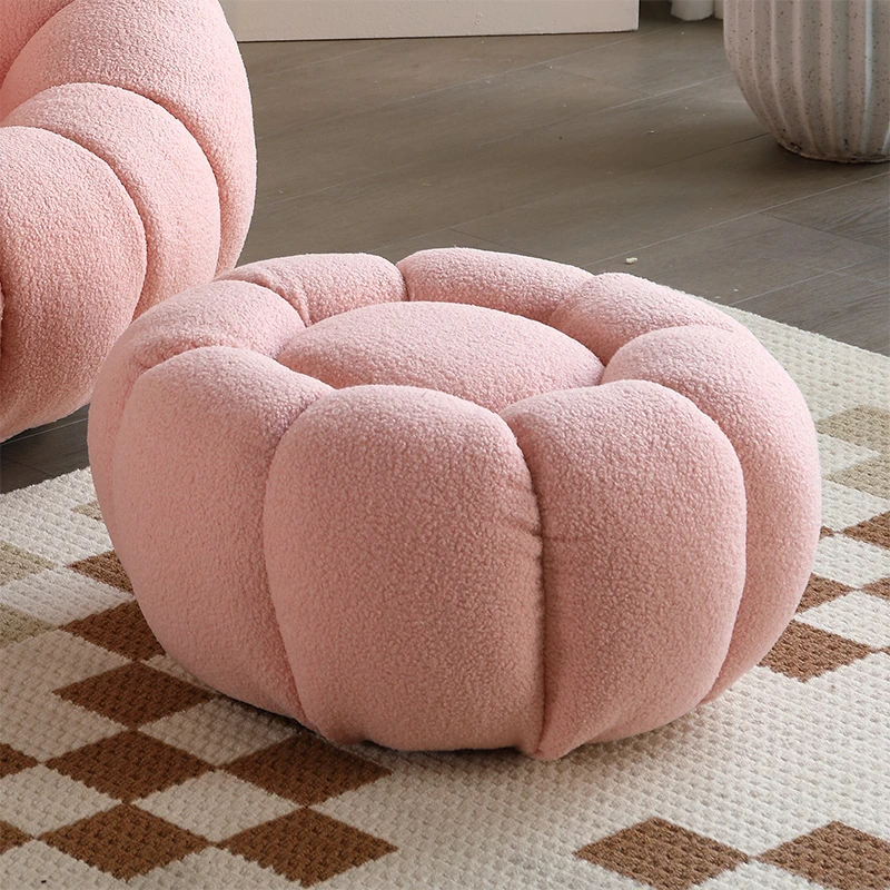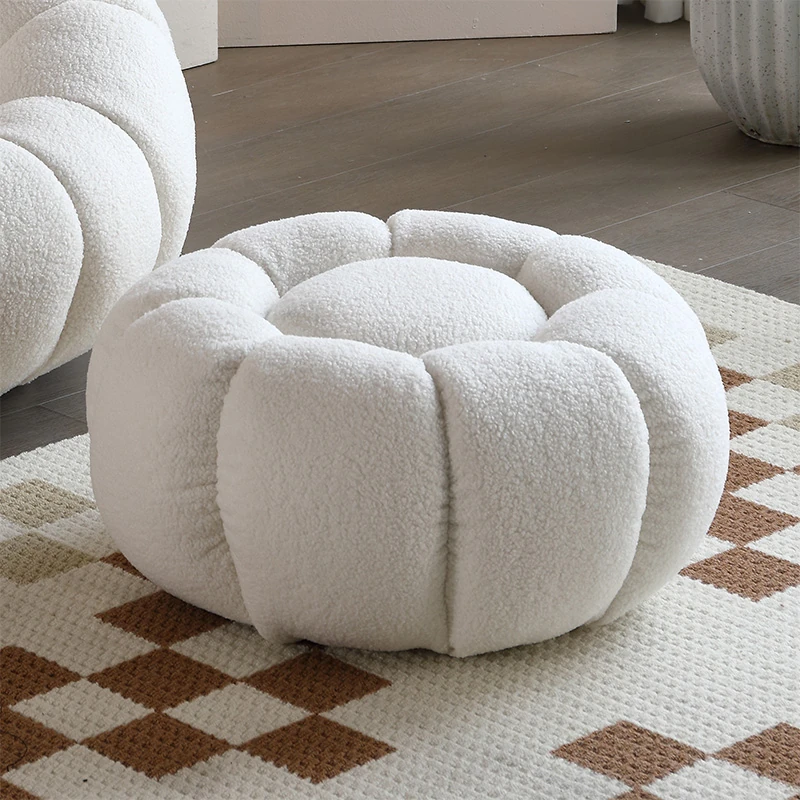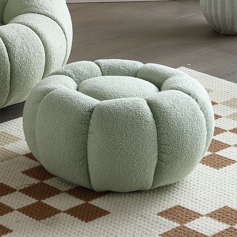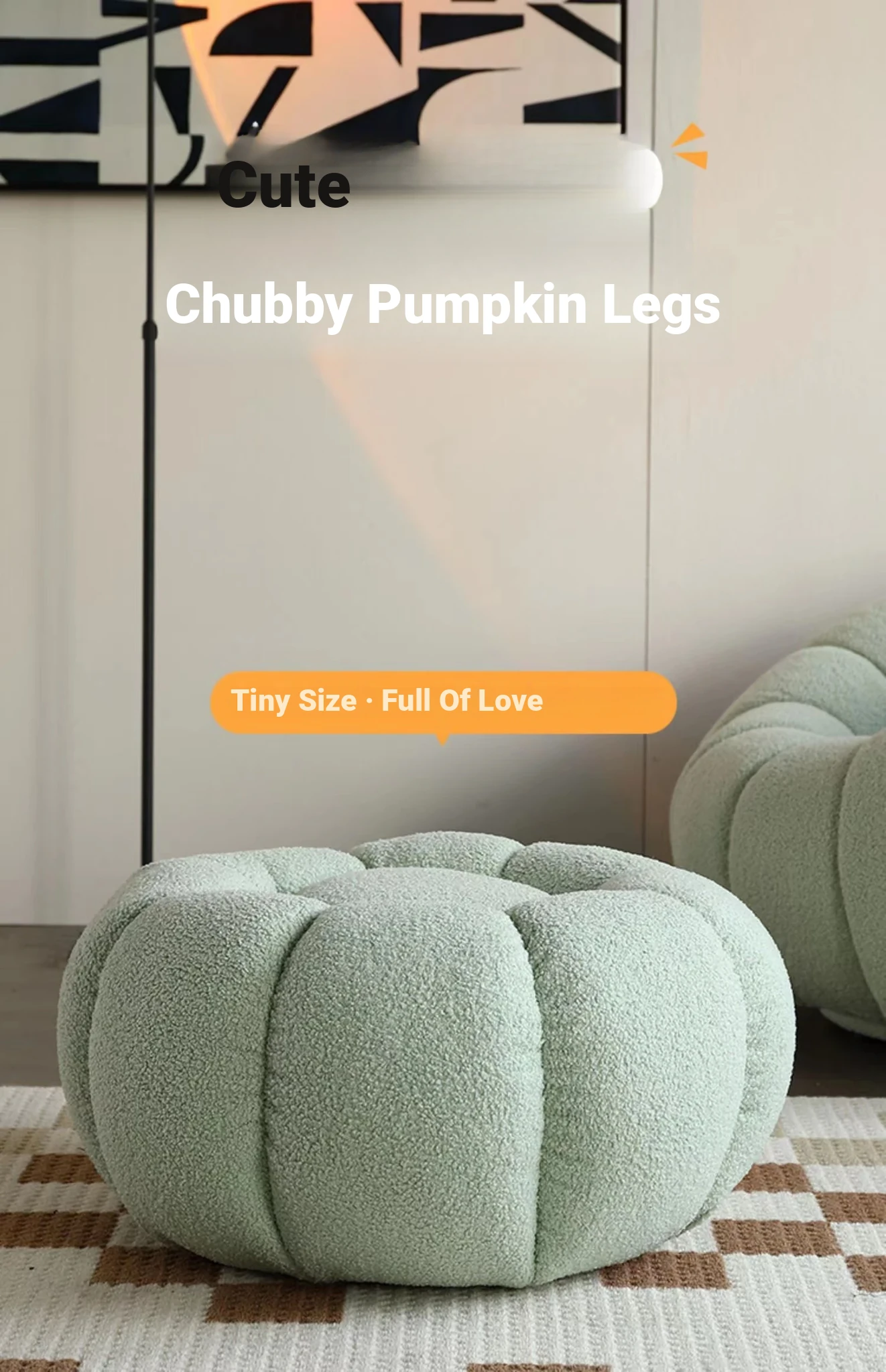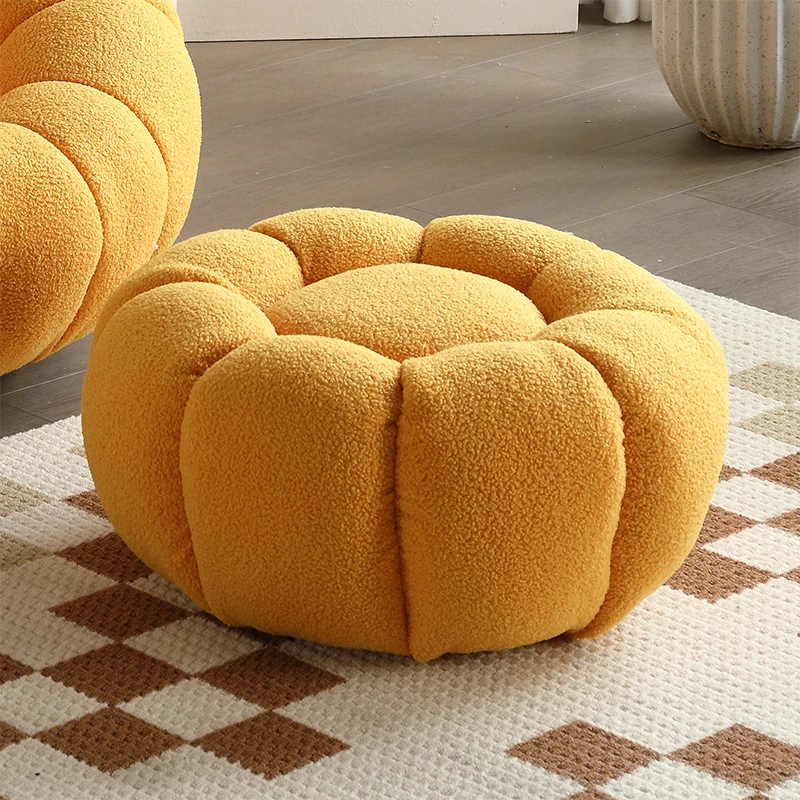Trendy Pumpkin-Shaped Faux Fur Stool - Nordic Minimalist Design for Living Room, Bedroom, Balcony, and Small Spaces - Perfect Round Stool for Kids and Adults
