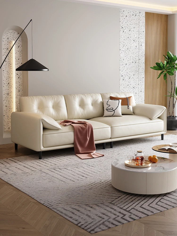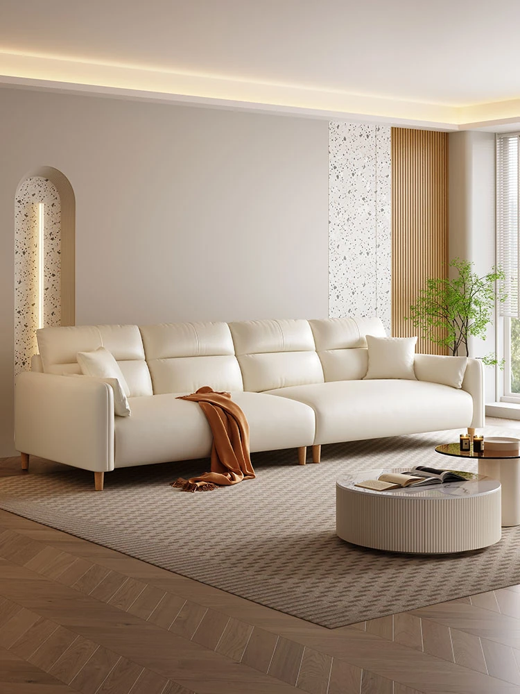 New Italian Minimalist Small Apartment Living Room Sofa - Modern Straight-Line Cat Scratch-Resistant Design for Compact Spaces