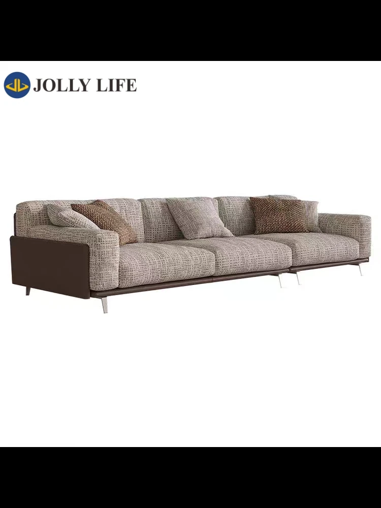 Italian Minimalist Luxury Living Room Sofa Set - Spacious Down Feather Sofa with Cotton-Linen and Genuine Leather Fabric, Perfect for Modern Homes