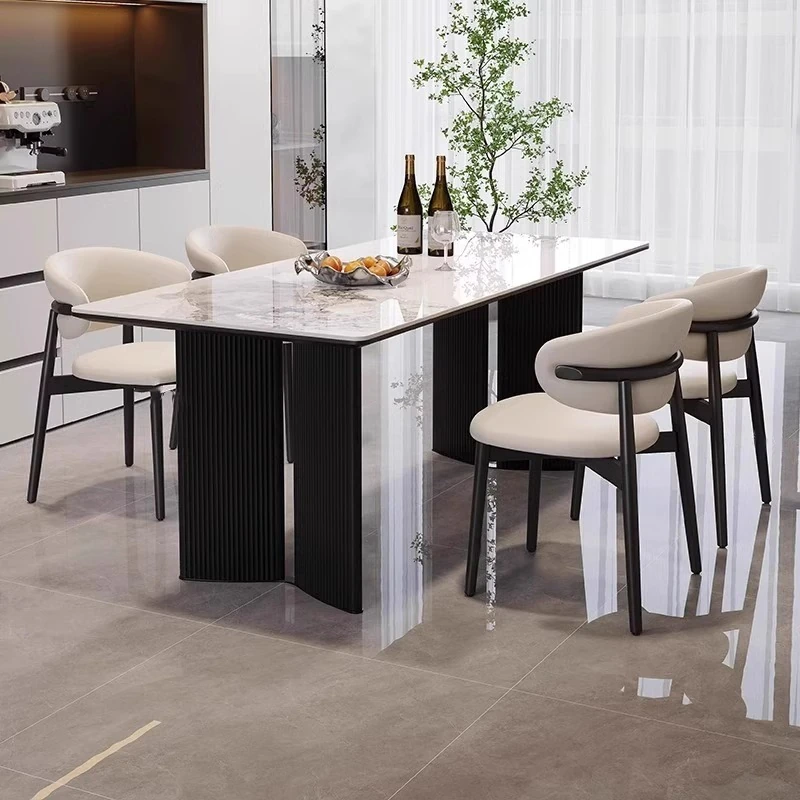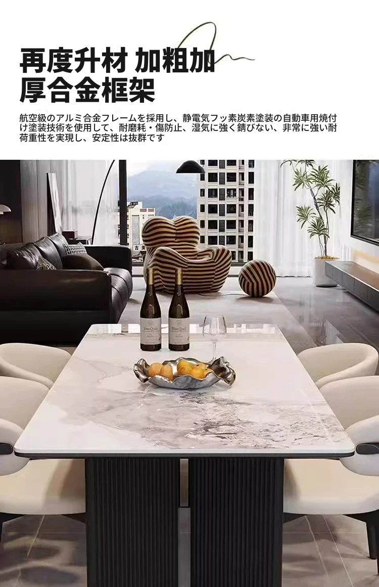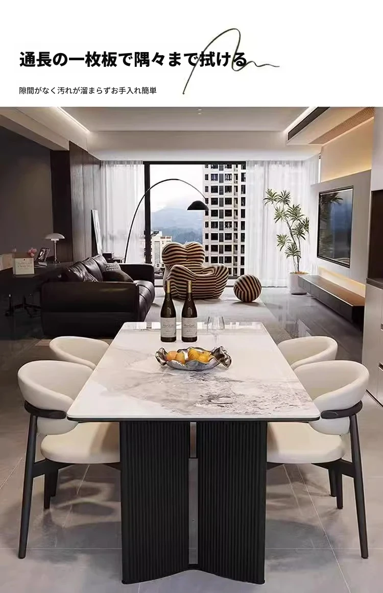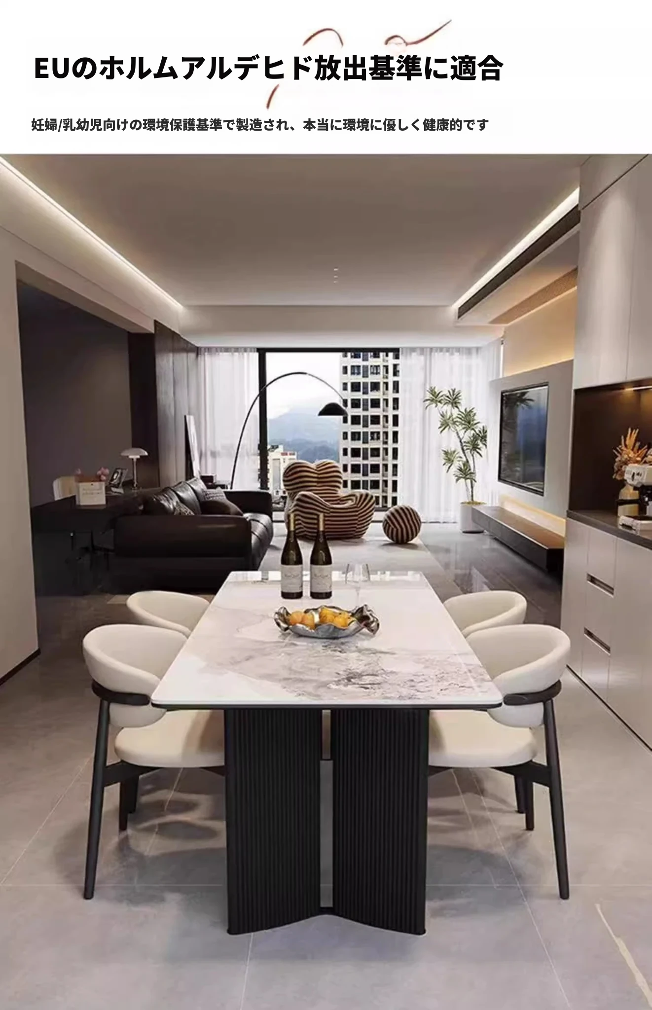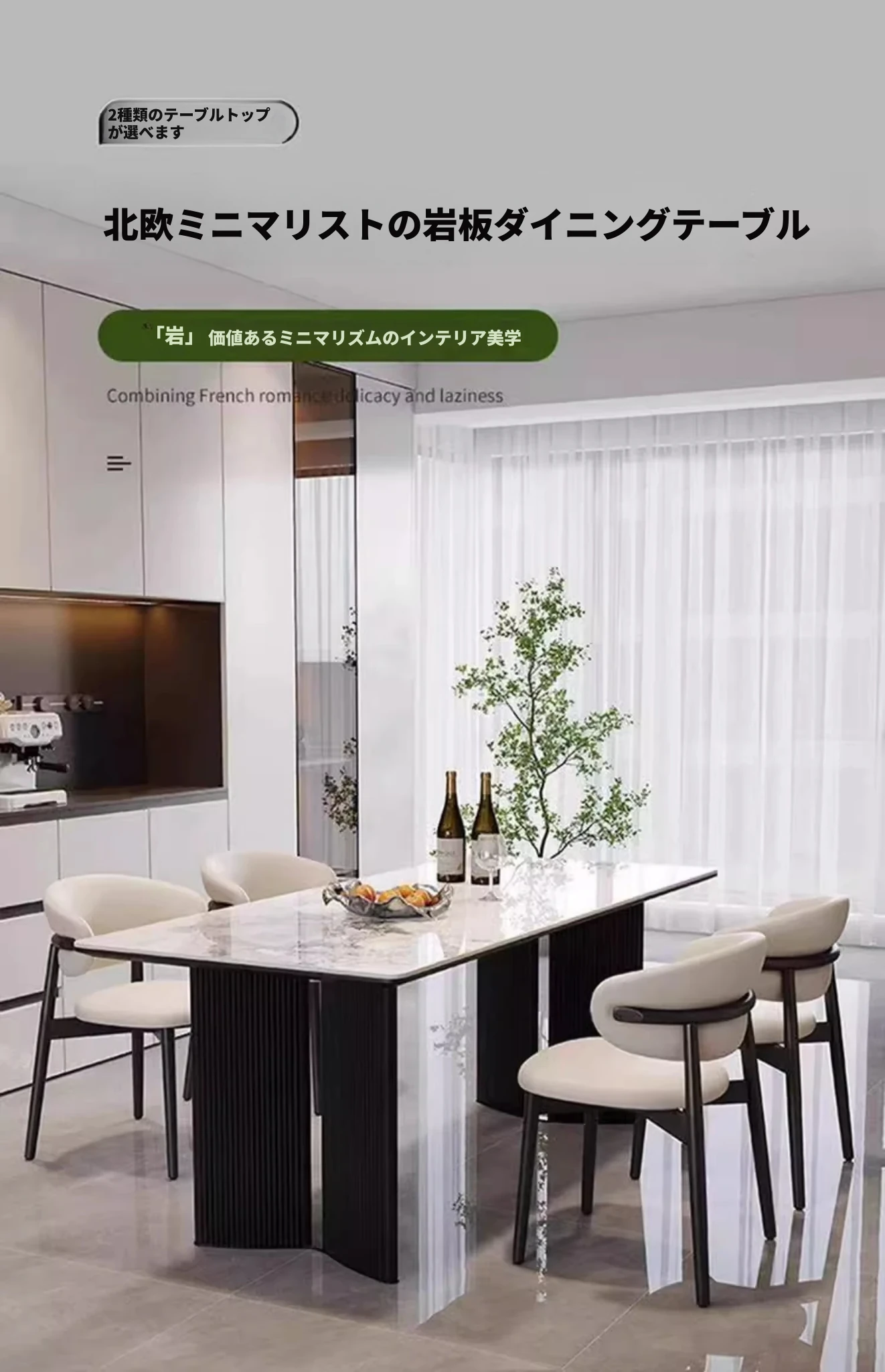 2025年新作!小戸建てにもぴったりな軽奢感溢れるモダンシンプルな岩板ダイニングテーブル&チェアセット。おしゃれな空間を演出し、食事の時間を特別なひとときに!
