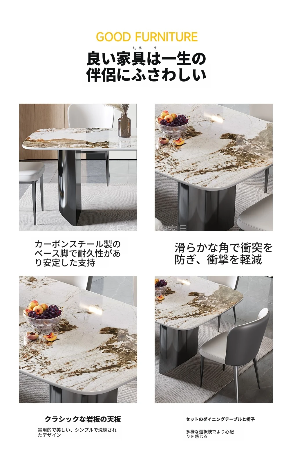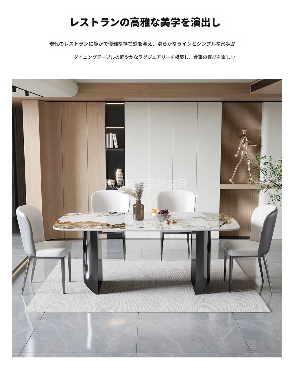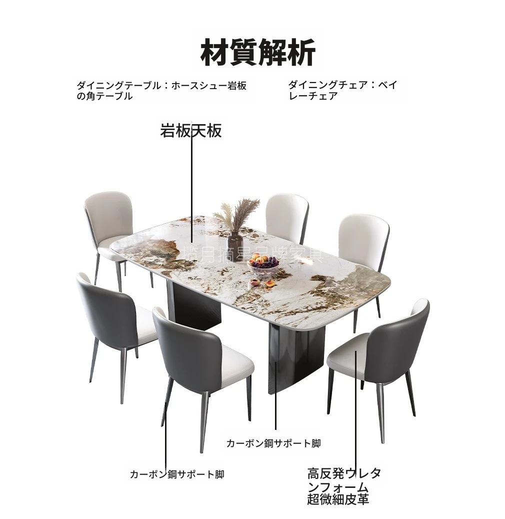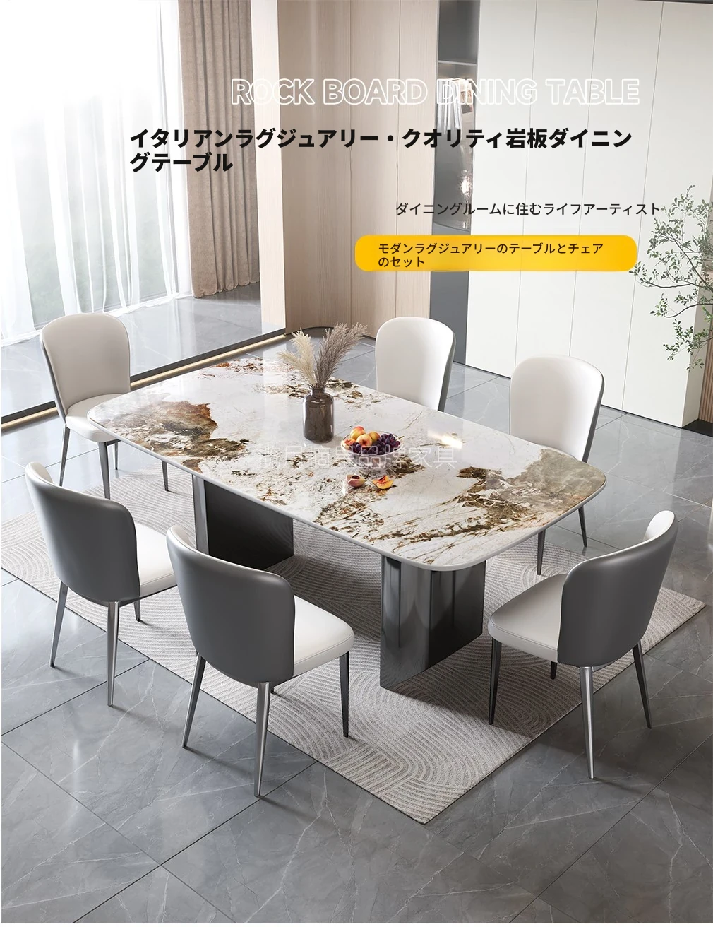 2025年新作!イタリアンミニマルデザインのスレート製ホースシュー型ダイニングテーブル。小スペースにぴったりのラグジュアリーな長方形テーブル&チェアセット!おしゃれで機能的な食卓を実現します。