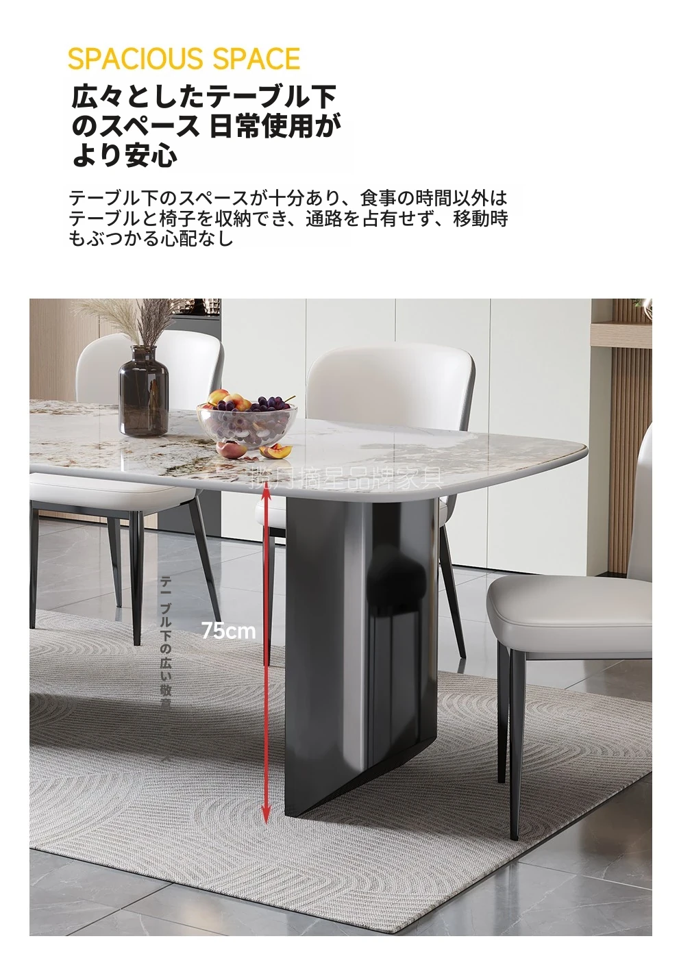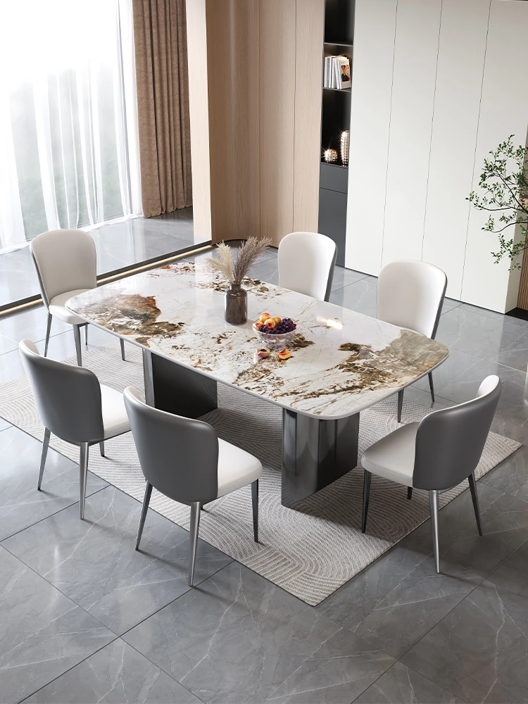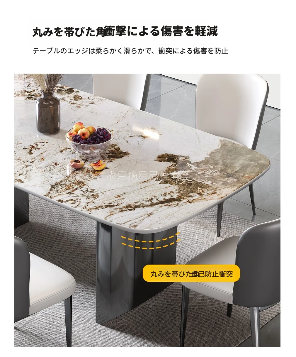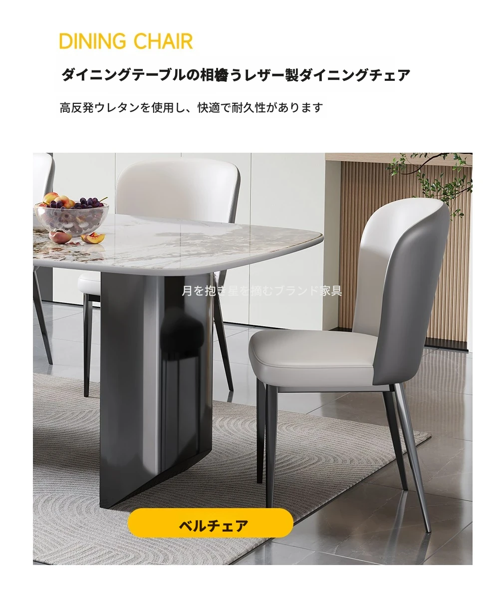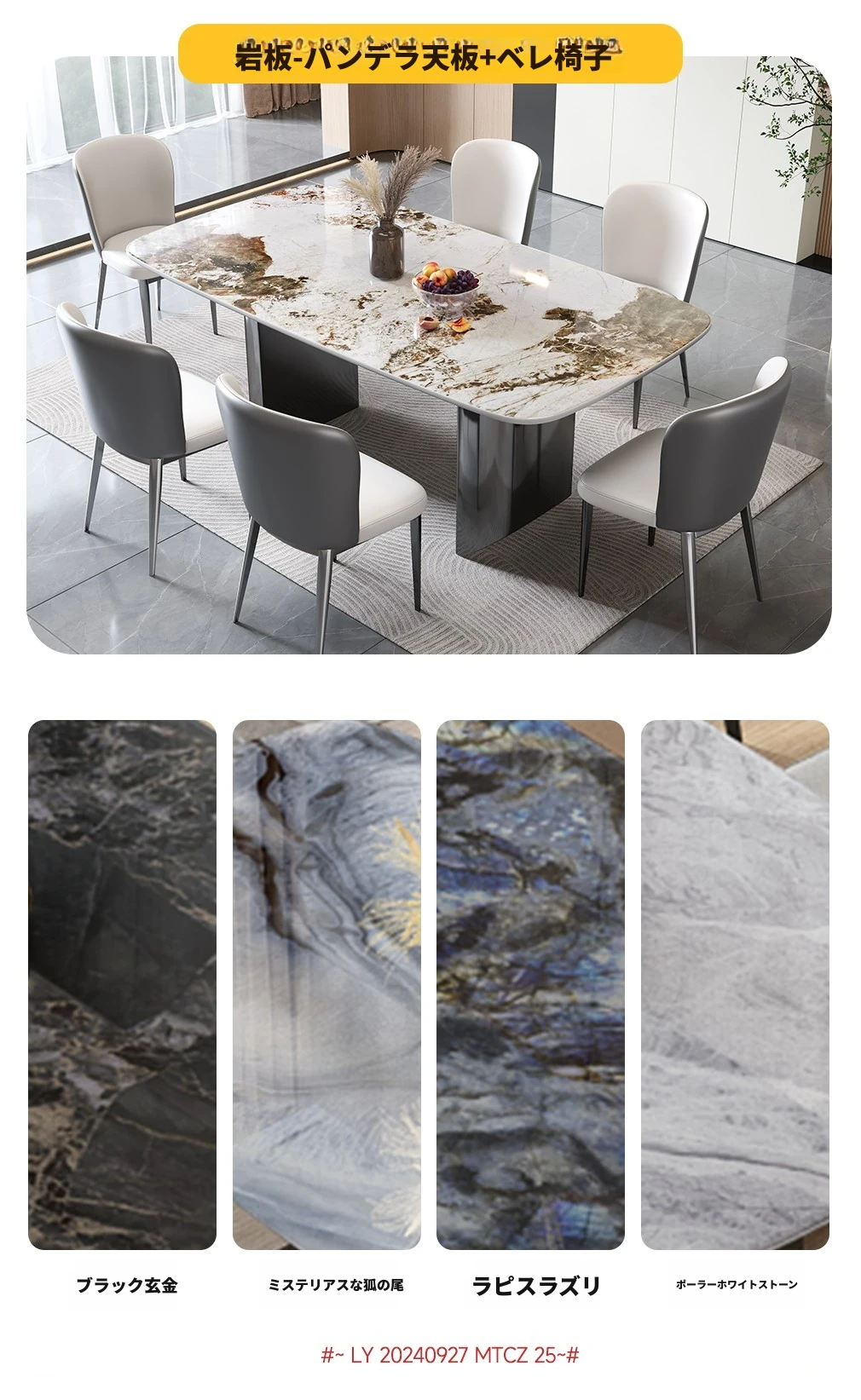 2025年新作!イタリアンミニマルデザインのスレート製ホースシュー型ダイニングテーブル。小スペースにぴったりのラグジュアリーな長方形テーブル&チェアセット!おしゃれで機能的な食卓を実現します。
