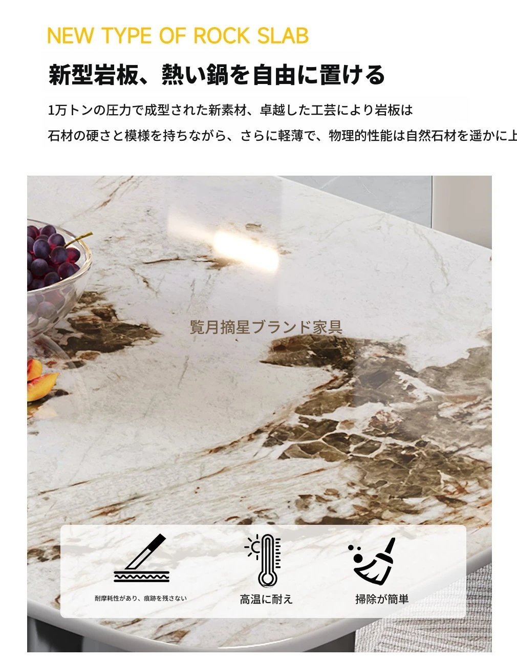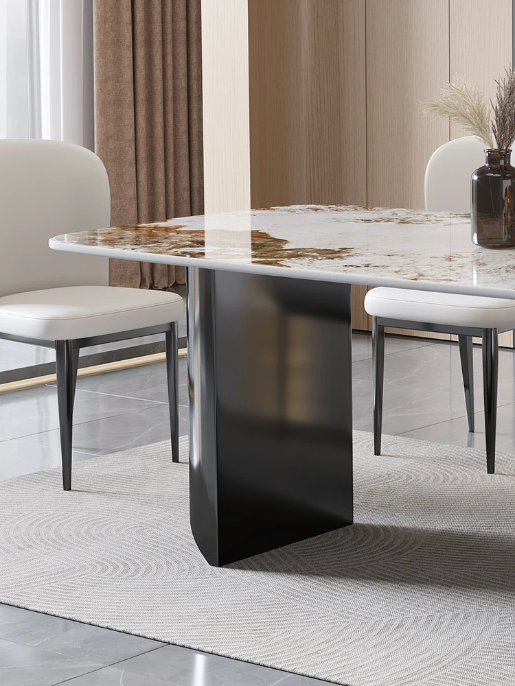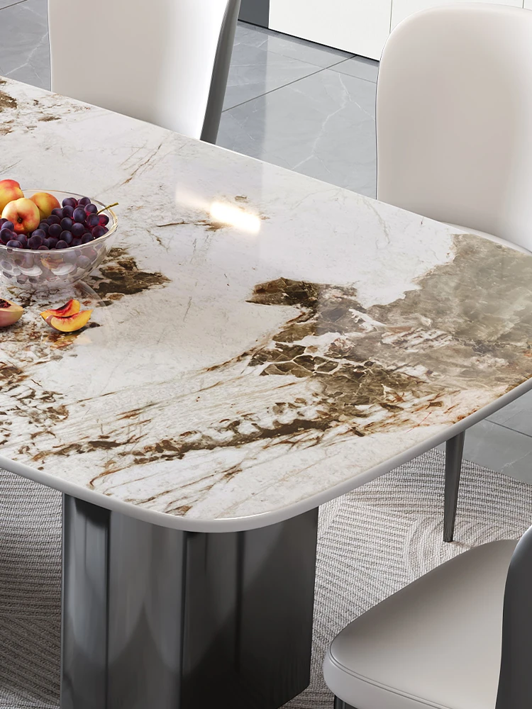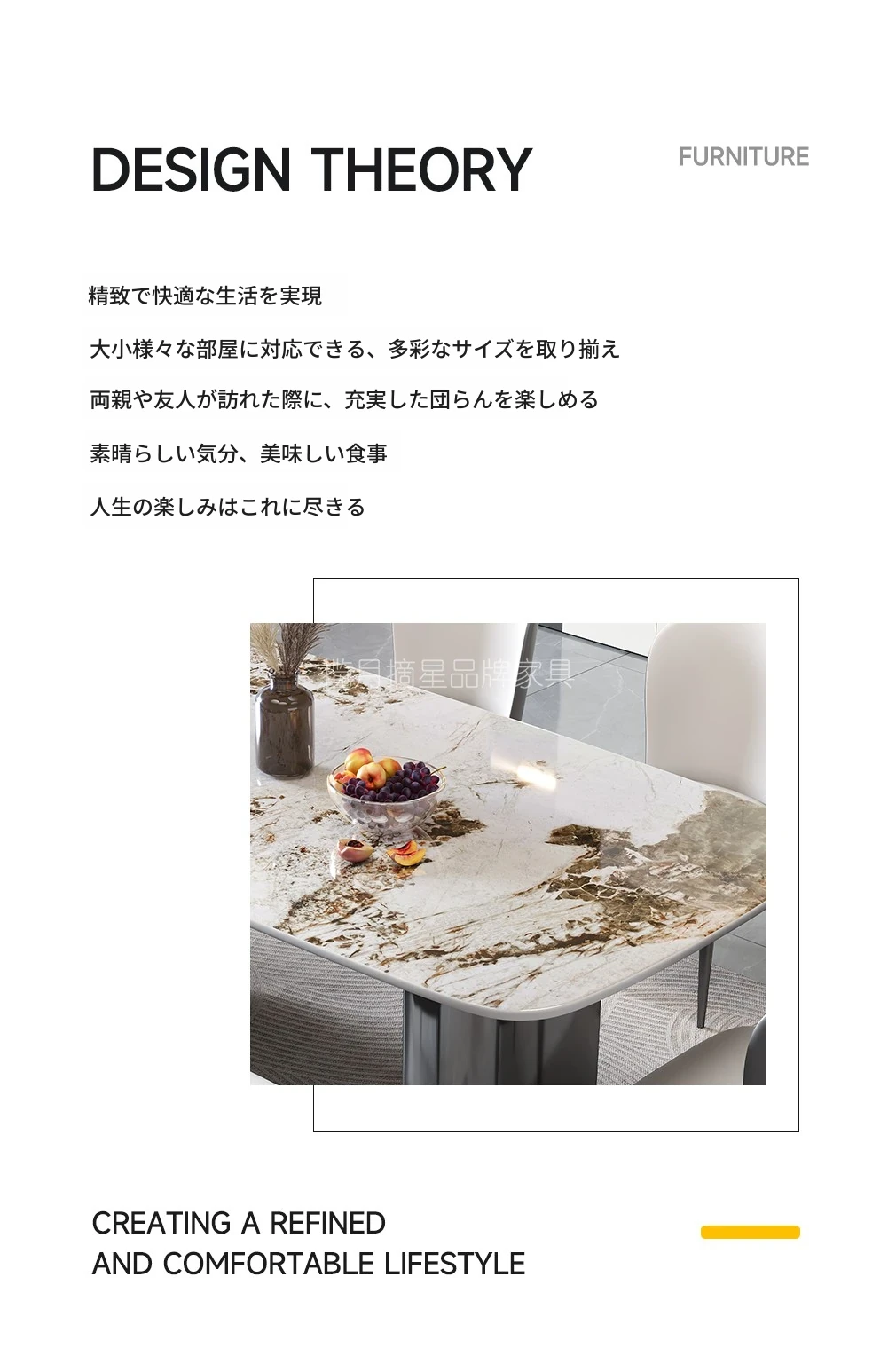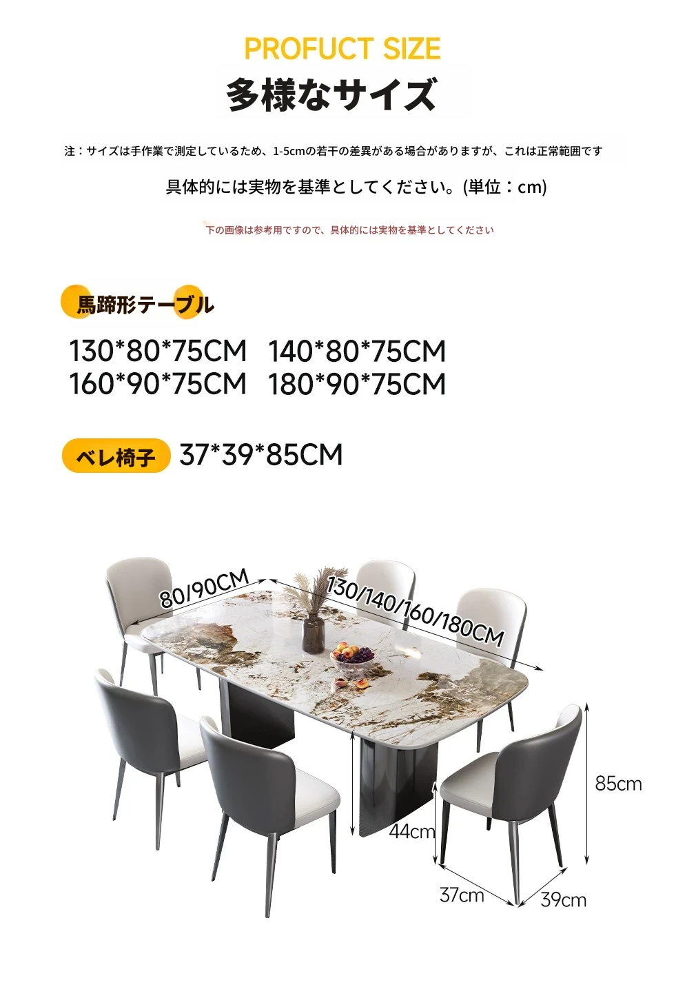 2025年新作!イタリアンミニマルデザインのスレート製ホースシュー型ダイニングテーブル。小スペースにぴったりのラグジュアリーな長方形テーブル&チェアセット!おしゃれで機能的な食卓を実現します。