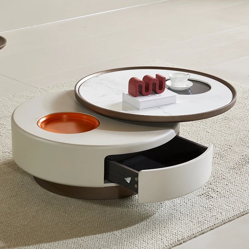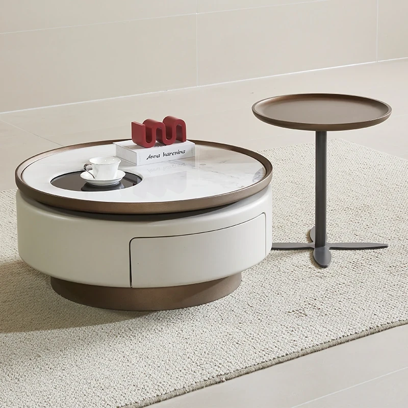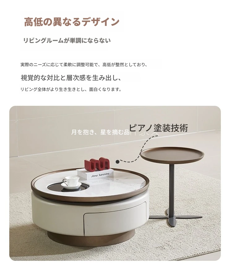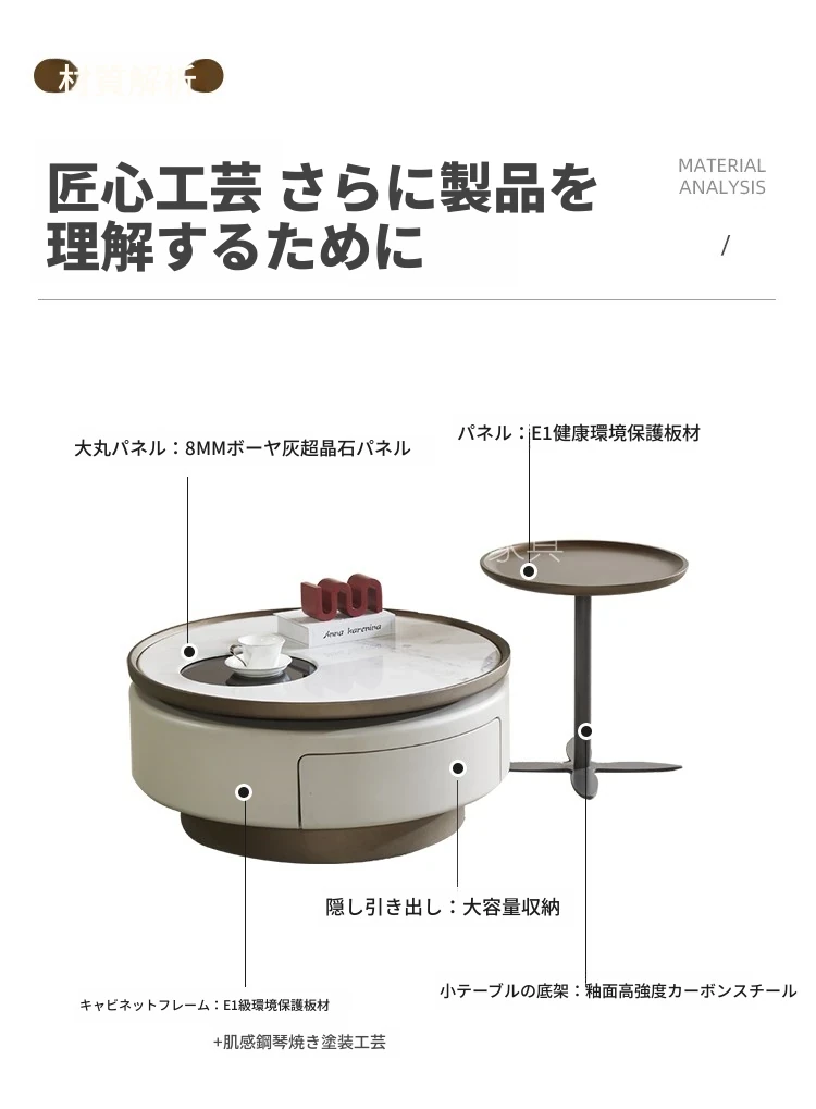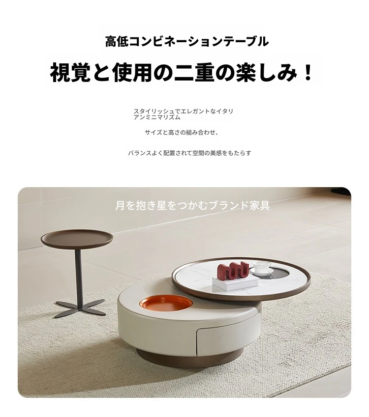 2025年新作!イタリアンミニマリズムデザインの超クリスタル石製ヒーリングコーヒーテーブル - 小型住宅に最適な広々収納スペースを備えたリビングルームの必需品!
