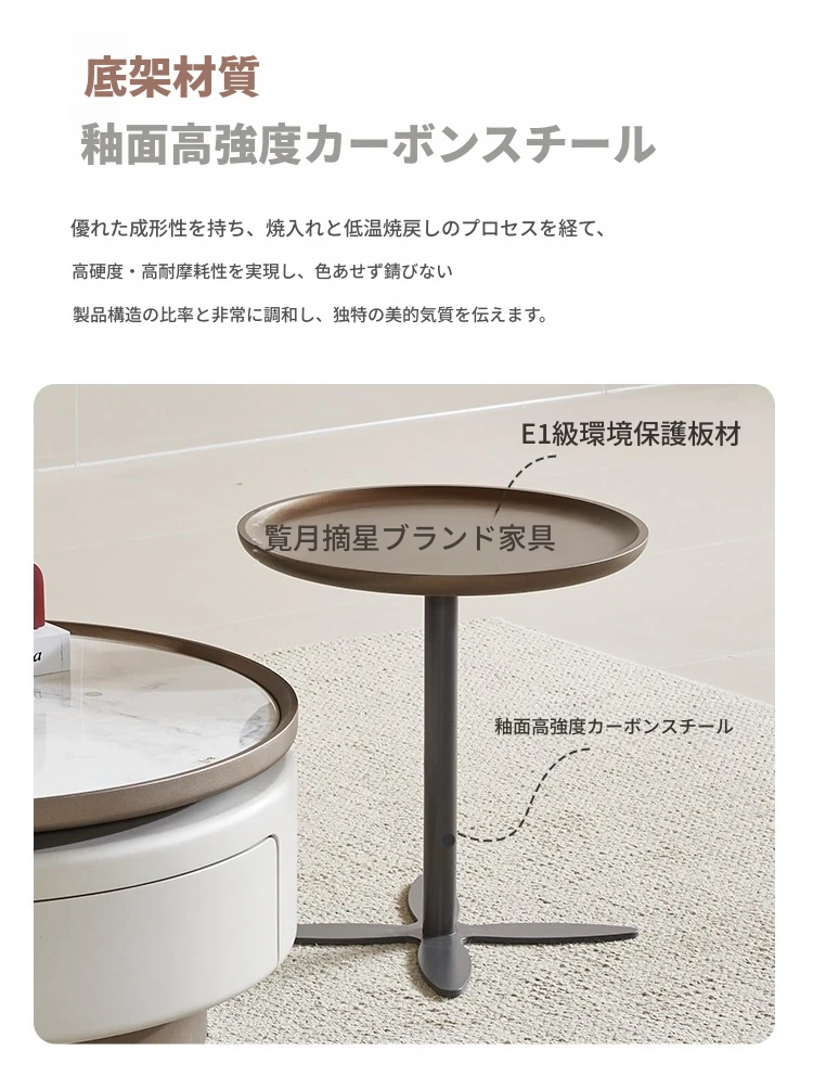 0.8メートル回転テーブル+0.46メートルサイドテーブル【クリームホワイト+コーヒーブラウン】