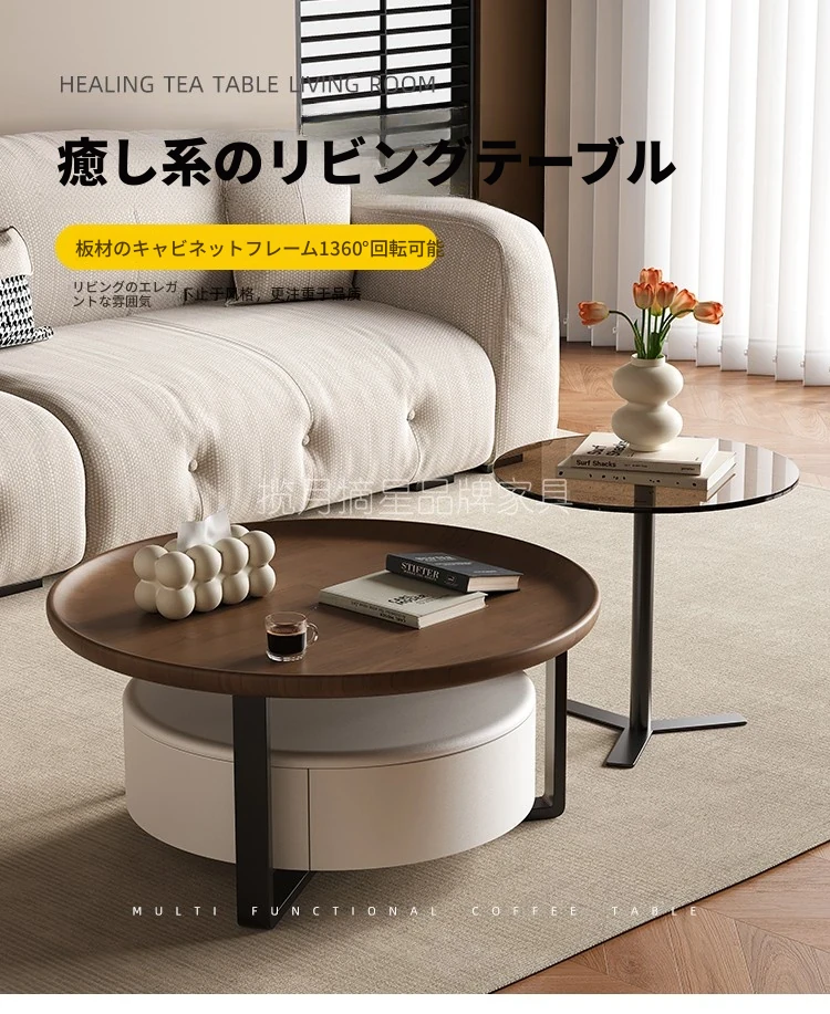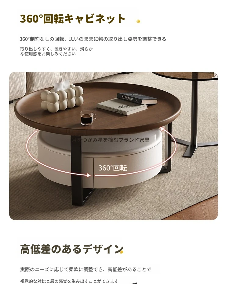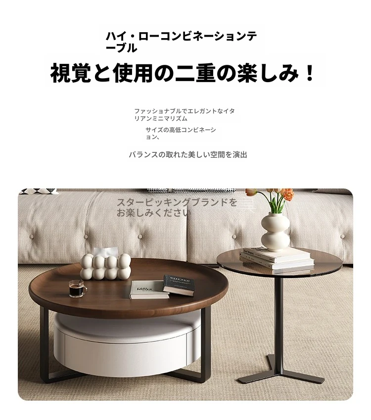 2025年新作!モダンでシンプルな高級感あふれるリビング用コーヒーテーブル。小型住宅にもぴったりな軽やかさとクリエイティブな円形デザイン。おしゃれなティータイムを演出します!