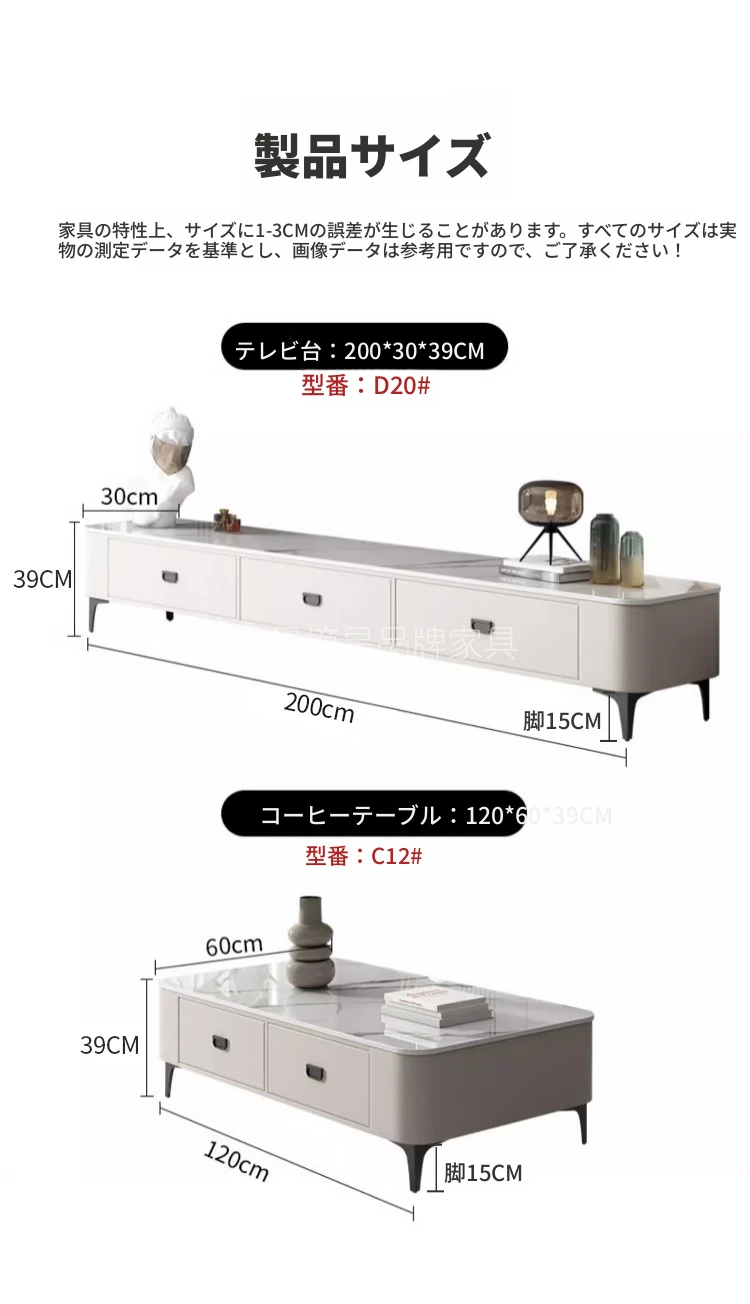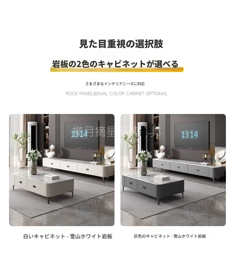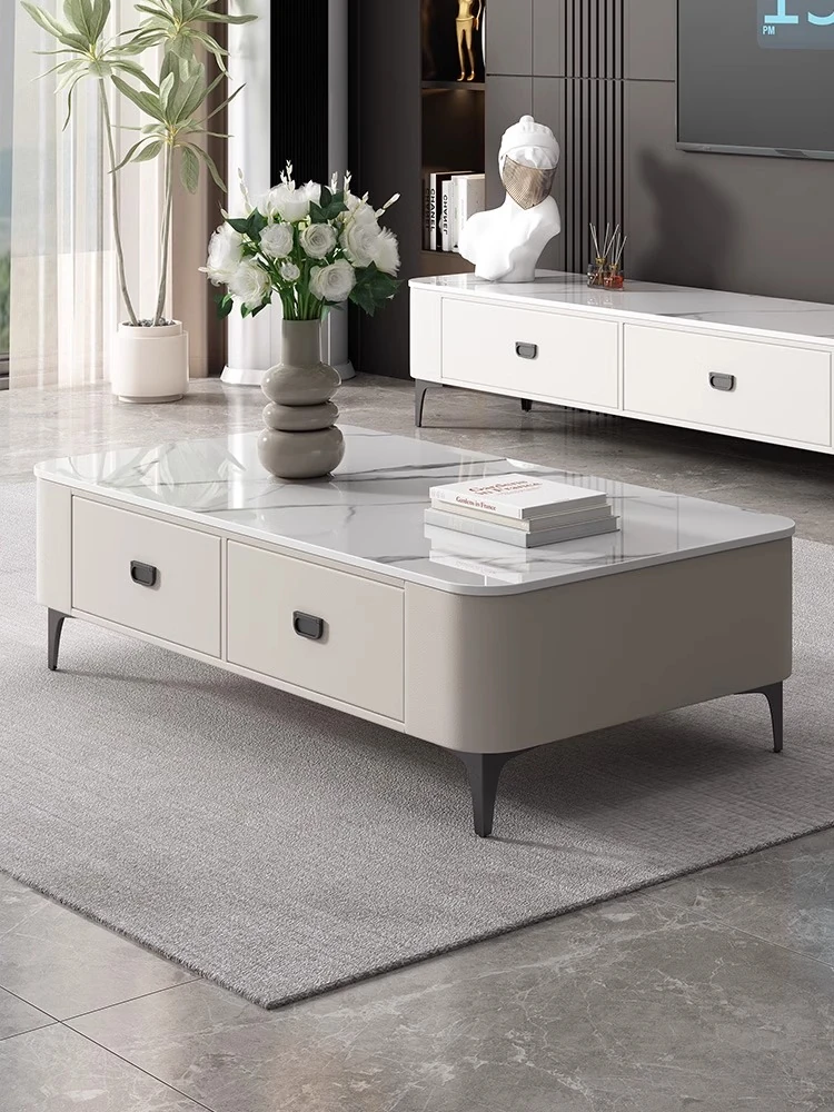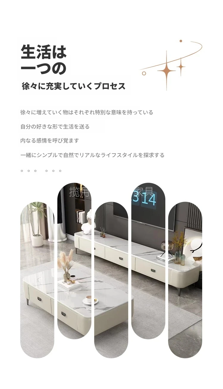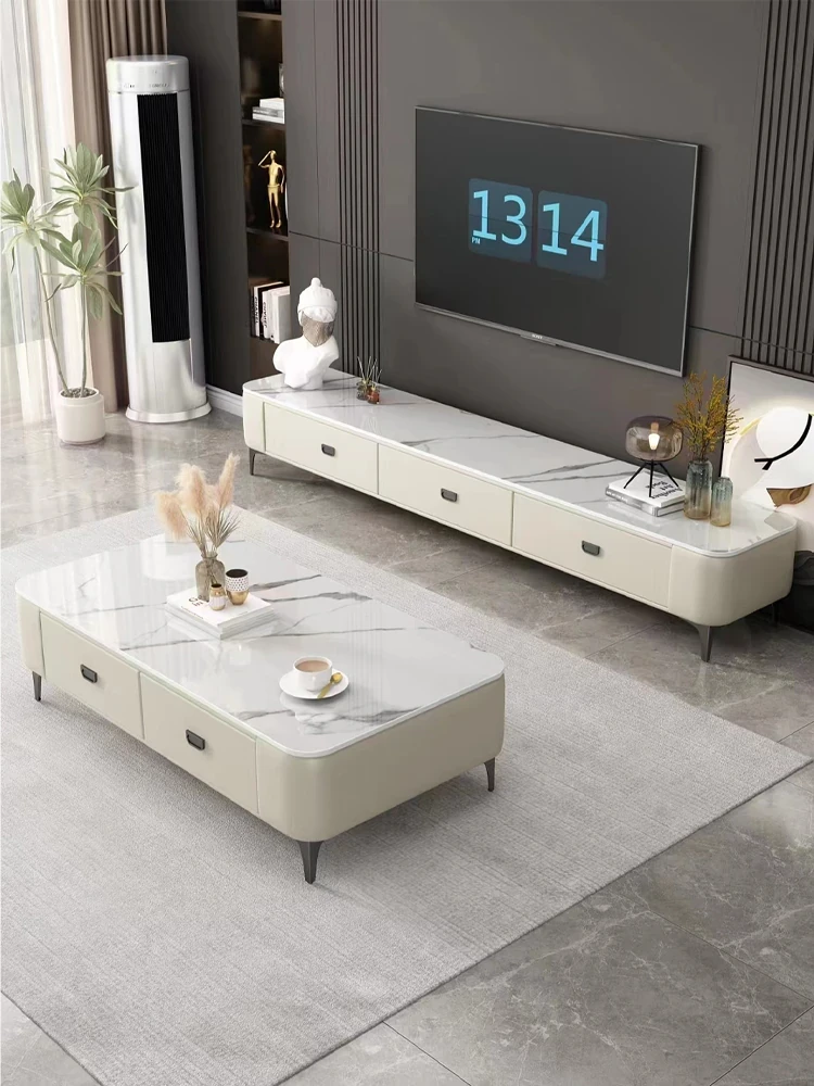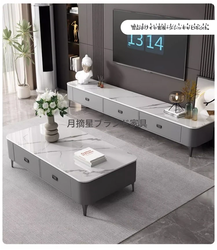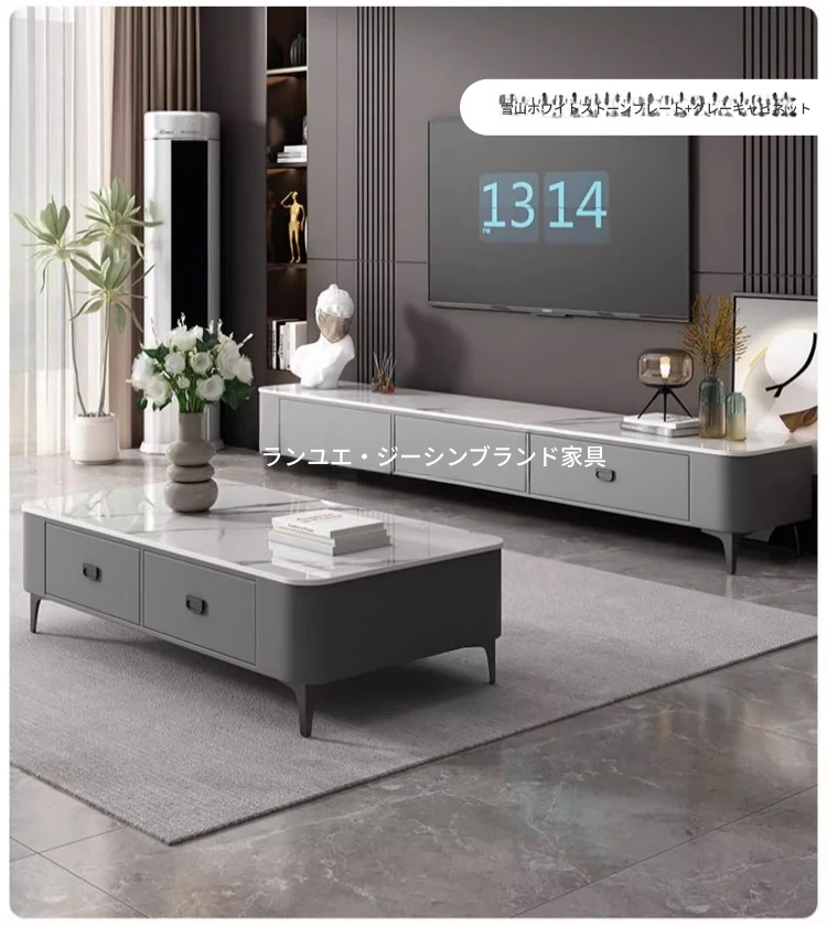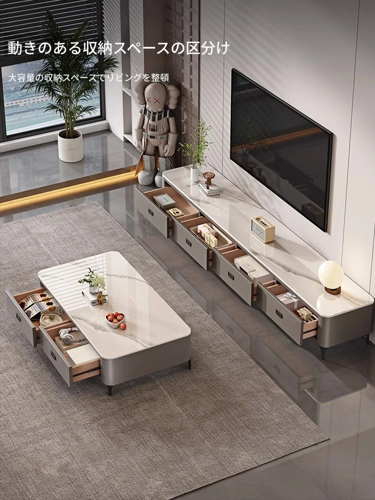 2025年新款!軽奢モダンデザインの岩板リビングテーブル - 小型住宅に最適なシンプルでスタイリッシュな茶几とテレビキャビネットの組み合わせ。おしゃれな空間を演出し、居心地の良いリビングを実現!