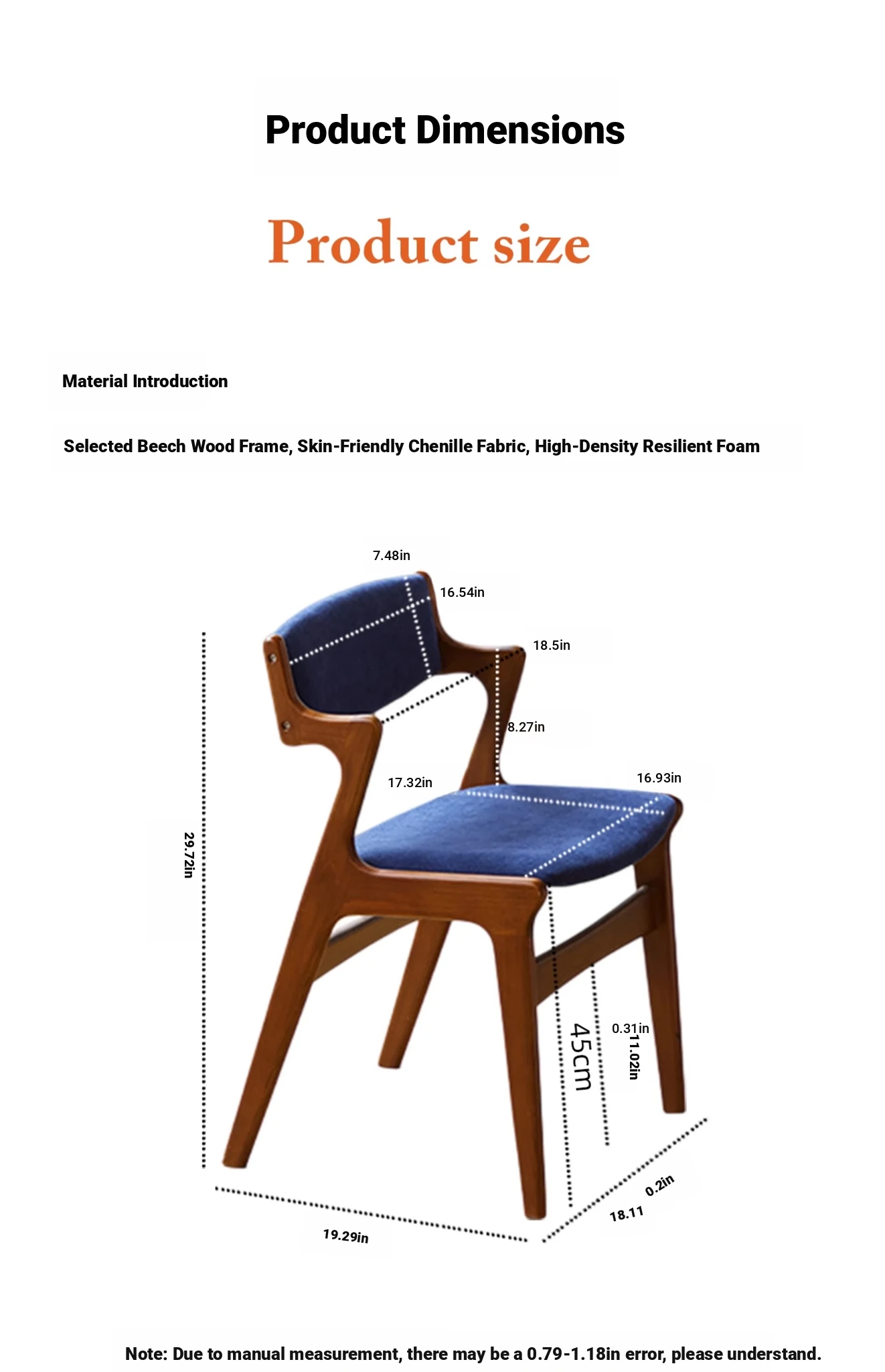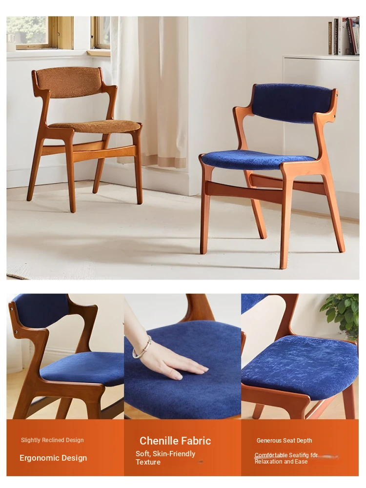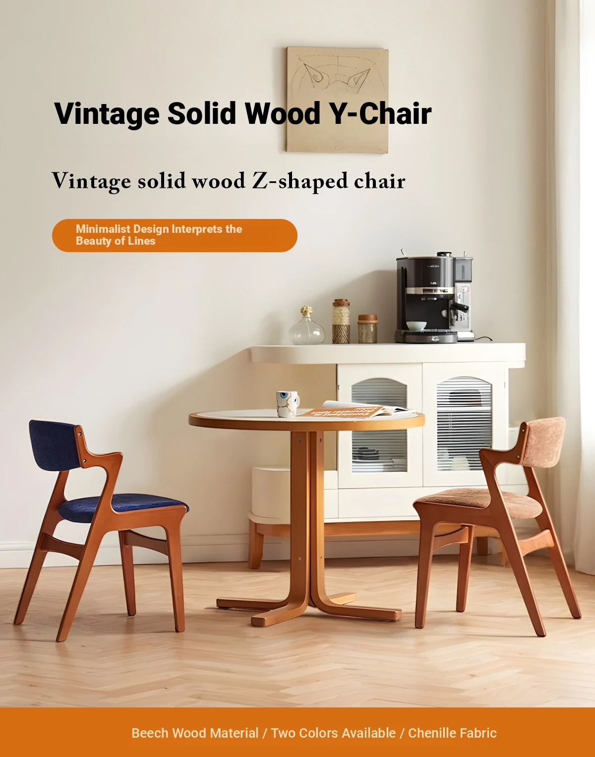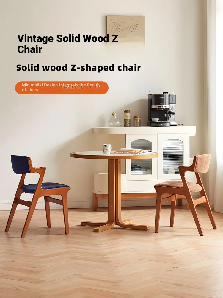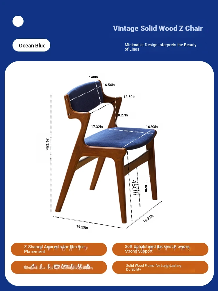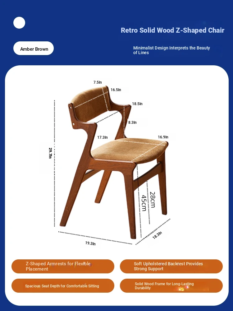 Aisenlongte Vintage Solid Wood Dining Chair - Scandinavian Retro Designer Armchair for Home, Perfect for Desks and Café Dining Tables