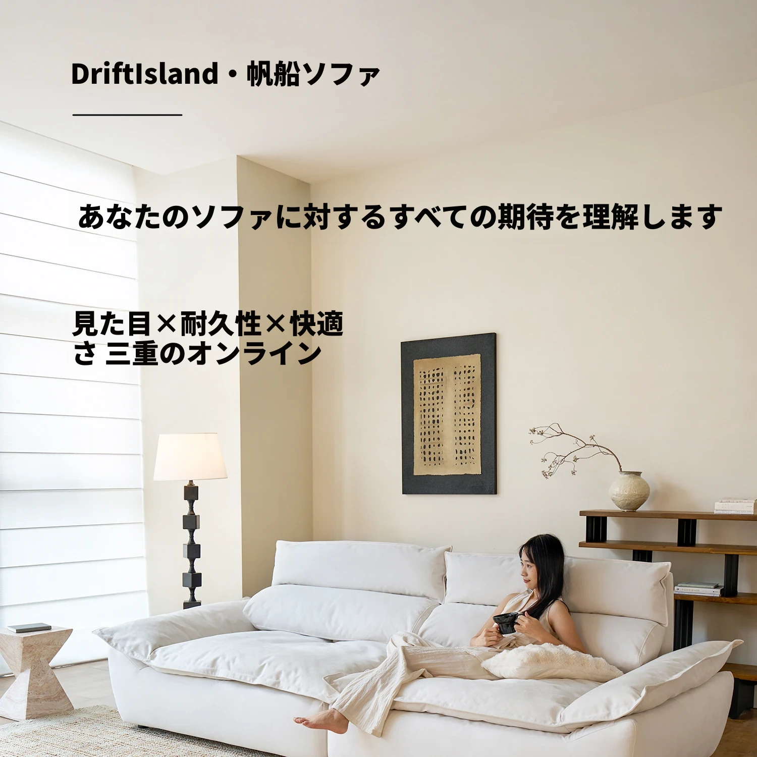 カサーチ帆船スタイルのフランス風クリーム色ソファ - 小型スペースに最適!調節可能な背もたれ、猫の爪から守るマットな布地、洗えるカバー付きで清潔感も抜群。快適なリビング空間を実現します!