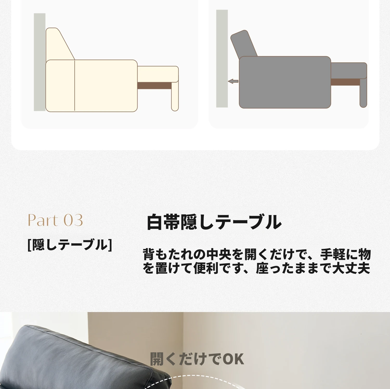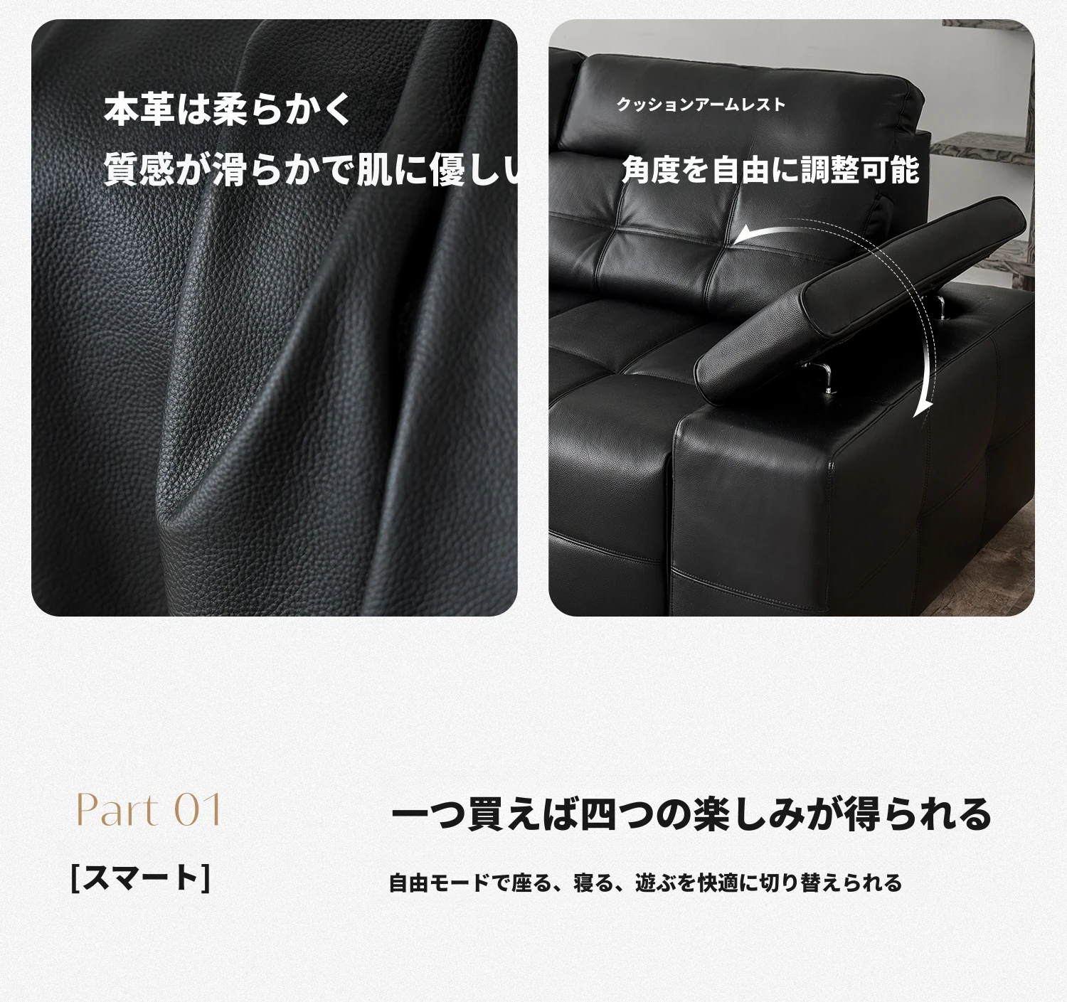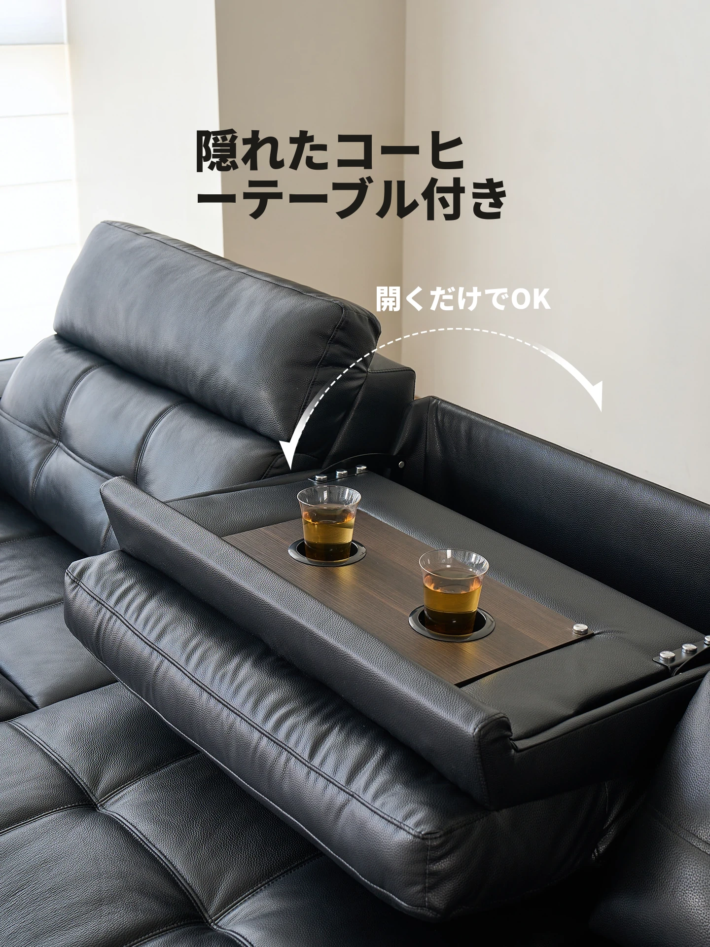 【S級肉感厚摔纹頭層牛皮】4.26m大三人用+三電動伸縮+隠れたテーブル