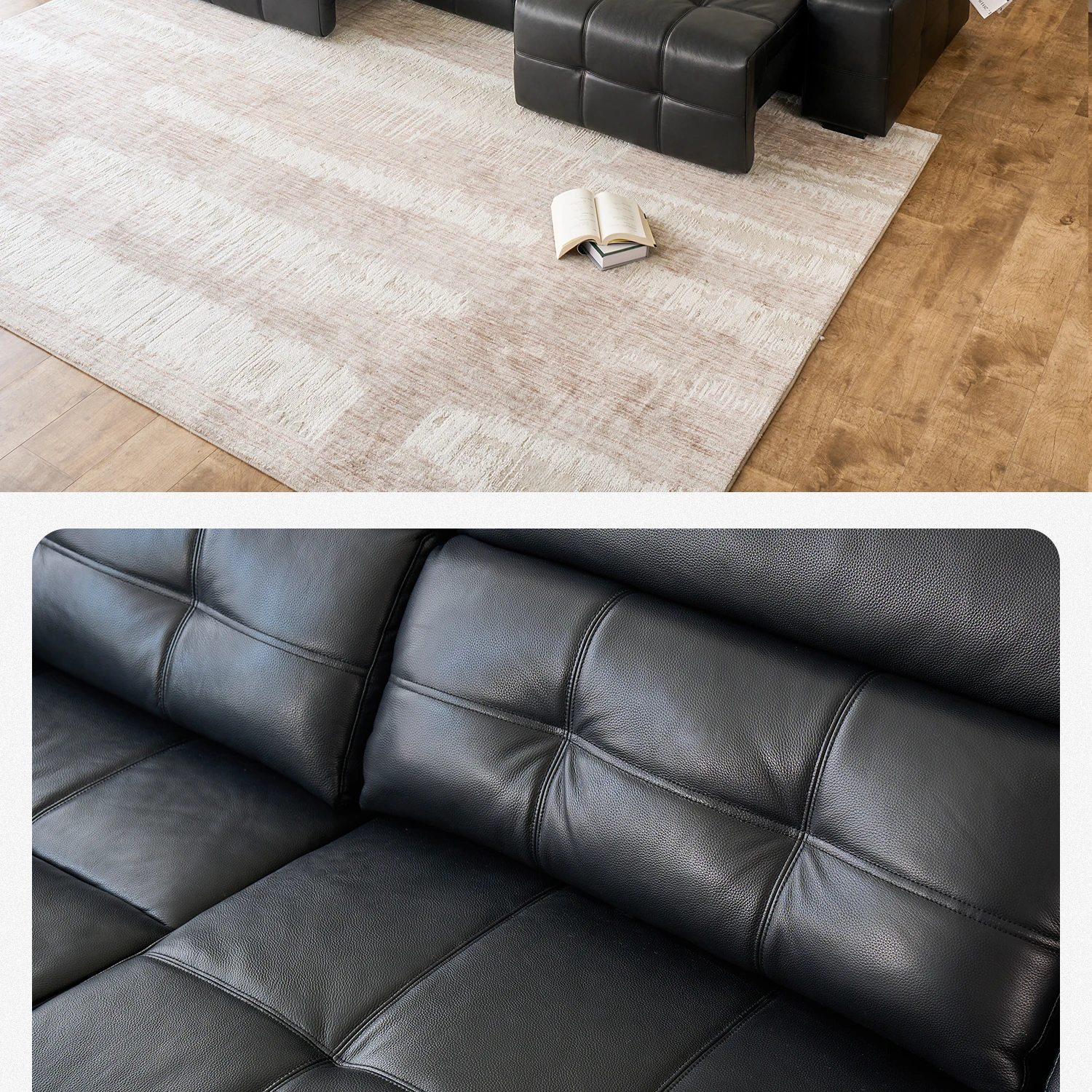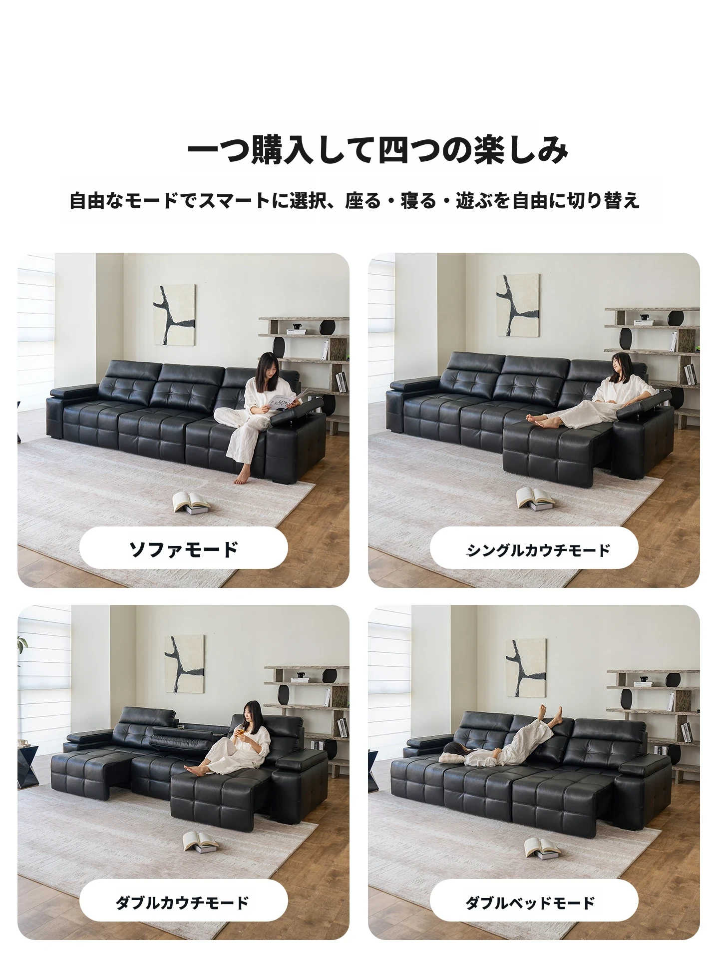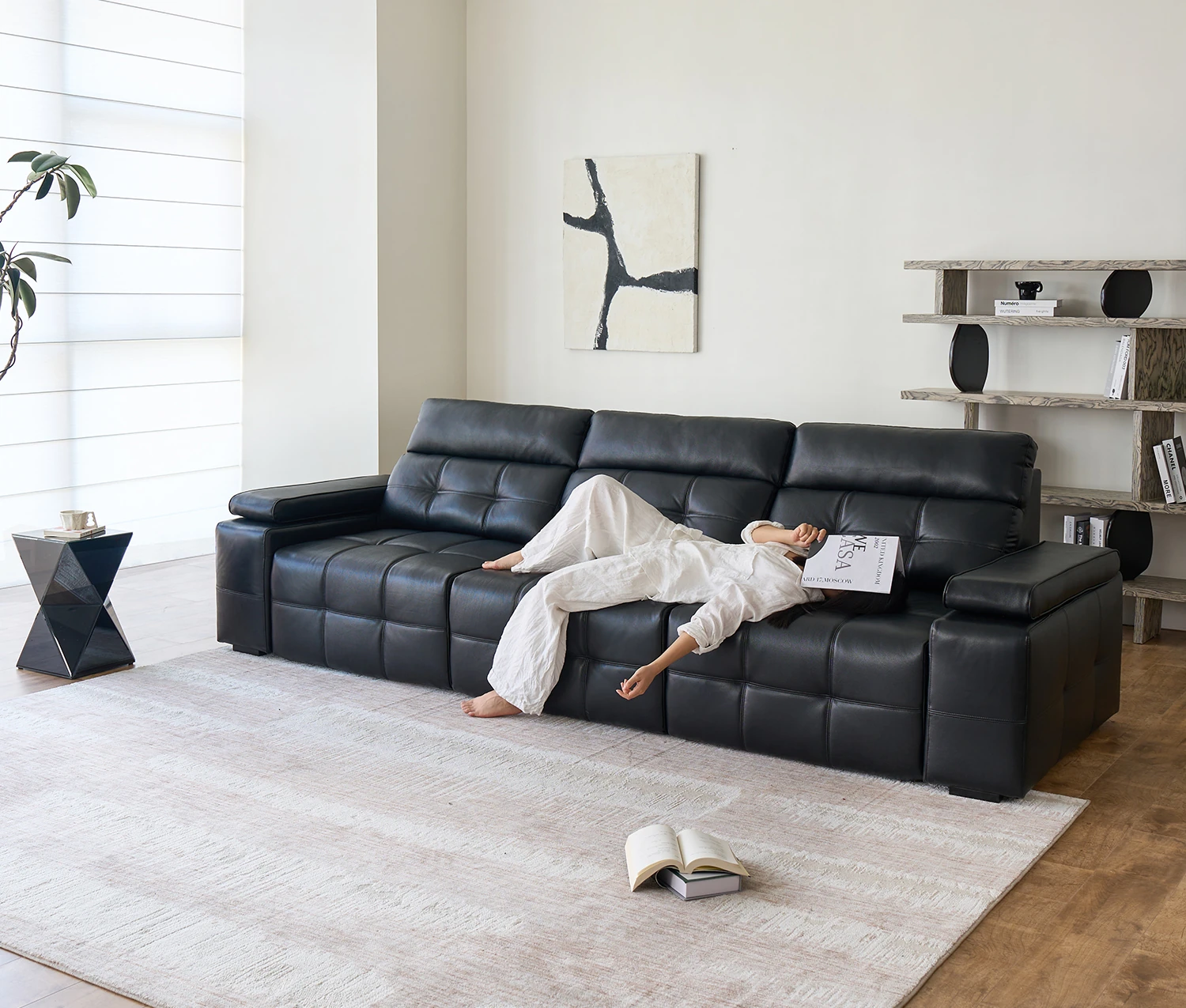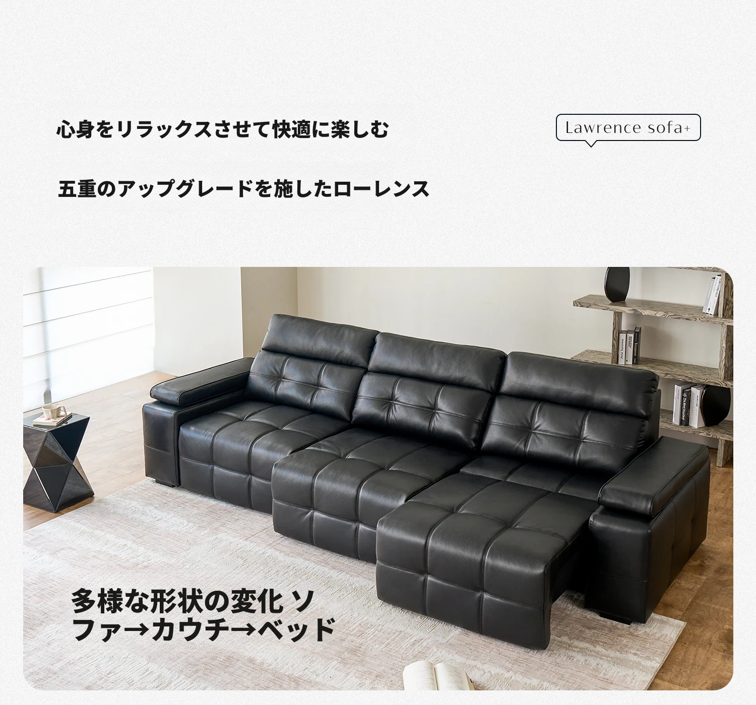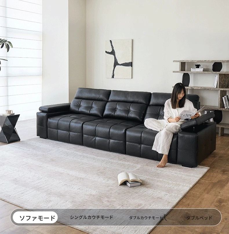 カサチ 労倫スソファ イタリアンスタイル 大型リビング用 本革トップグレイン ブラック 電動伸縮ソファ - 高級感あふれるデザインで、快適なリビング空間を実現!