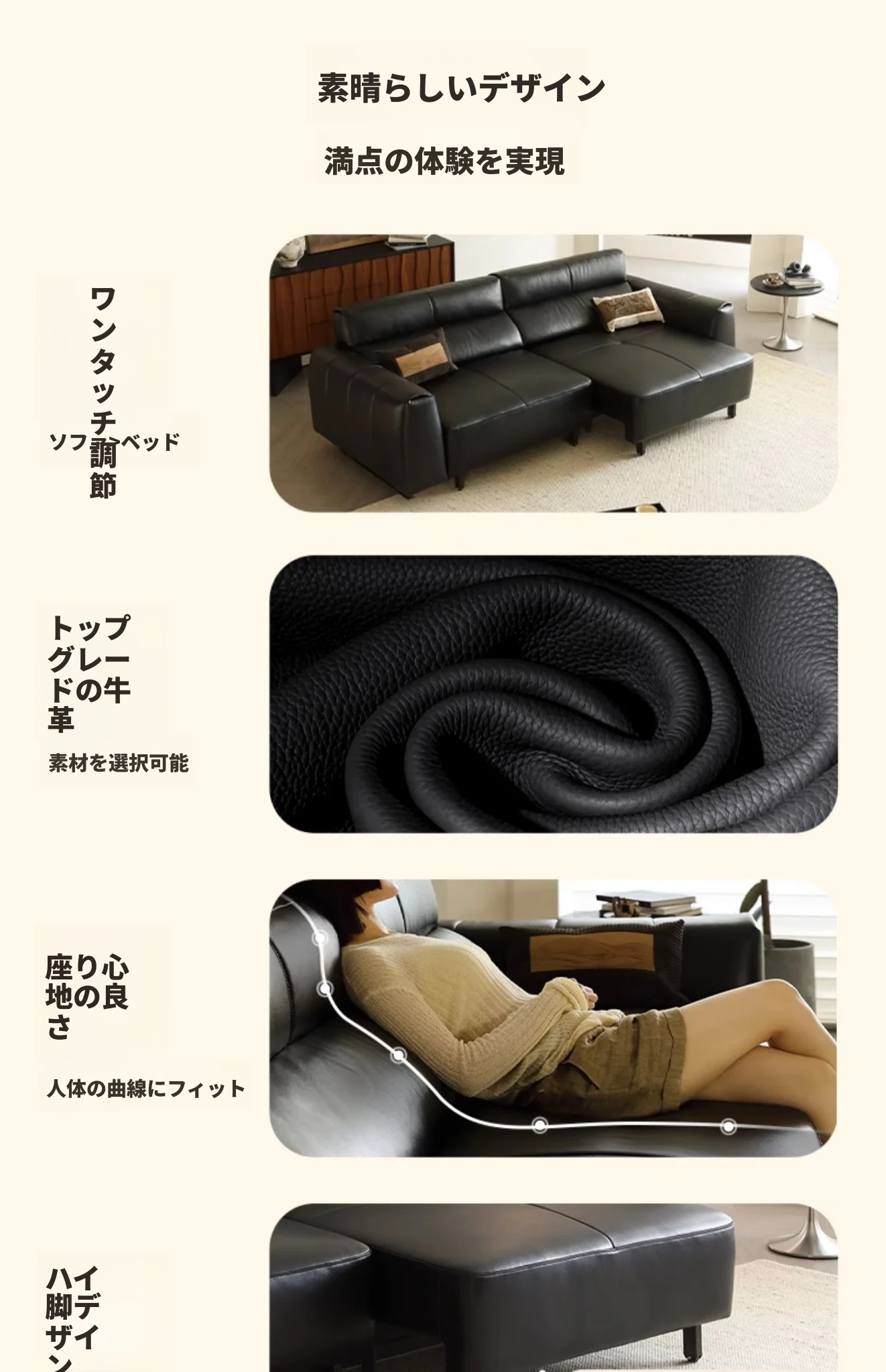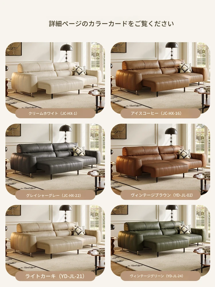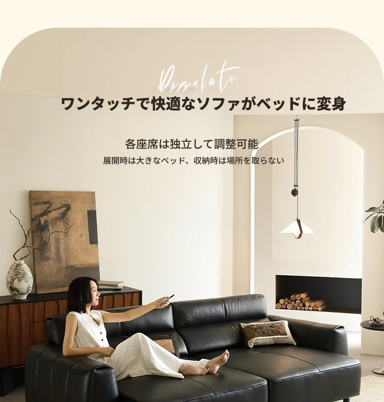 カサーチ真皮電動ソファベッド - スリムで多機能、レザー使用の高級感漂うイタリアンミニマリズム!リビングにぴったり、伸縮自在で快適なひとときを提供します。