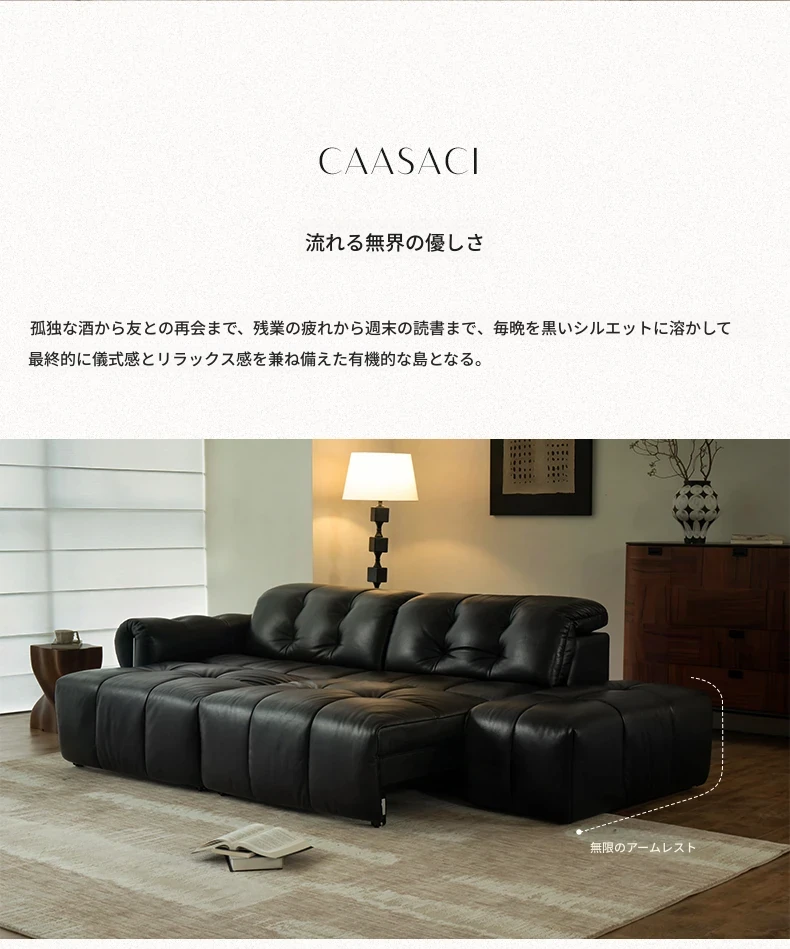 カサーチ星雲電動ソファ 本革製 中古風 ブラック ピクセル スライド式 調整可能なソファベッドで、快適なリラックス空間を実現!おしゃれなデザインで、あなたのリビングを格上げします。
