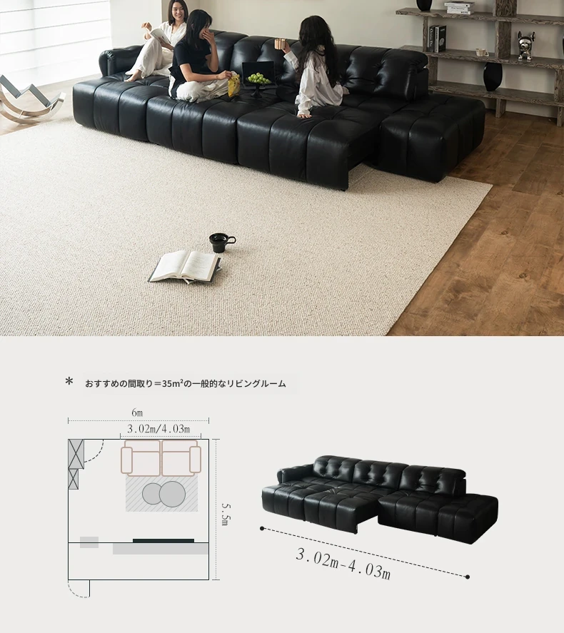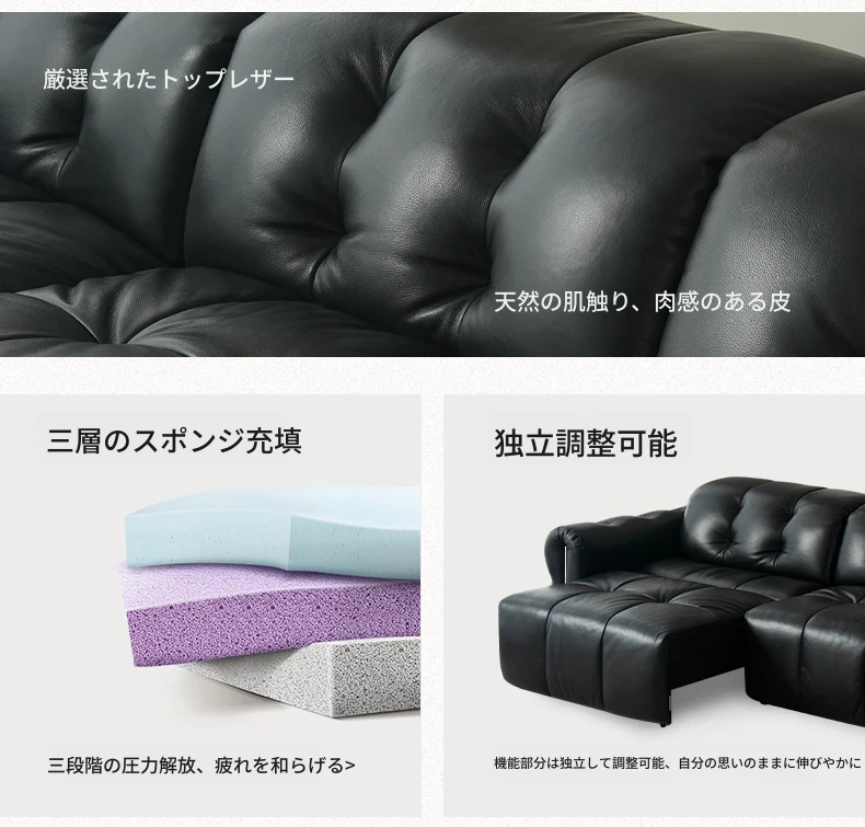 【S級肉感厚摔纹頭層牛皮】3.62メートル中三人掛け+三電動伸縮