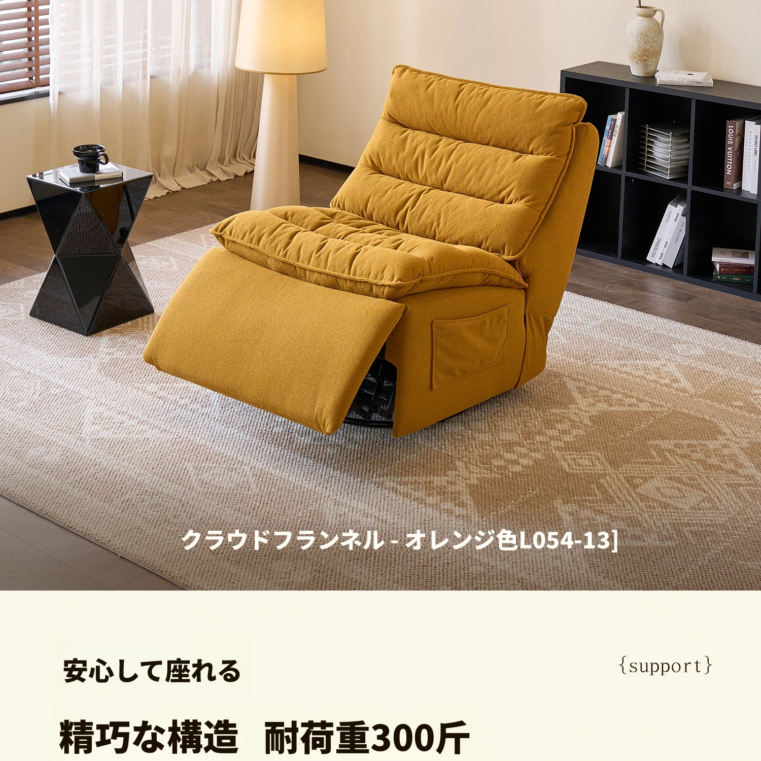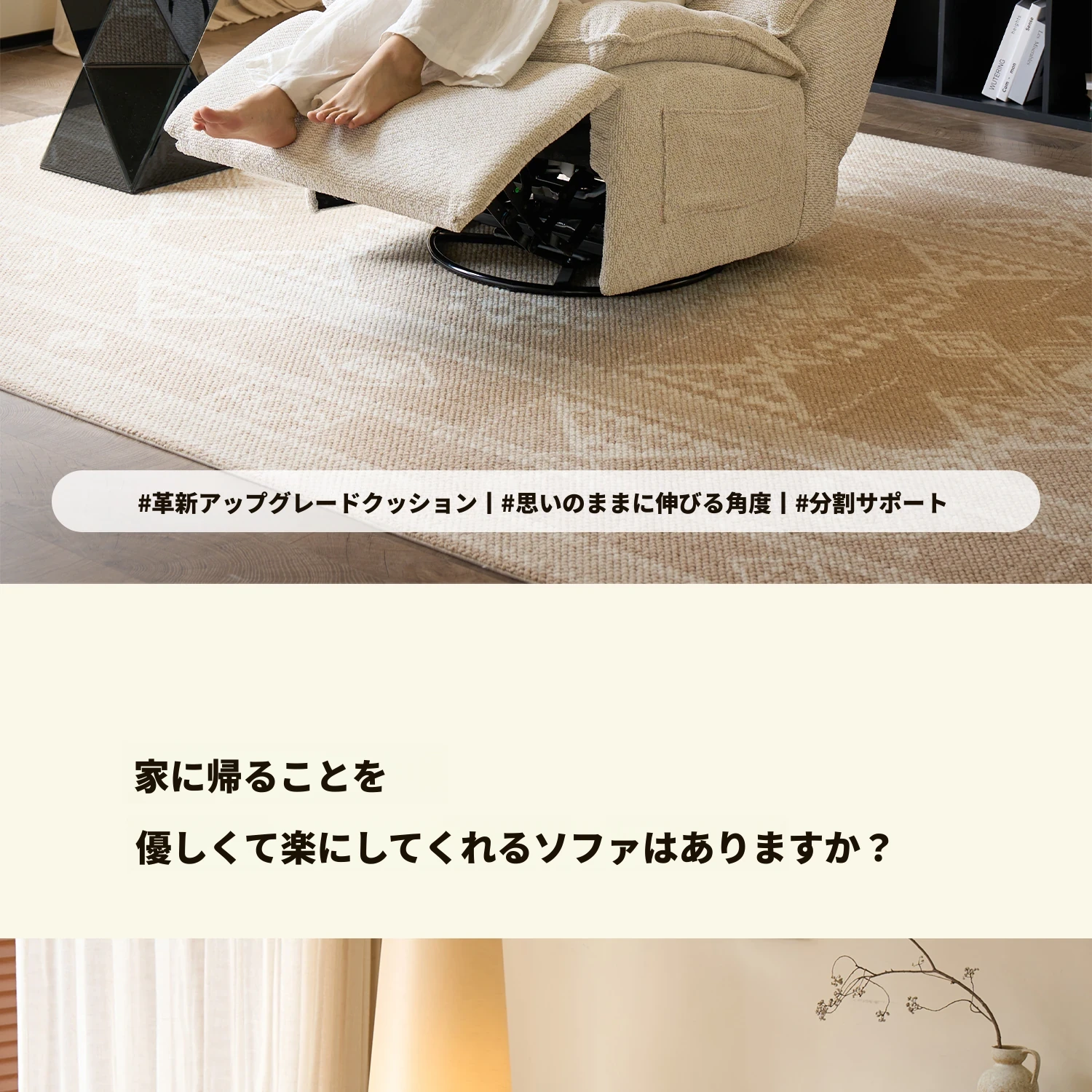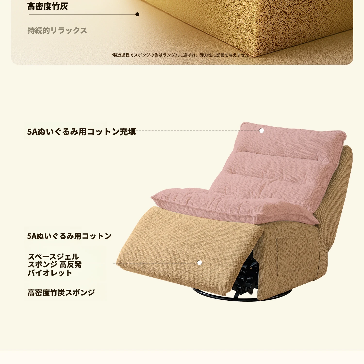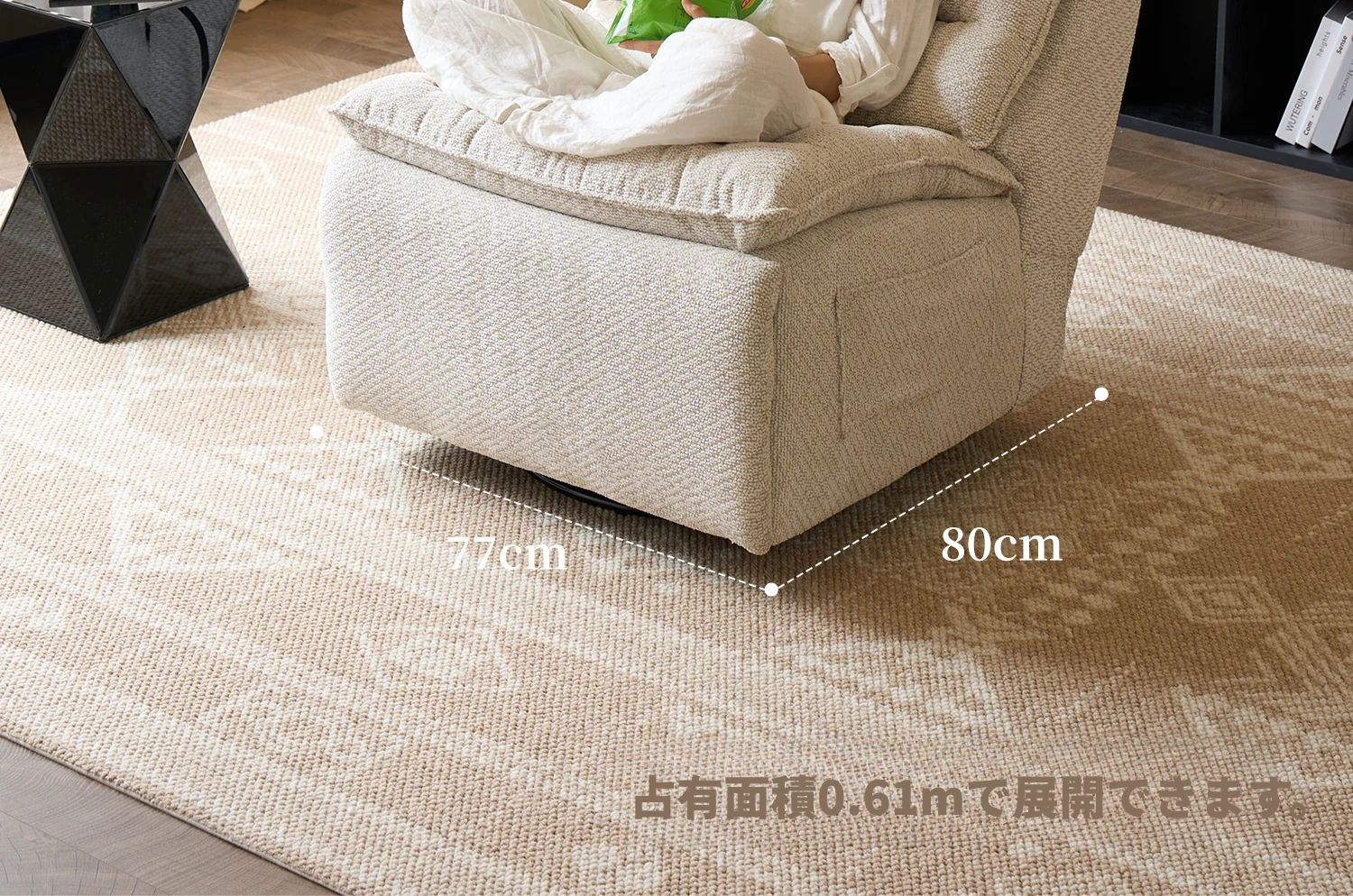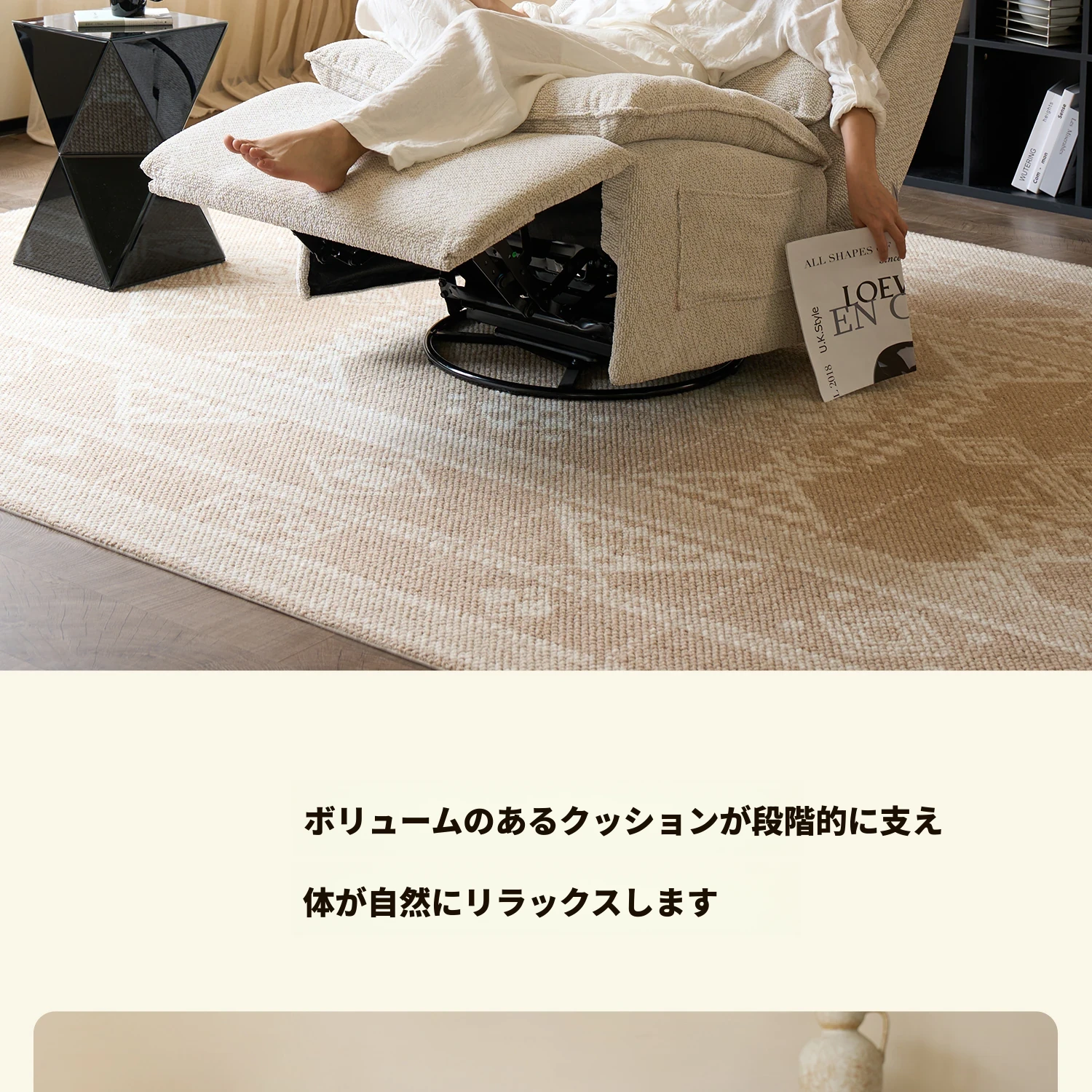 カサチの一人掛けソファ、リクライニング機能付きで寝転びも可能!小さなリビングにぴったりな侘び寂び風デザインのロッキングチェア、リラックスのための電動機能も完備!