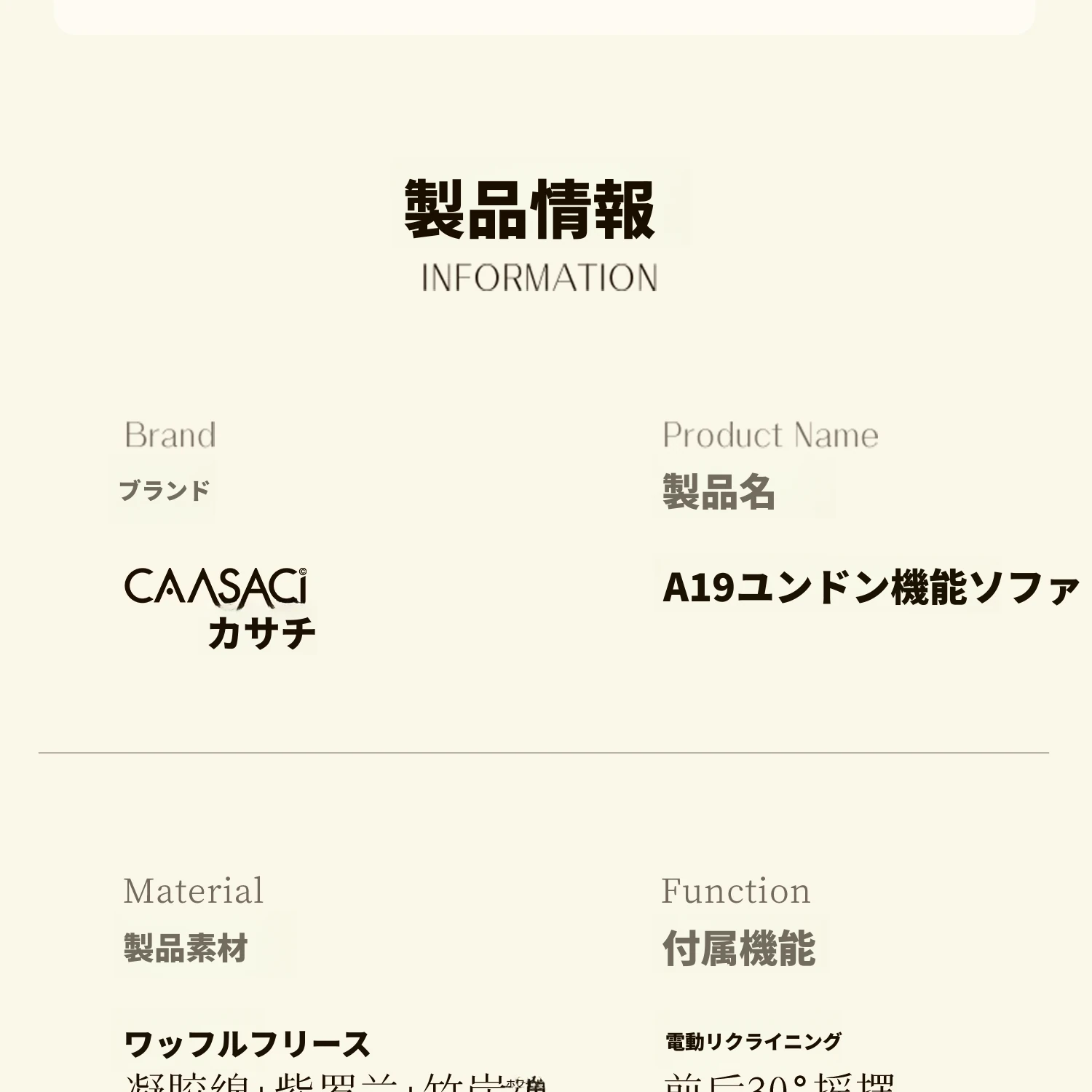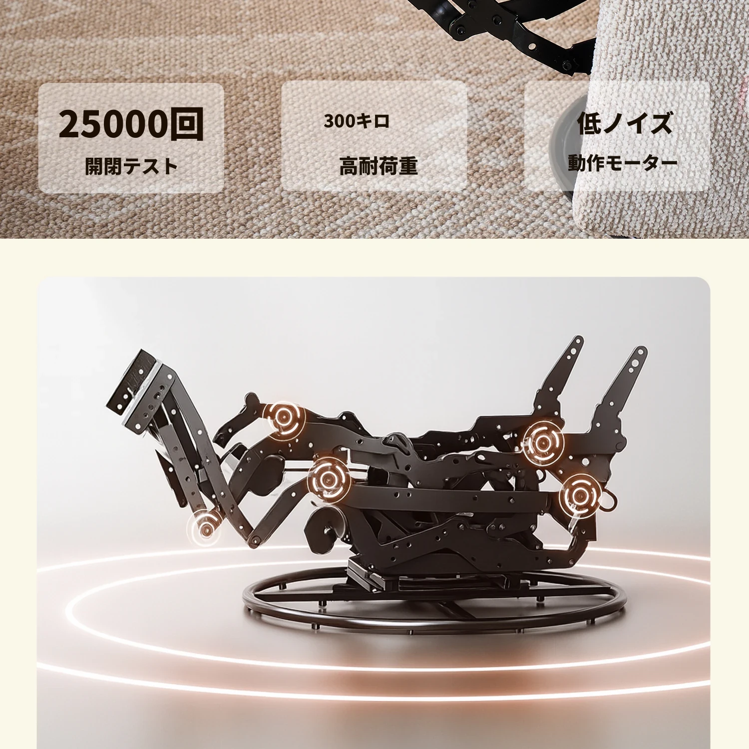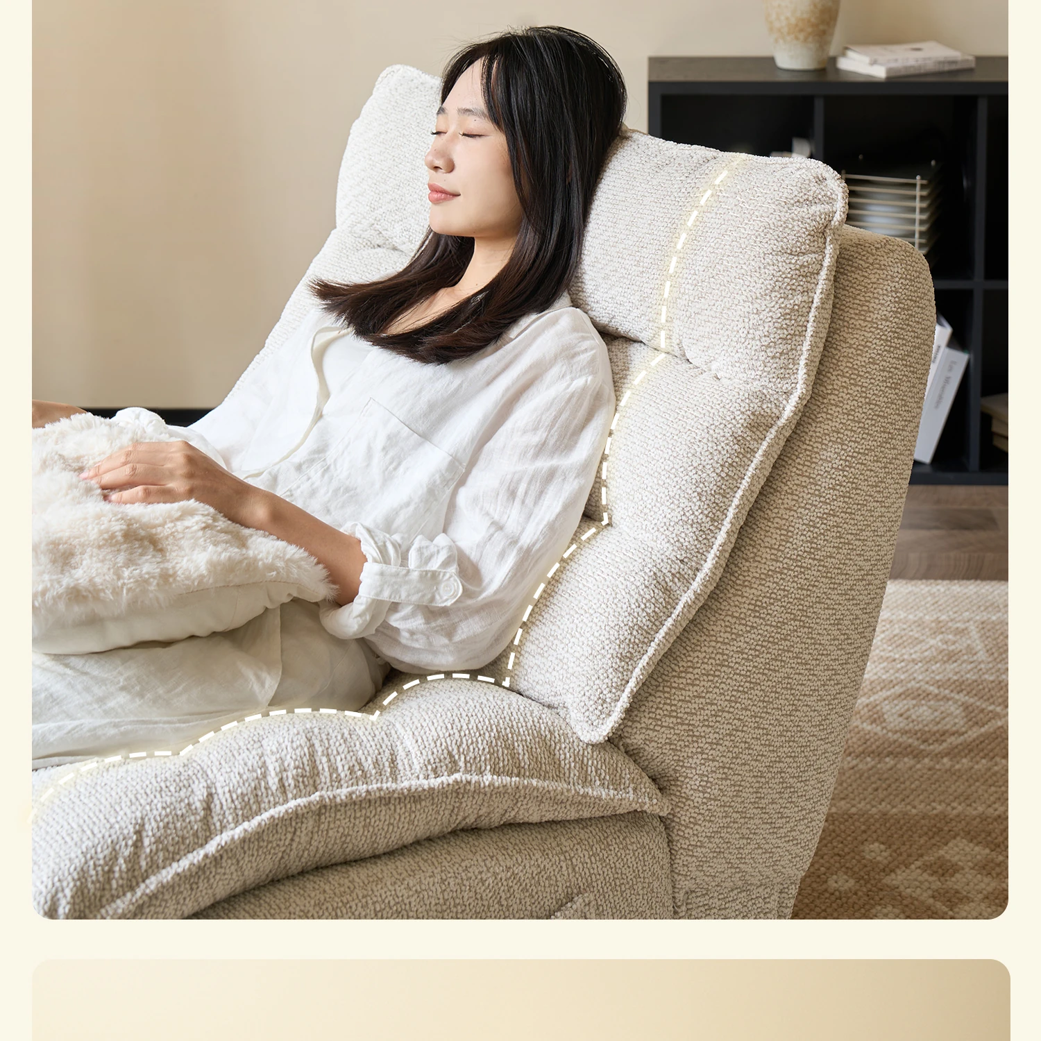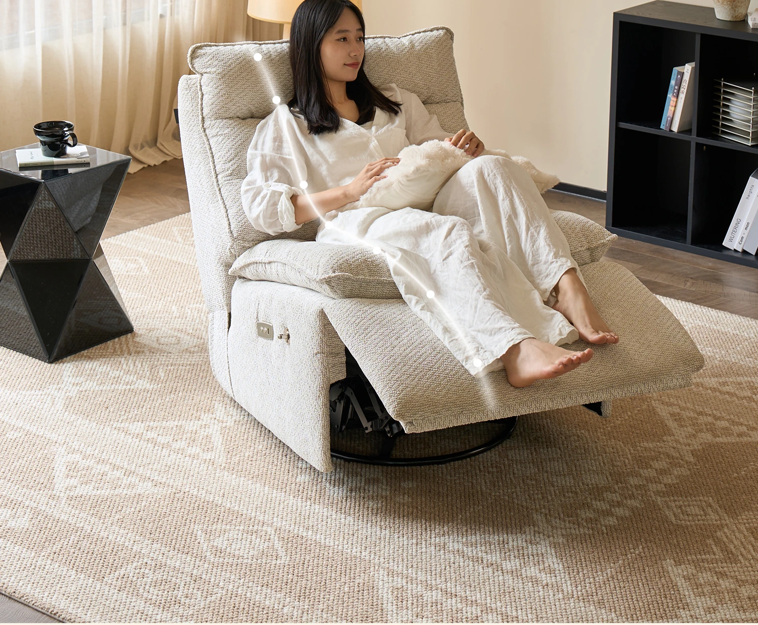 カサチの一人掛けソファ、リクライニング機能付きで寝転びも可能!小さなリビングにぴったりな侘び寂び風デザインのロッキングチェア、リラックスのための電動機能も完備!