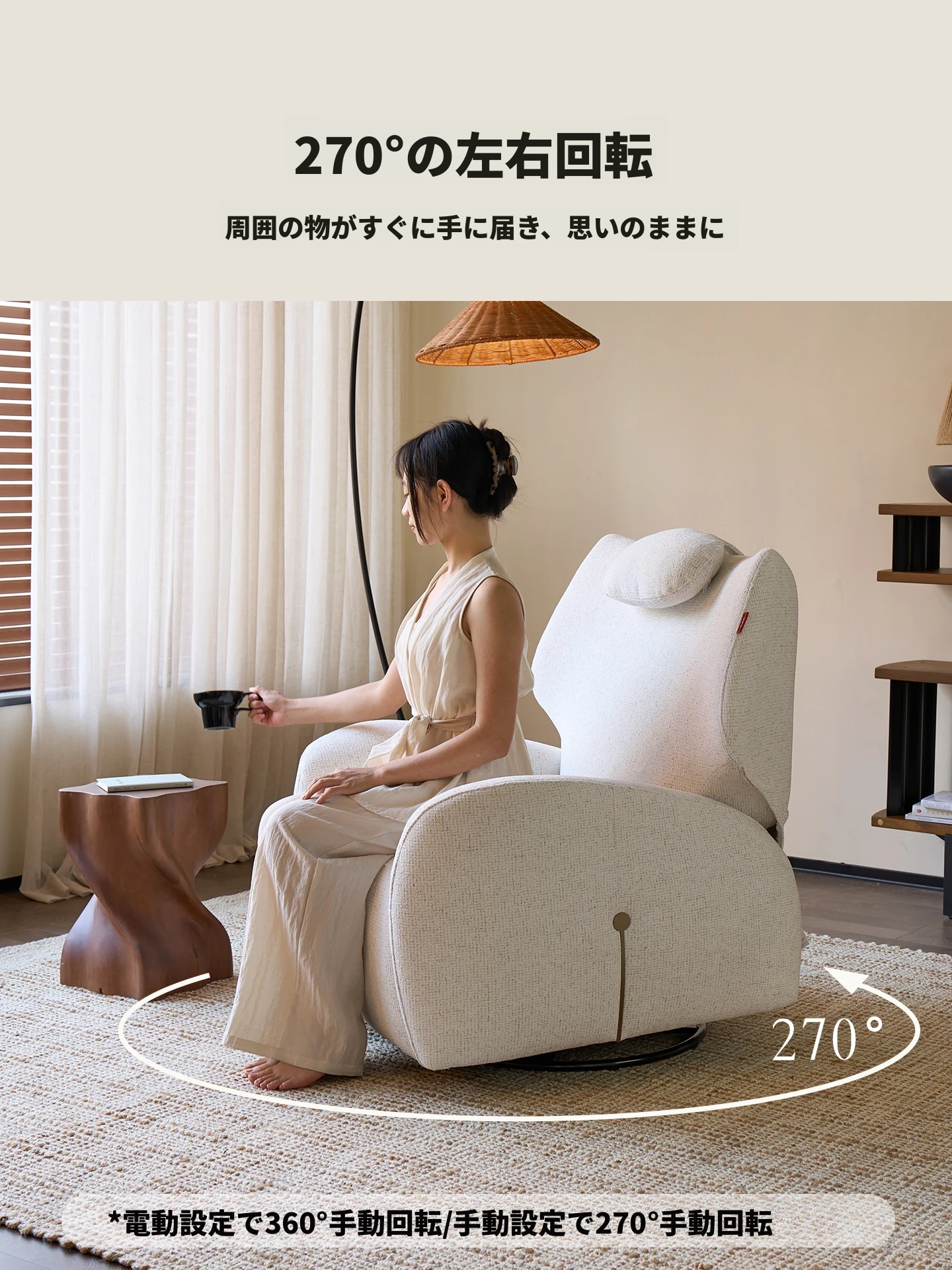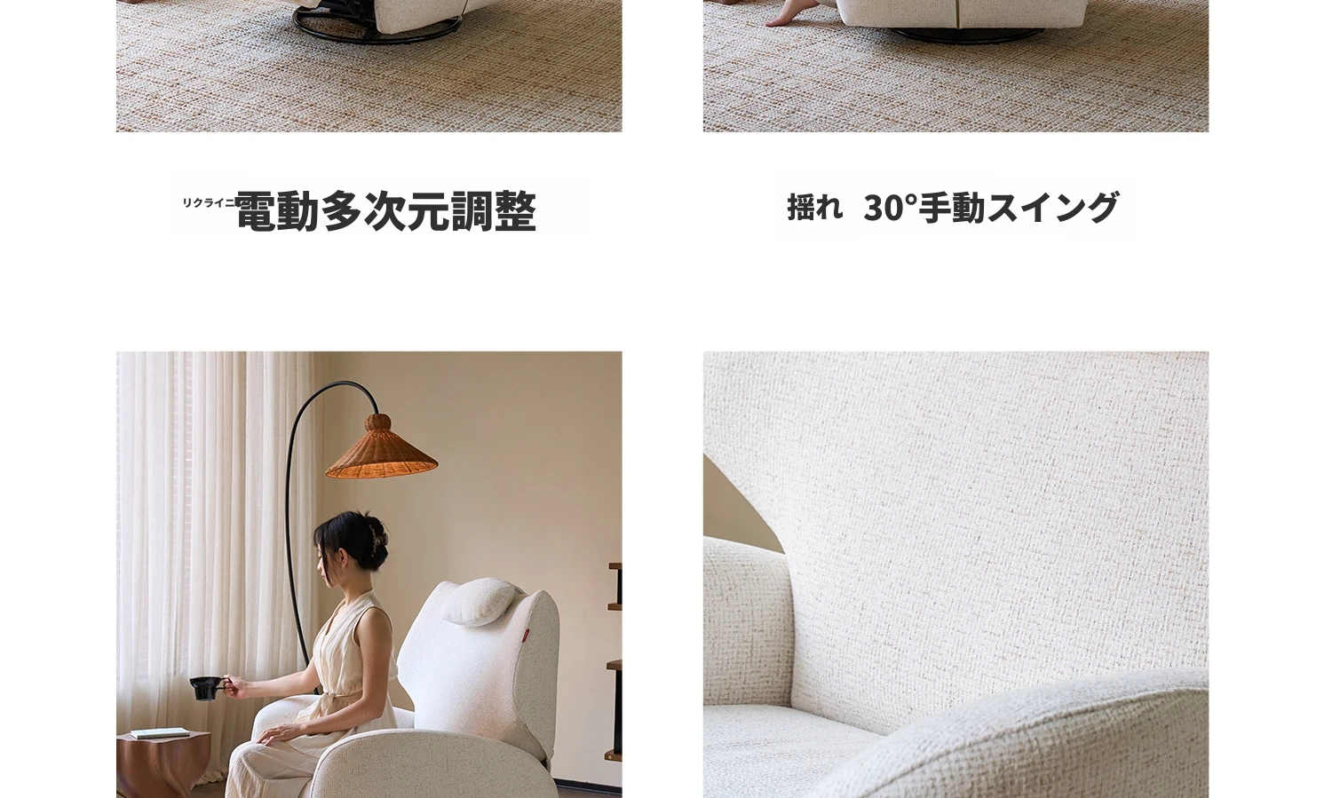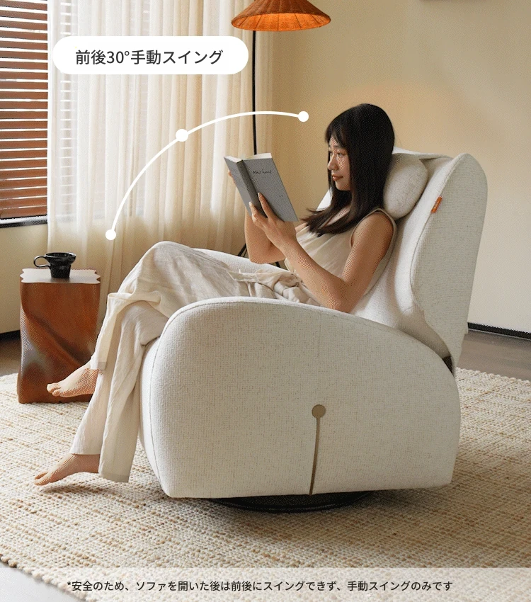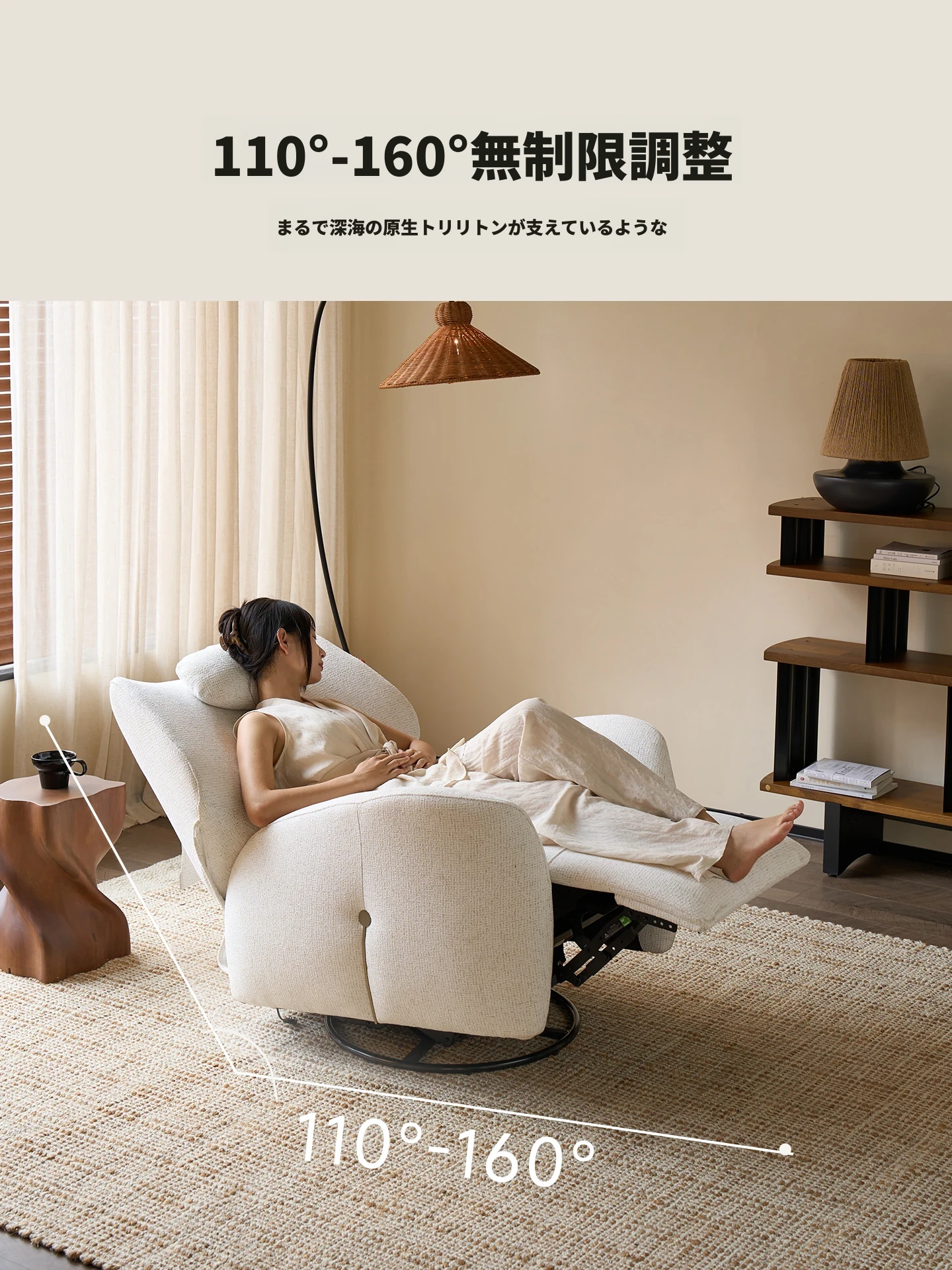 カサチのホワイト侘び寂び風アート感漂う電動マルチファンクション布製デザイナーソファ。リラックスできる一人用チェアで、スタイリッシュなインテリアを演出します。