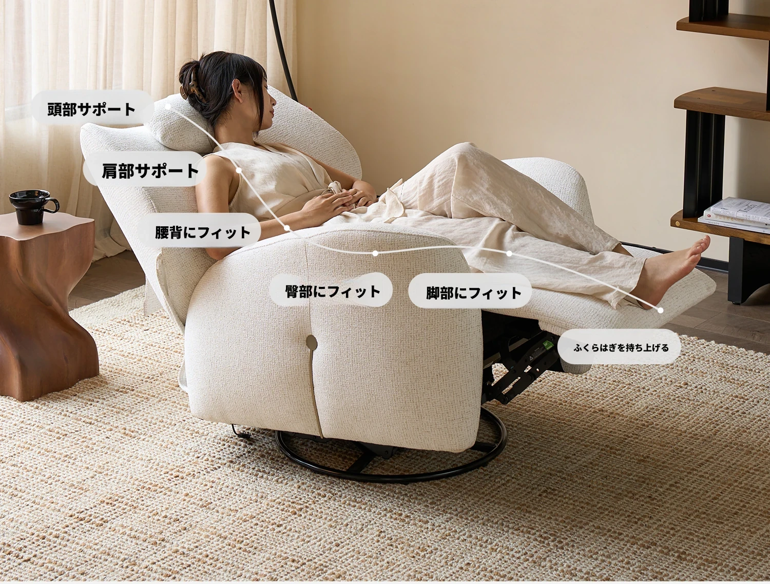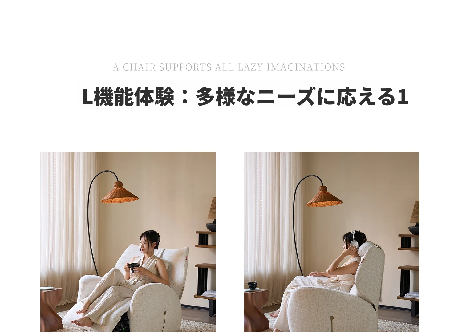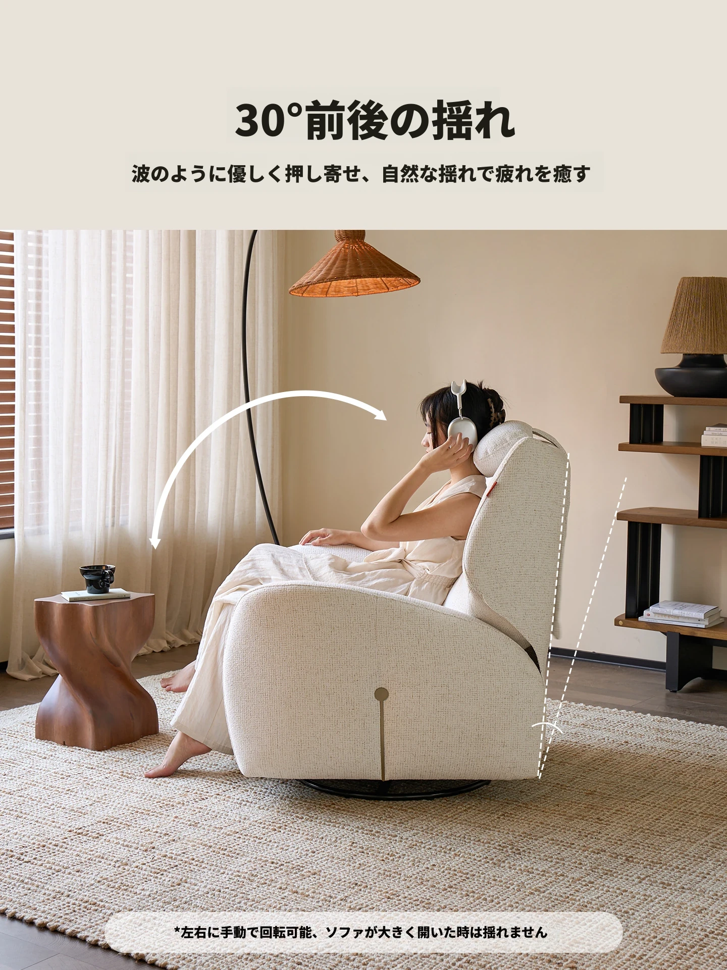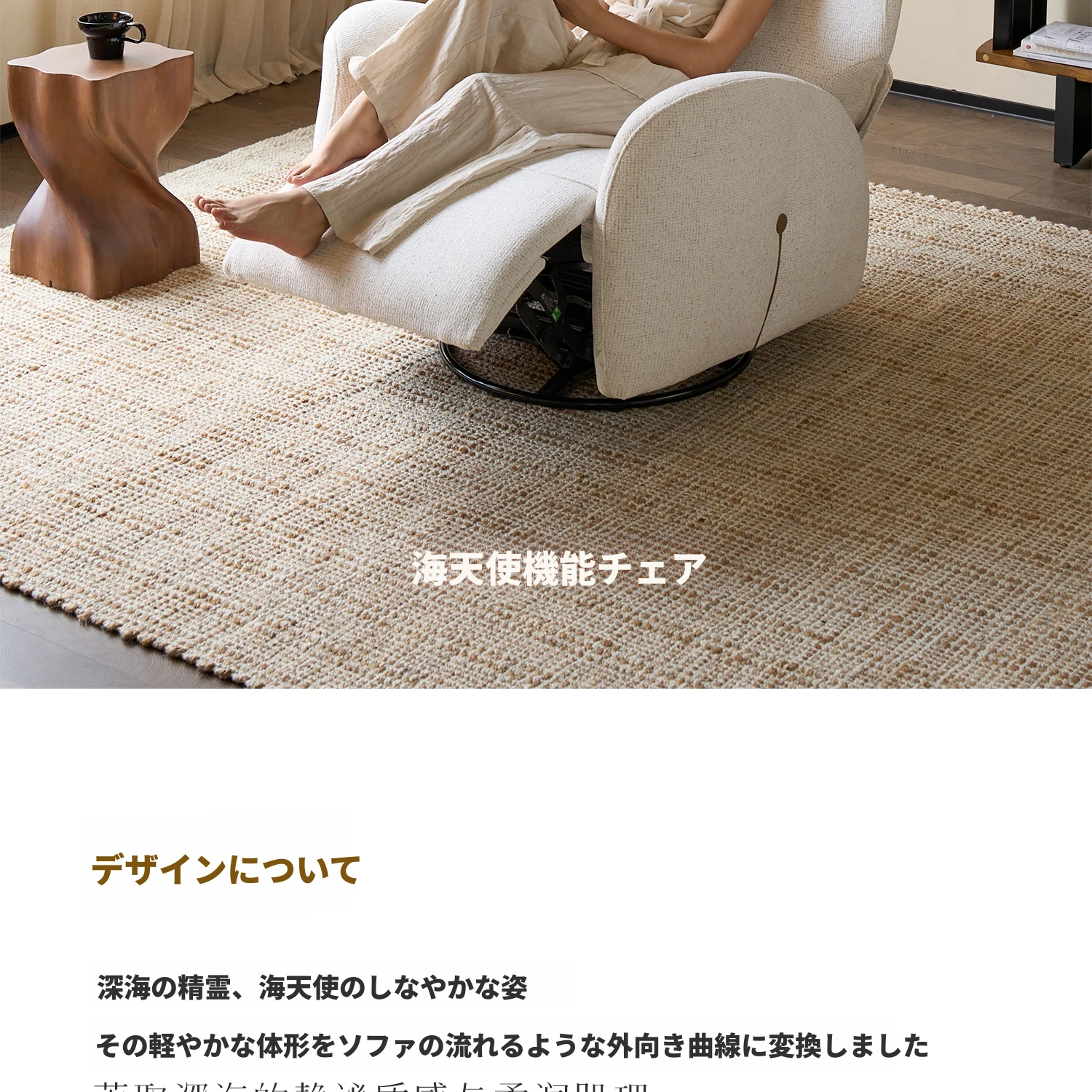 カサチのホワイト侘び寂び風アート感漂う電動マルチファンクション布製デザイナーソファ。リラックスできる一人用チェアで、スタイリッシュなインテリアを演出します。