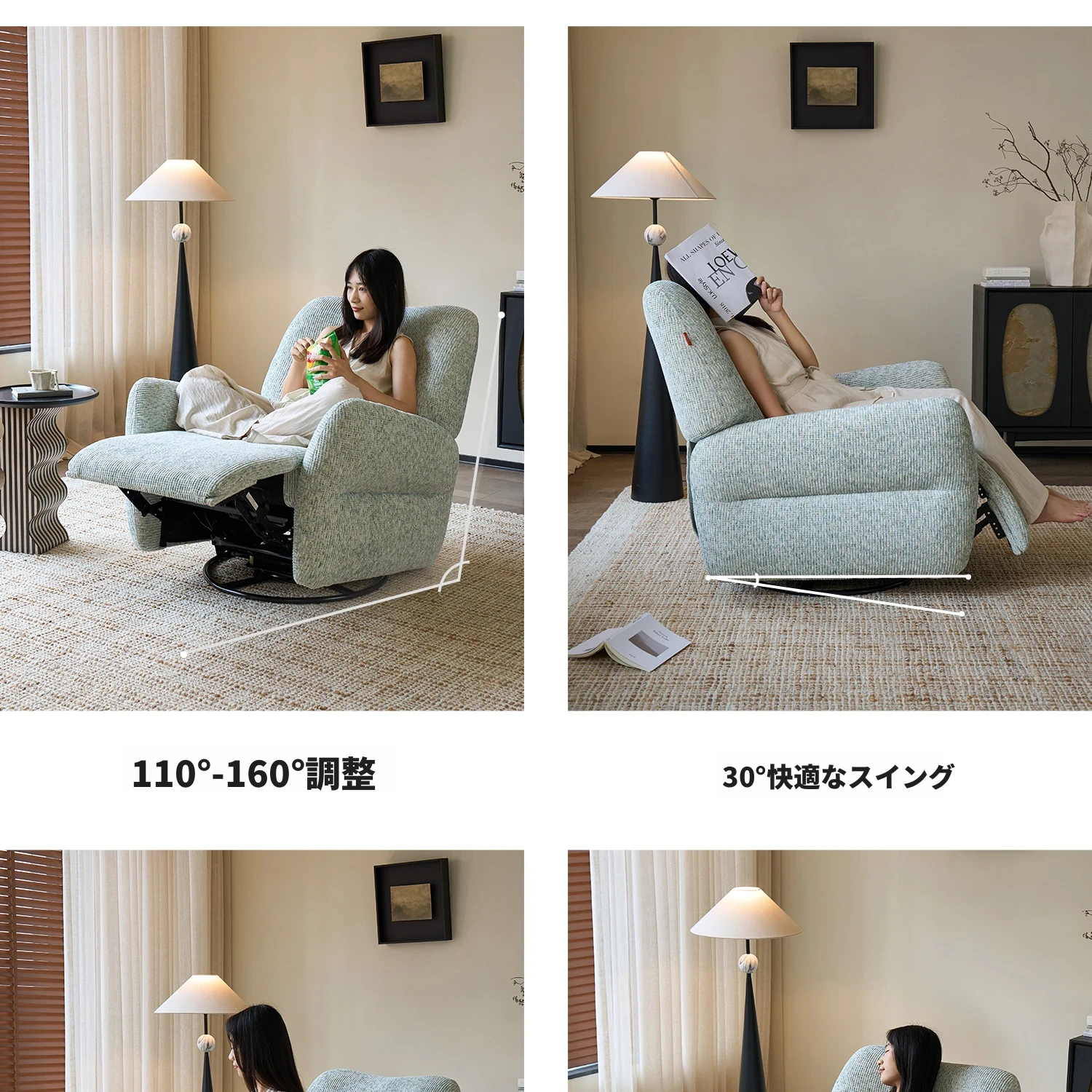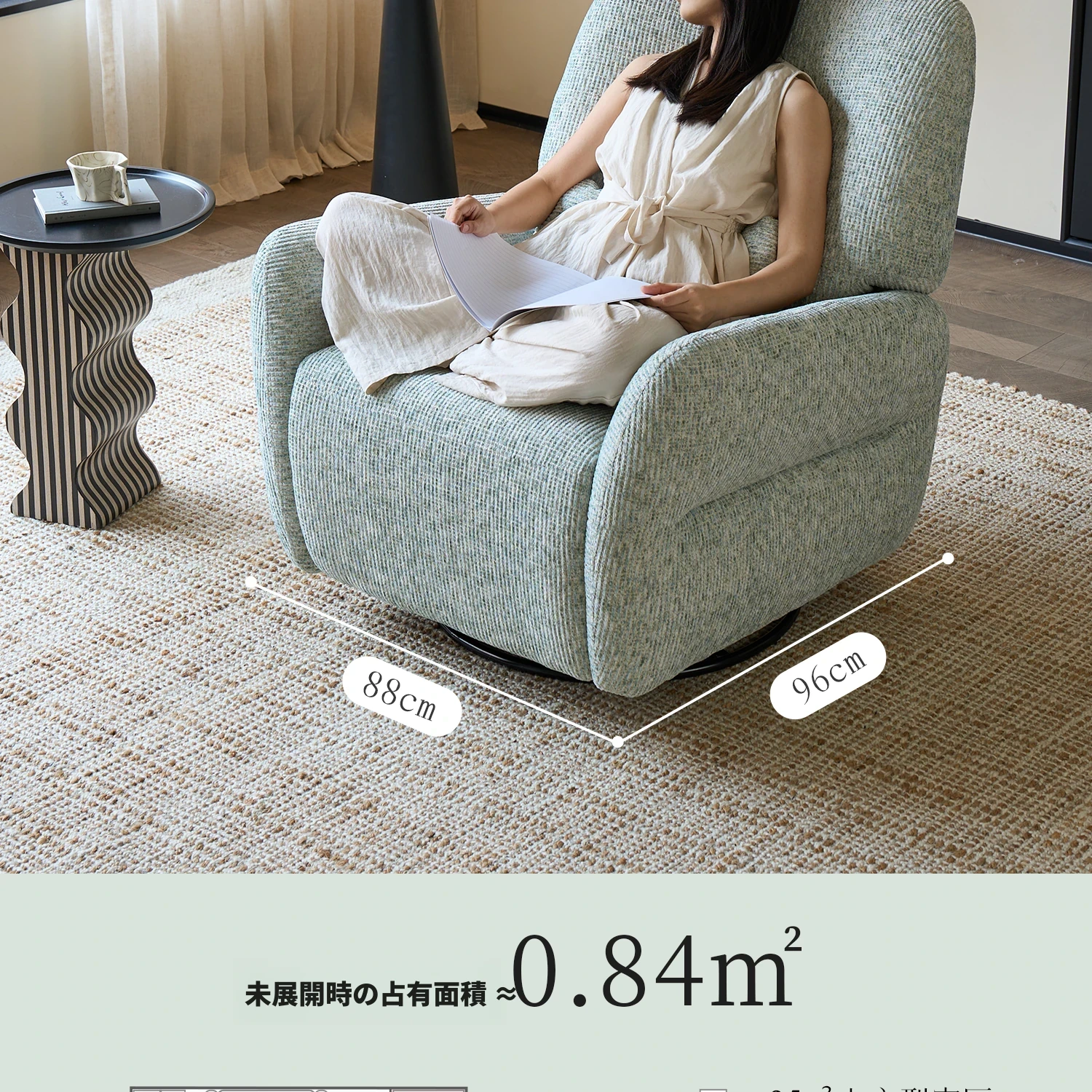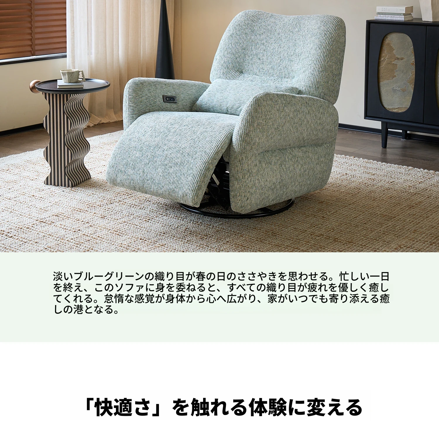 カサーチ・シェニール一人用電動ソファチェア - コンパクトサイズでリラックス!回転機能付き、寝そべりやすい設計で、くつろぎのひとときをお届けします。おしゃれなリビングにぴったりのアイテムです!