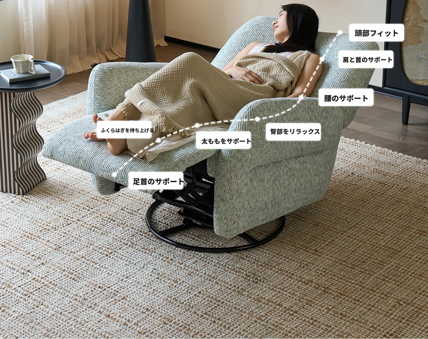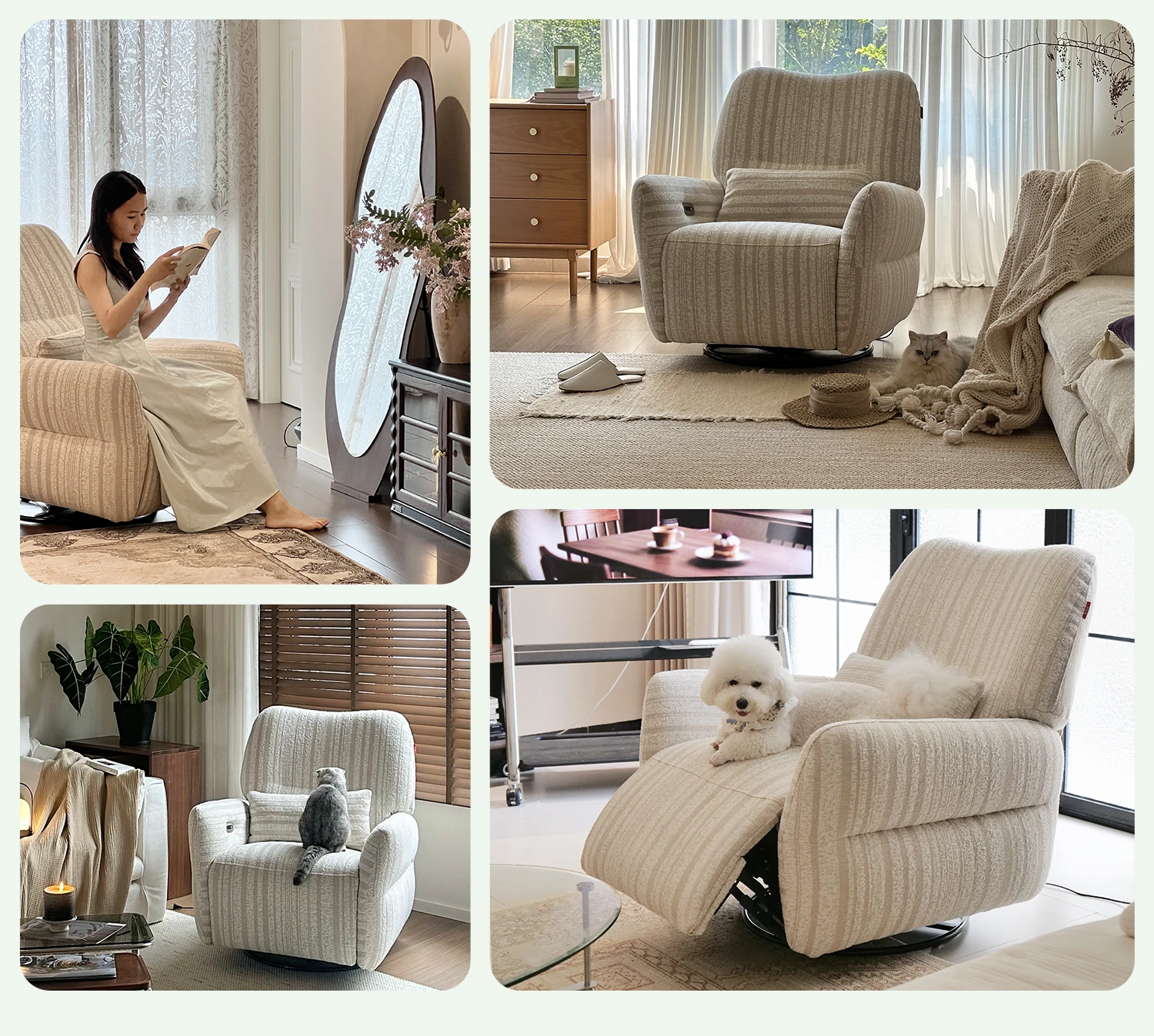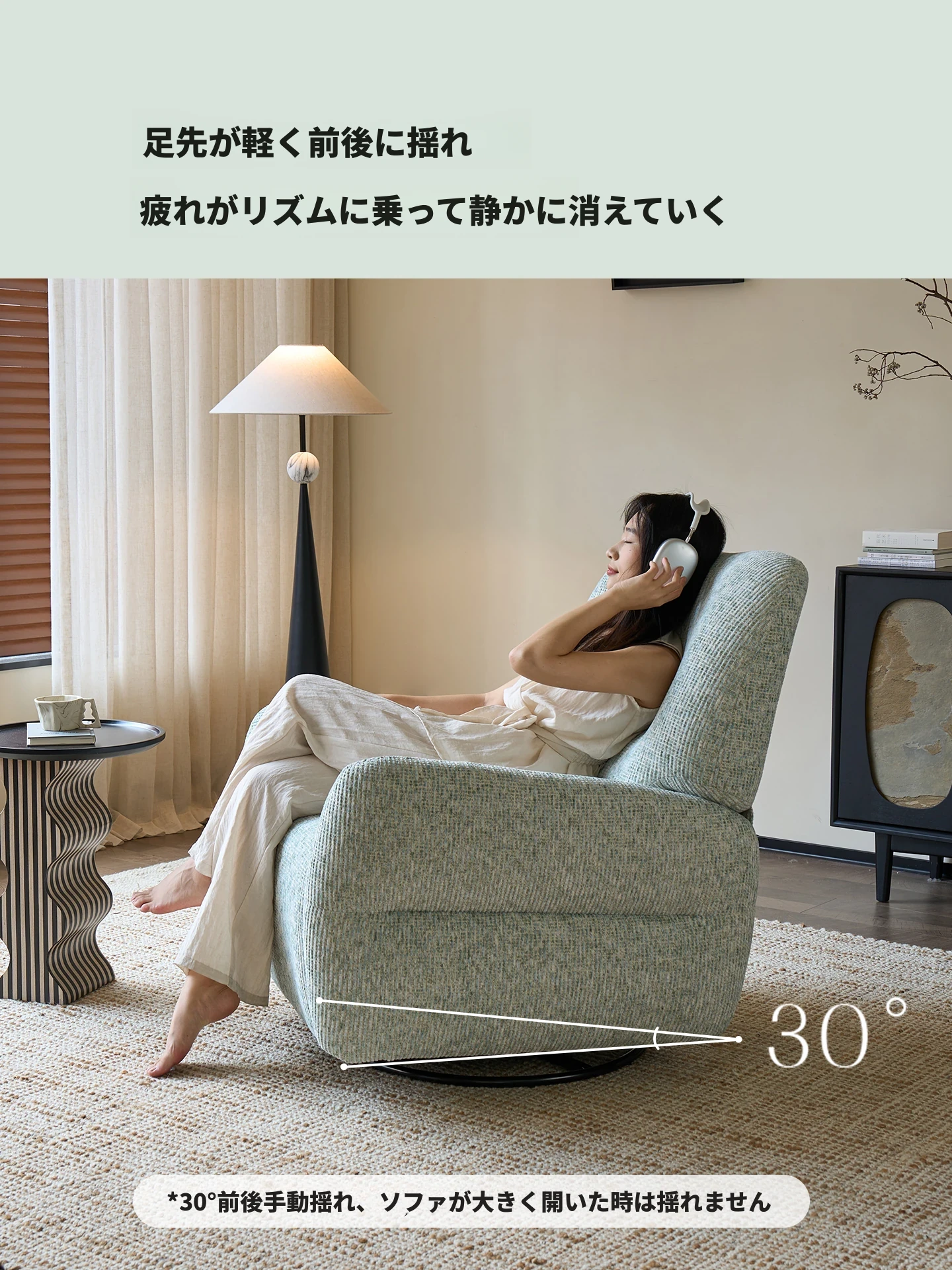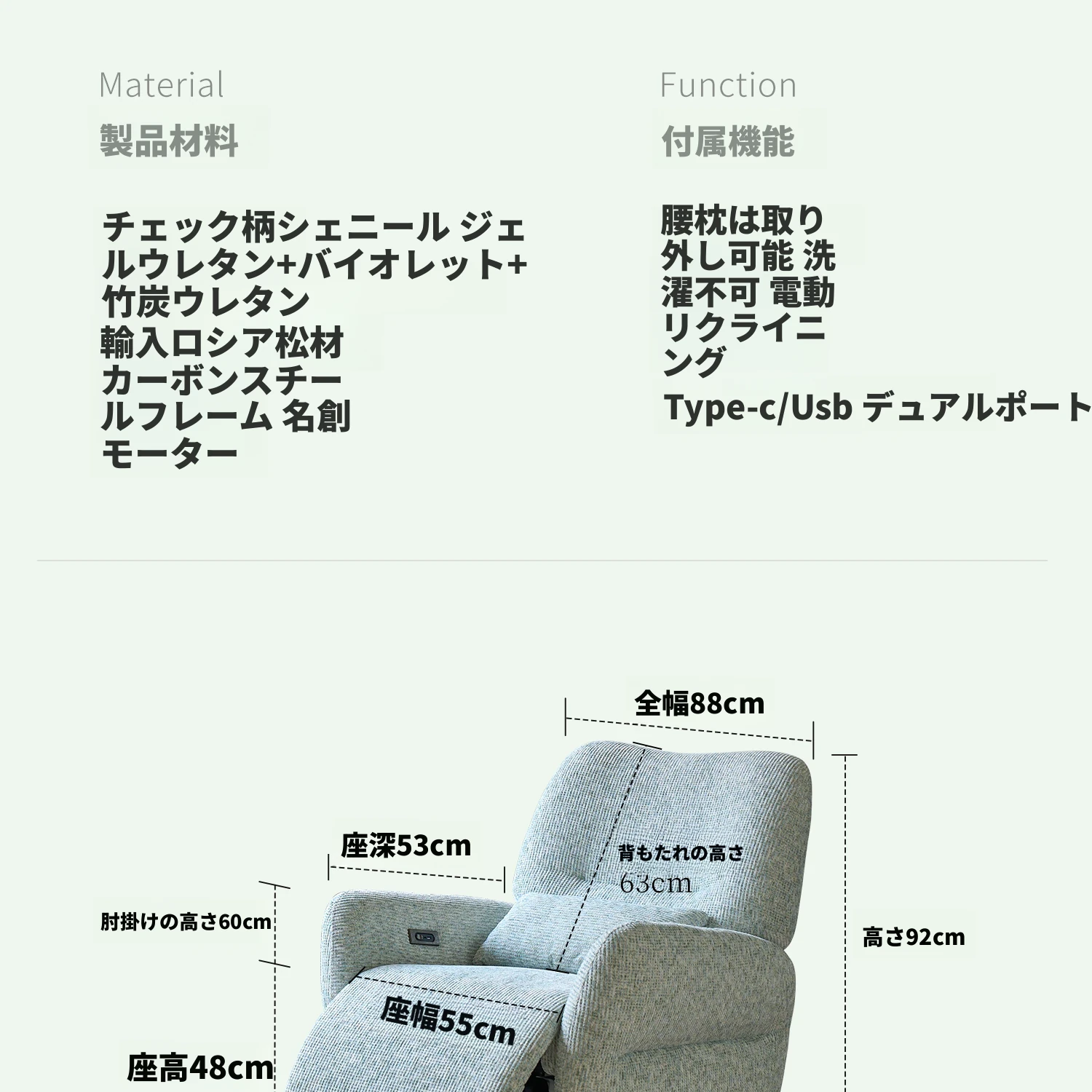 カサーチ・シェニール一人用電動ソファチェア - コンパクトサイズでリラックス!回転機能付き、寝そべりやすい設計で、くつろぎのひとときをお届けします。おしゃれなリビングにぴったりのアイテムです!