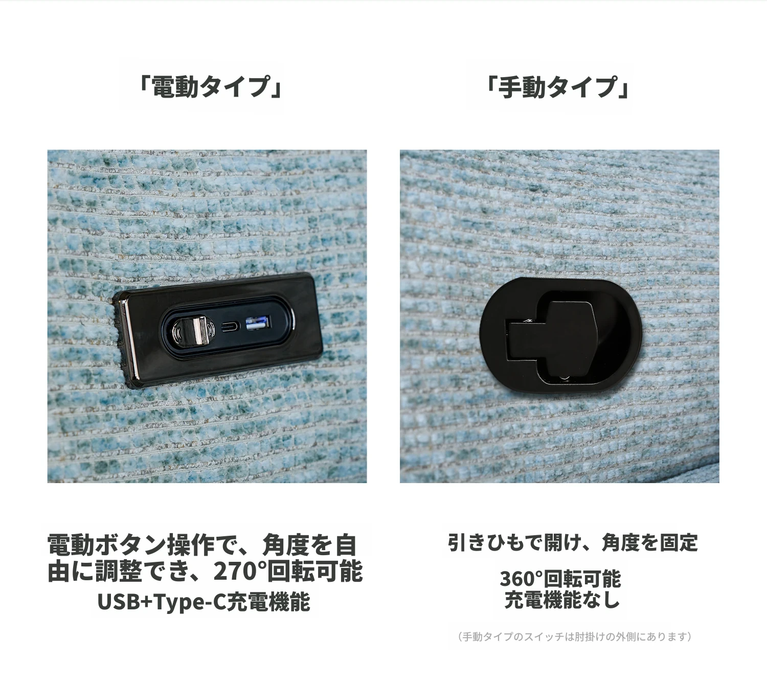 【バッテリータイプ】電動ストレッチ+USB+回転+手動スイング+バッテリー