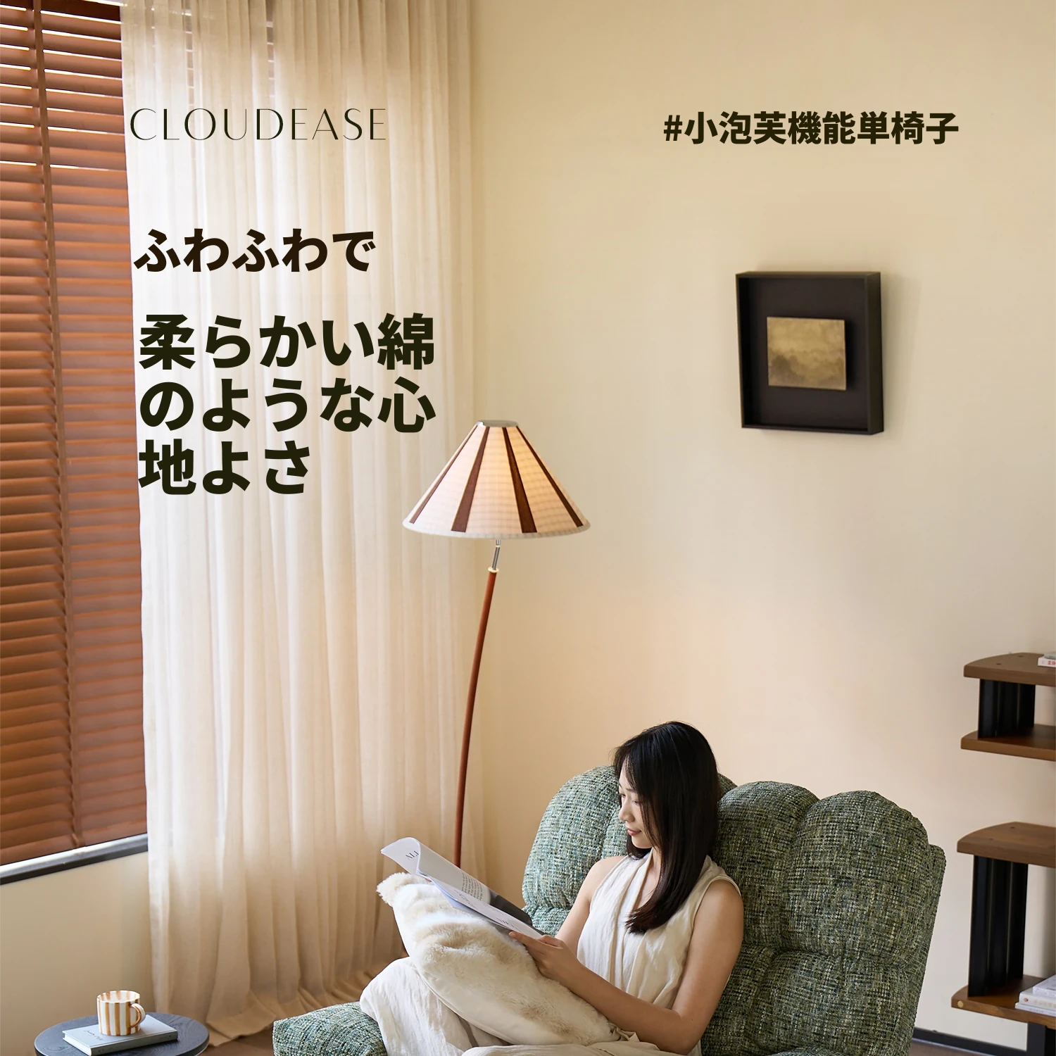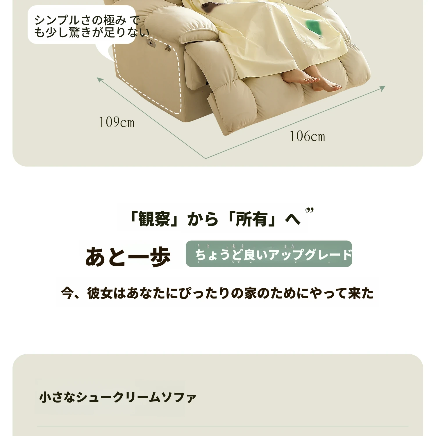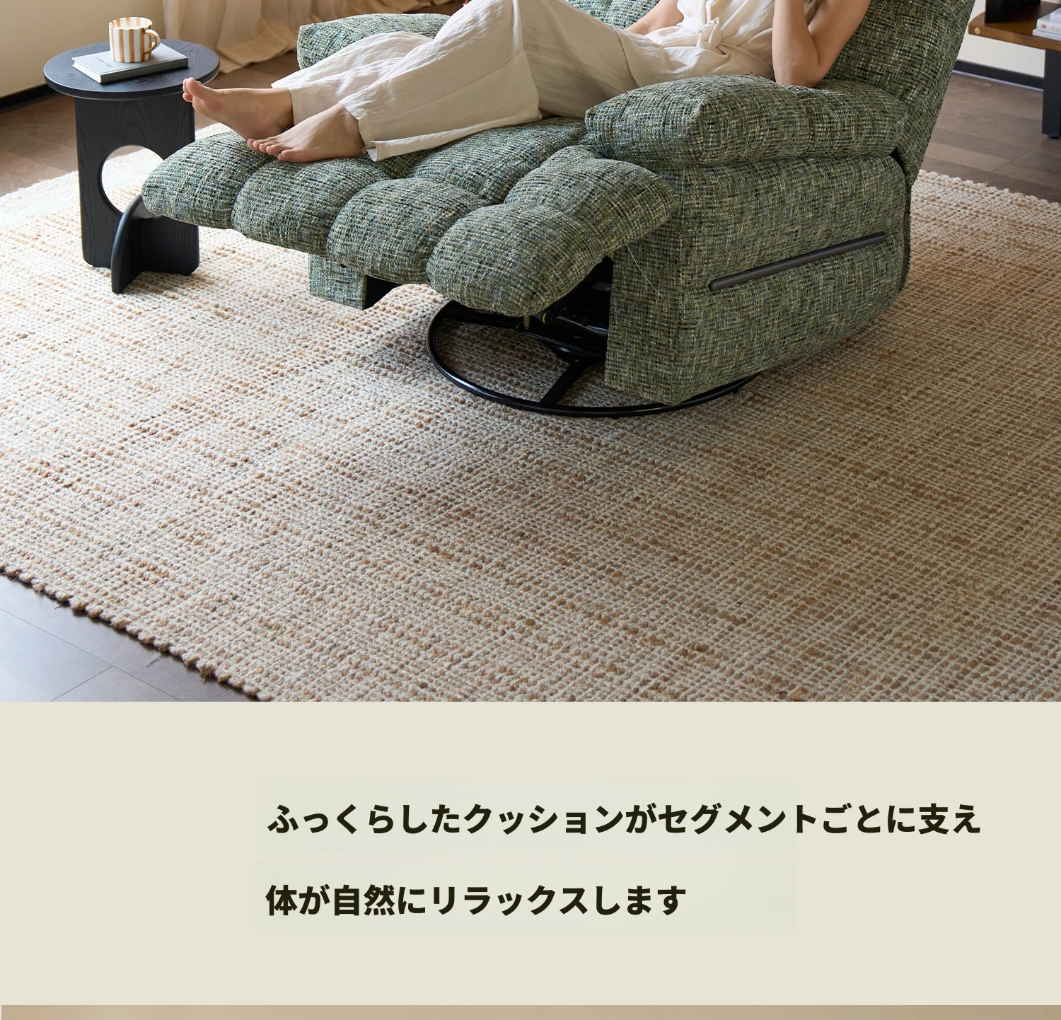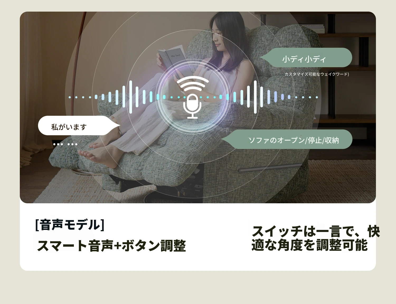 カサーチコットンリネン一人掛けソファ、リラックスできる多機能電動タイプ。包み込まれるような快適さとゼロ重力体験を実現した、エコで心地良いグリーンファブリックです!