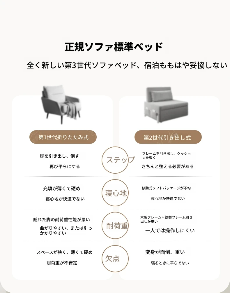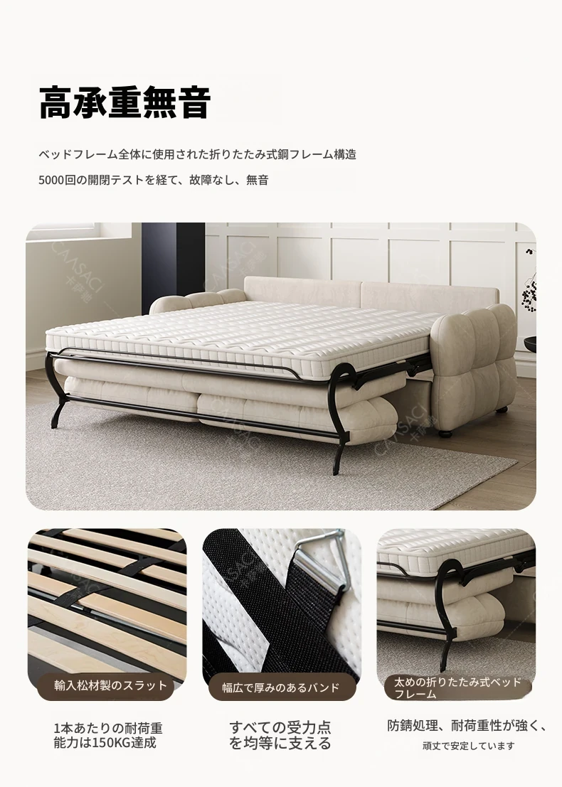 カサーチ折りたたみソファベッド 2025新モデル 小型住宅向け スペースを取らない多機能マシュマロソファ!快適な眠りとおしゃれなインテリアを両立させる、理想のアイテムです。