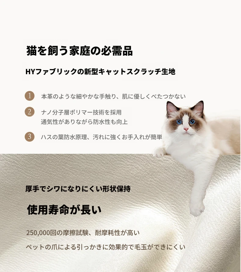【三防キャットスクラッチ布|マットレス付き+洗濯可能】-1.75メートル|クリームベージュ