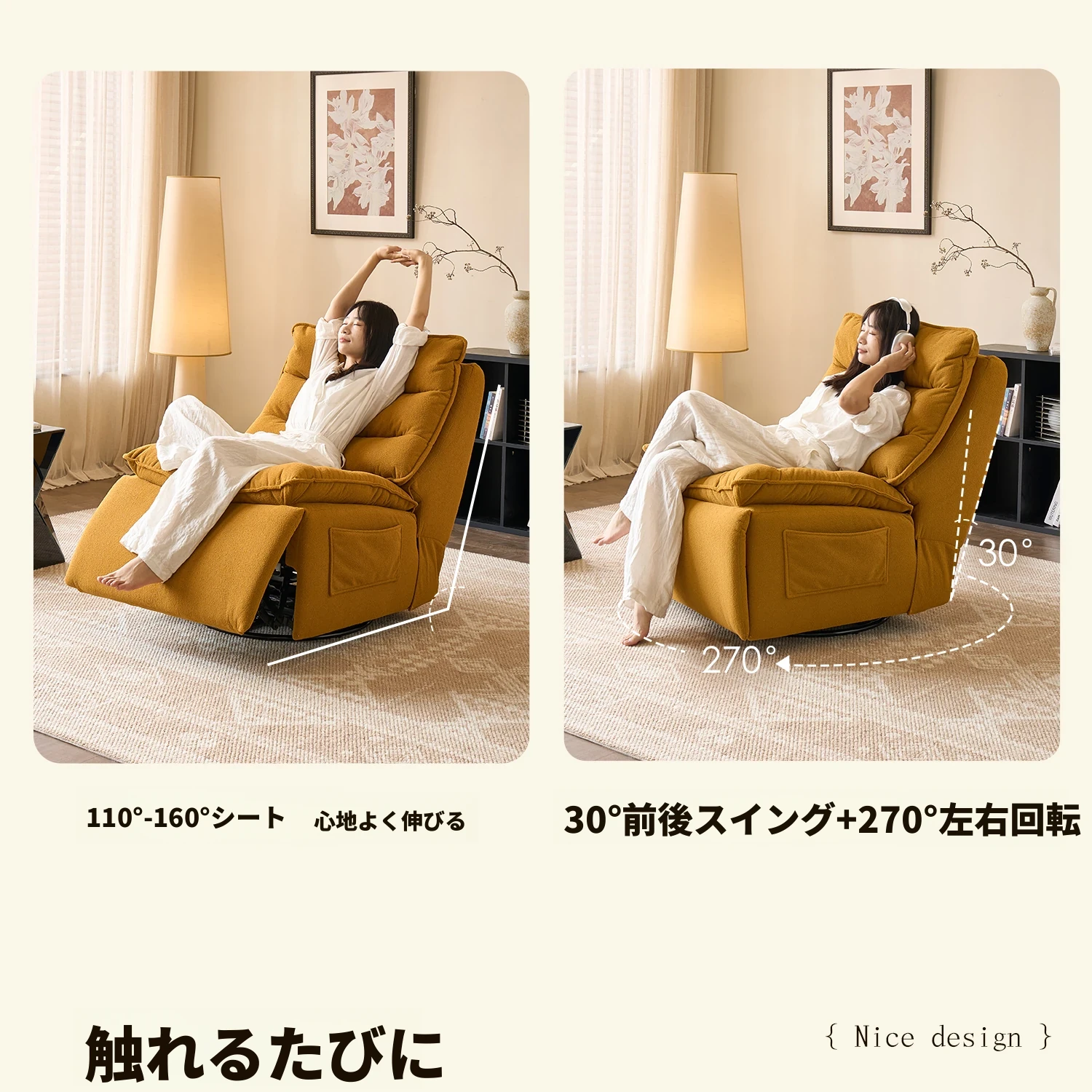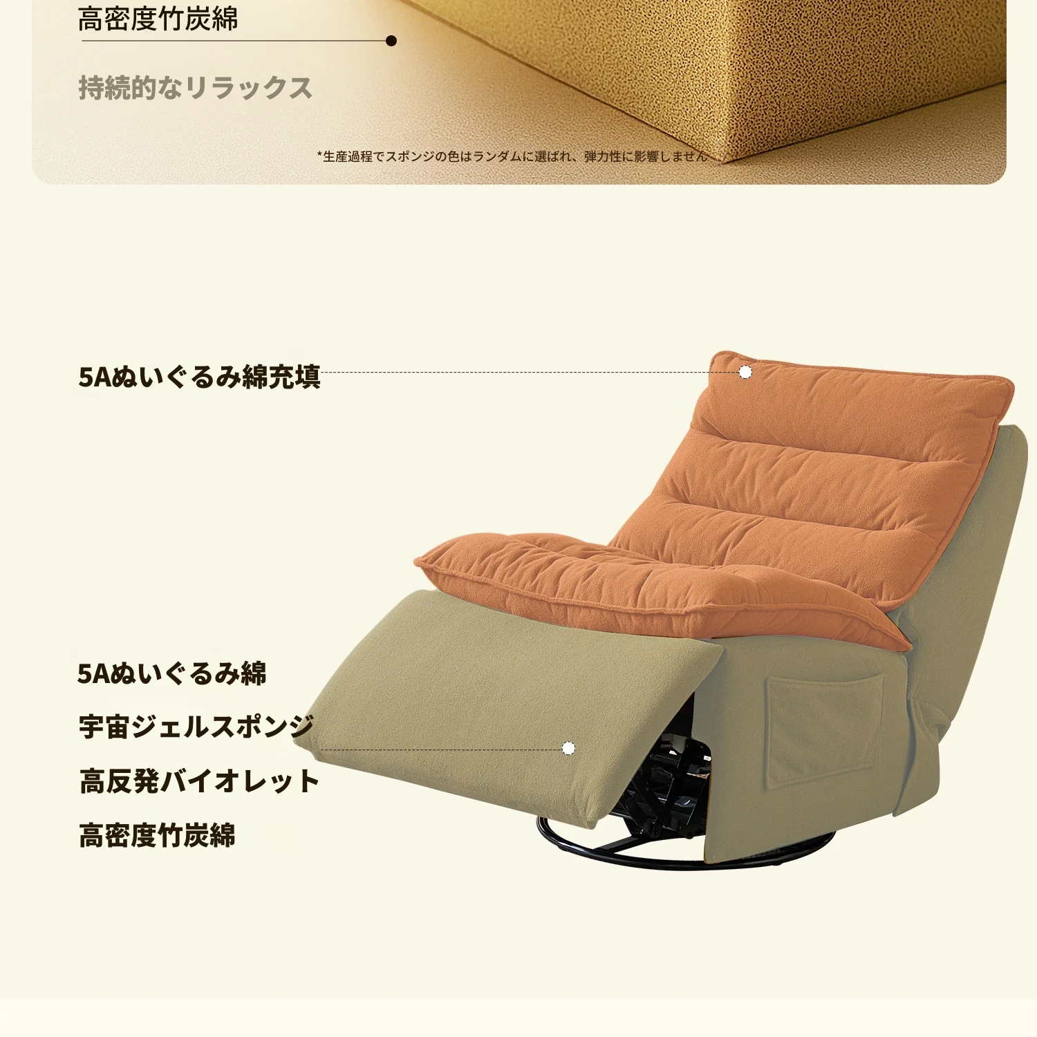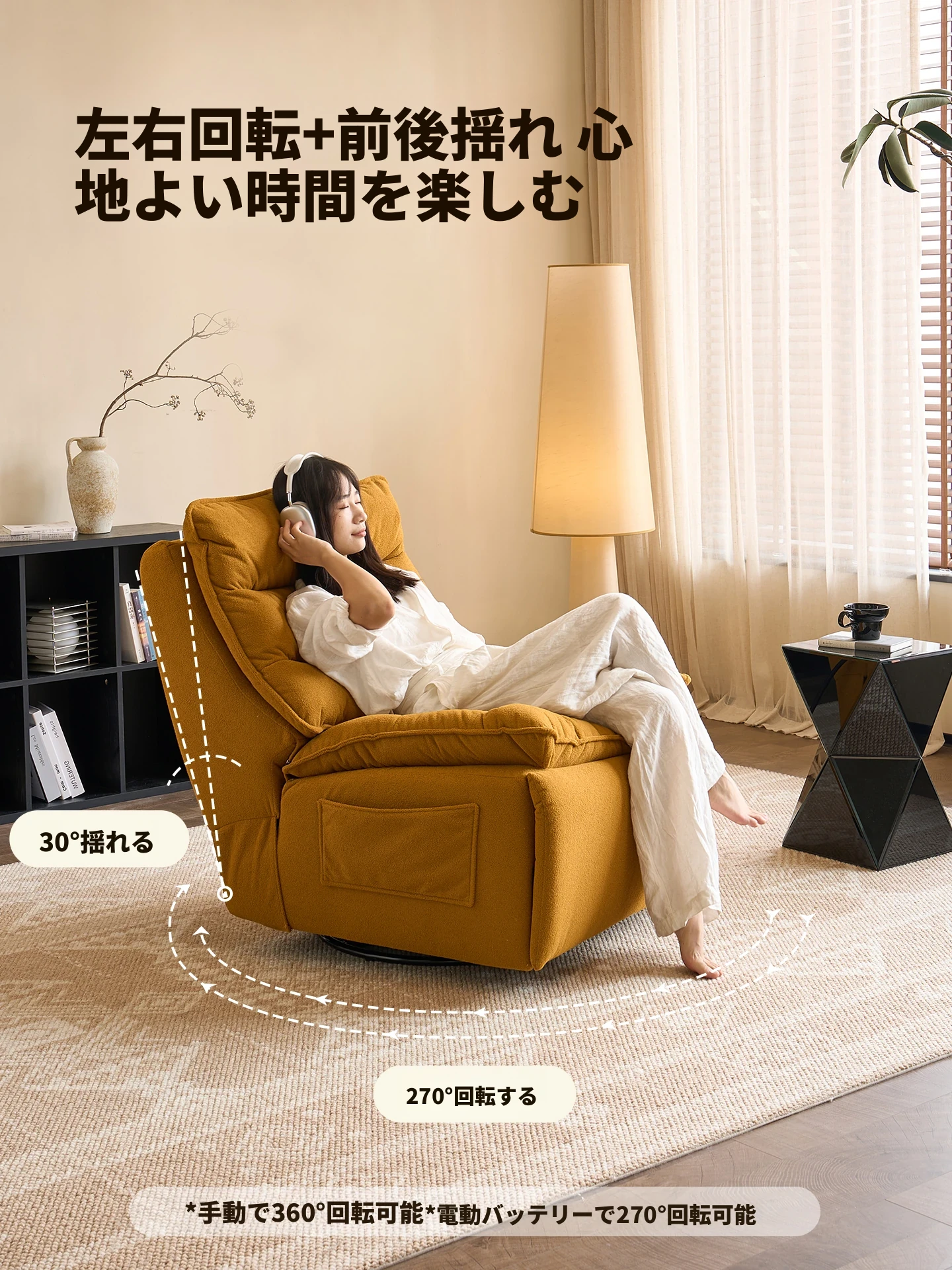 カサチLazyソファー - 回転&揺れ機能付き、コンパクトな現代的デザインの一人用電動ゼロ重力ソファ。快適なリラックスタイムを実現!