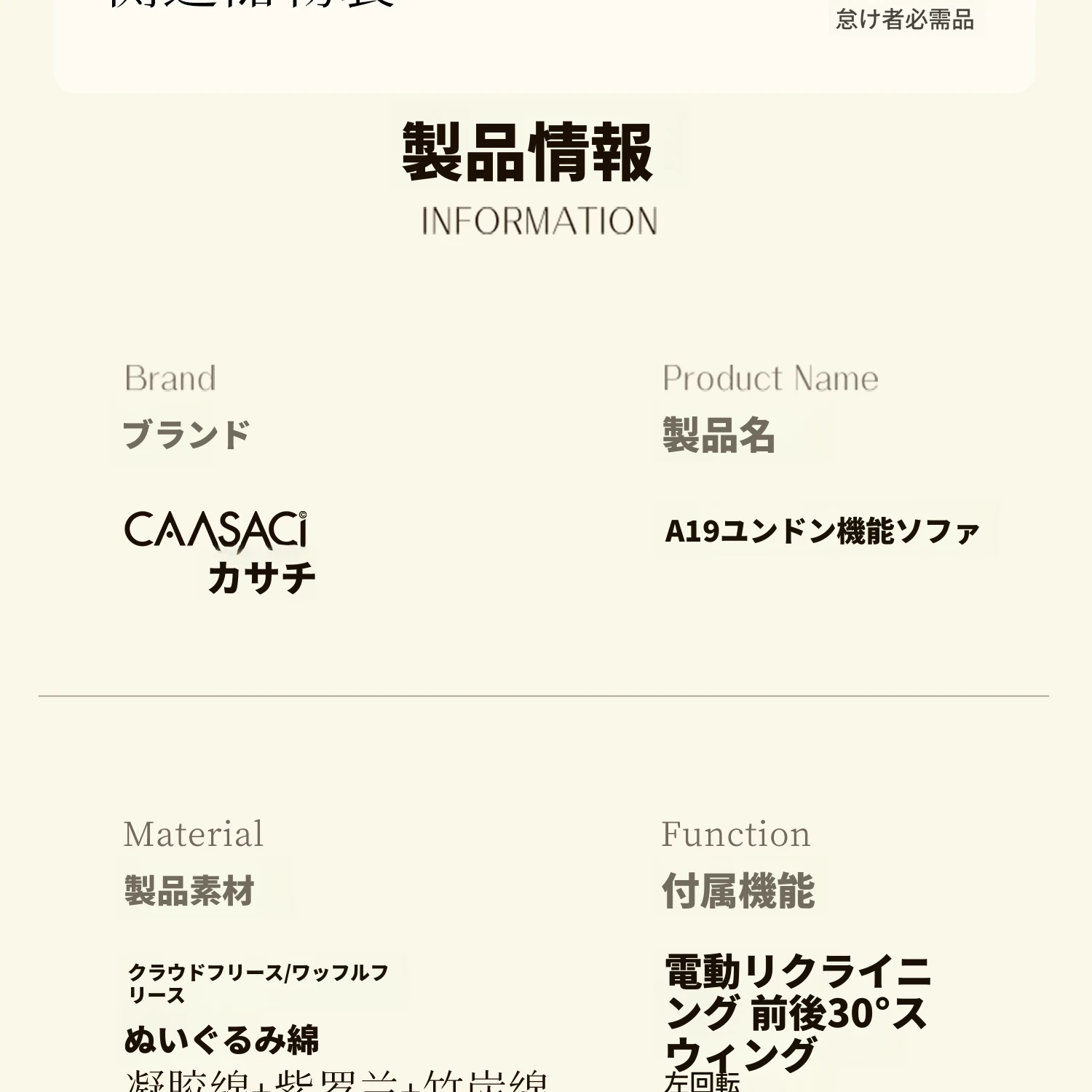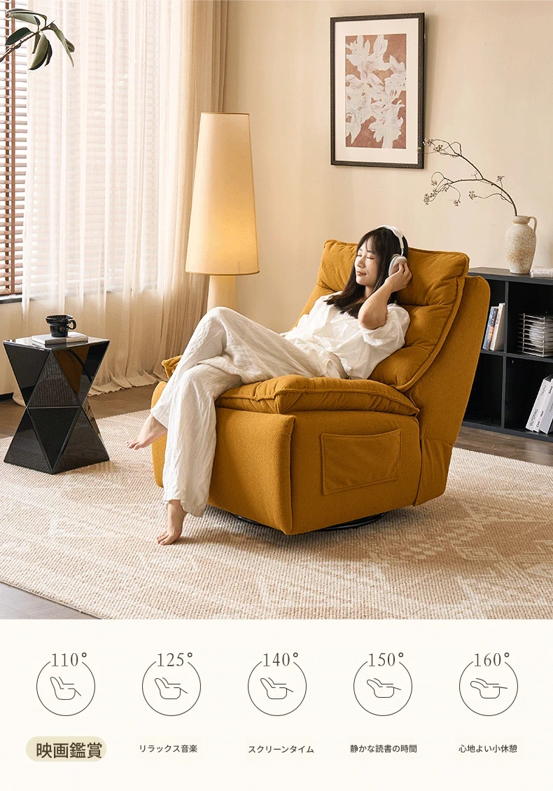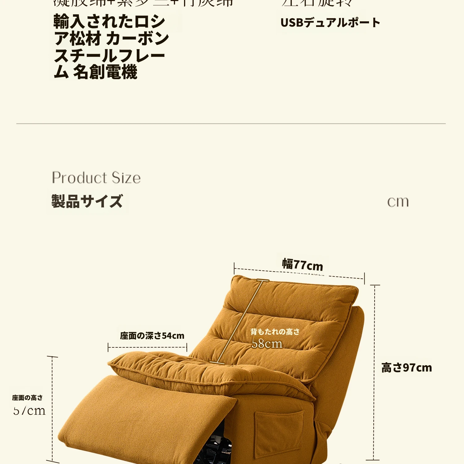 カサチLazyソファー - 回転&揺れ機能付き、コンパクトな現代的デザインの一人用電動ゼロ重力ソファ。快適なリラックスタイムを実現!
