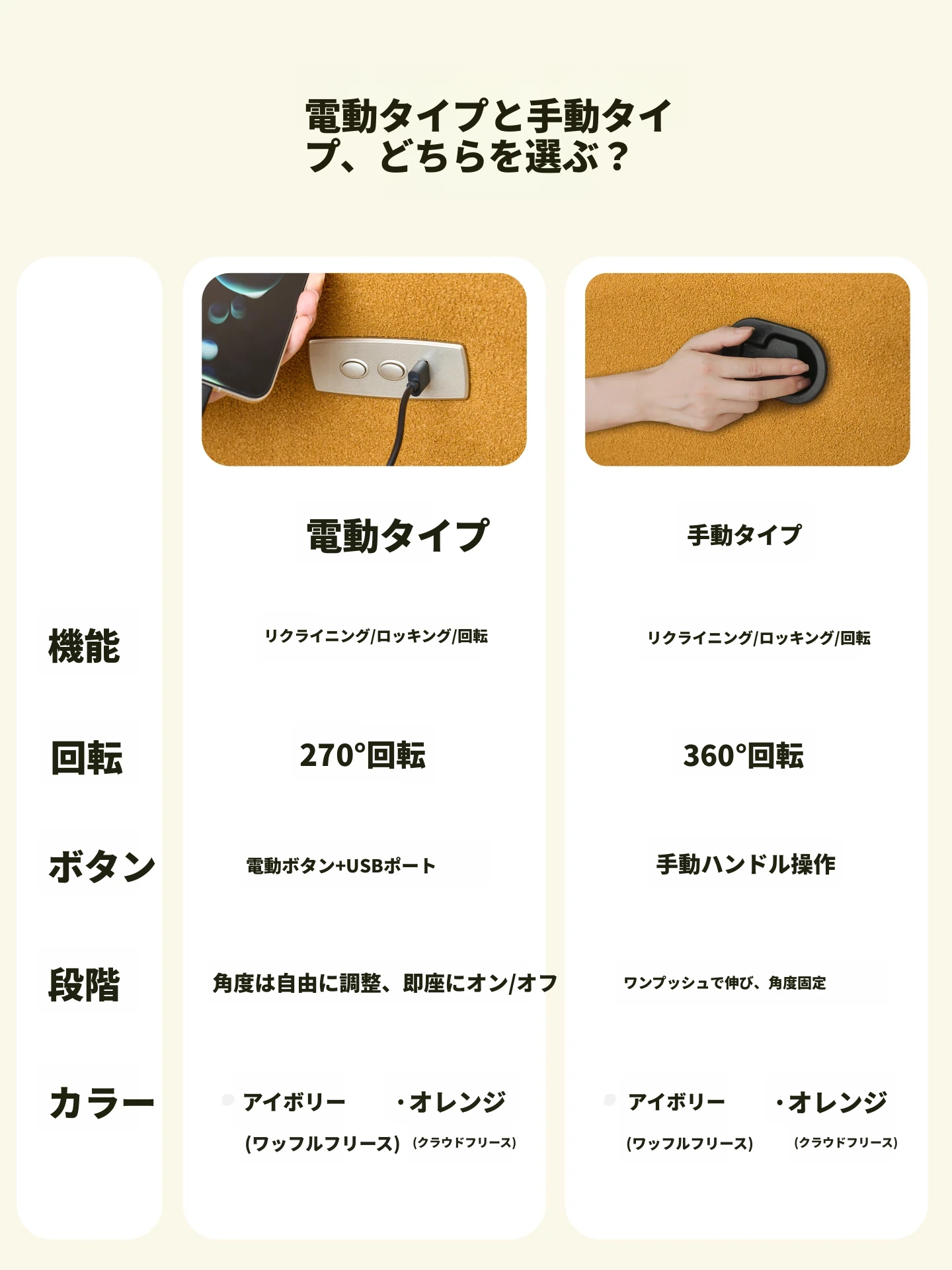 【電動タイプ】電動伸縮+USB+回転+揺れ