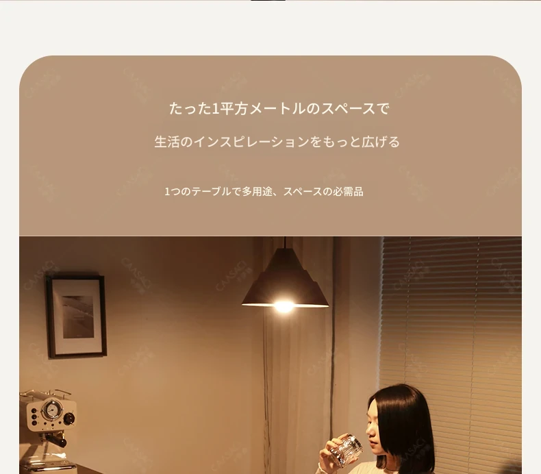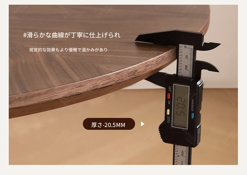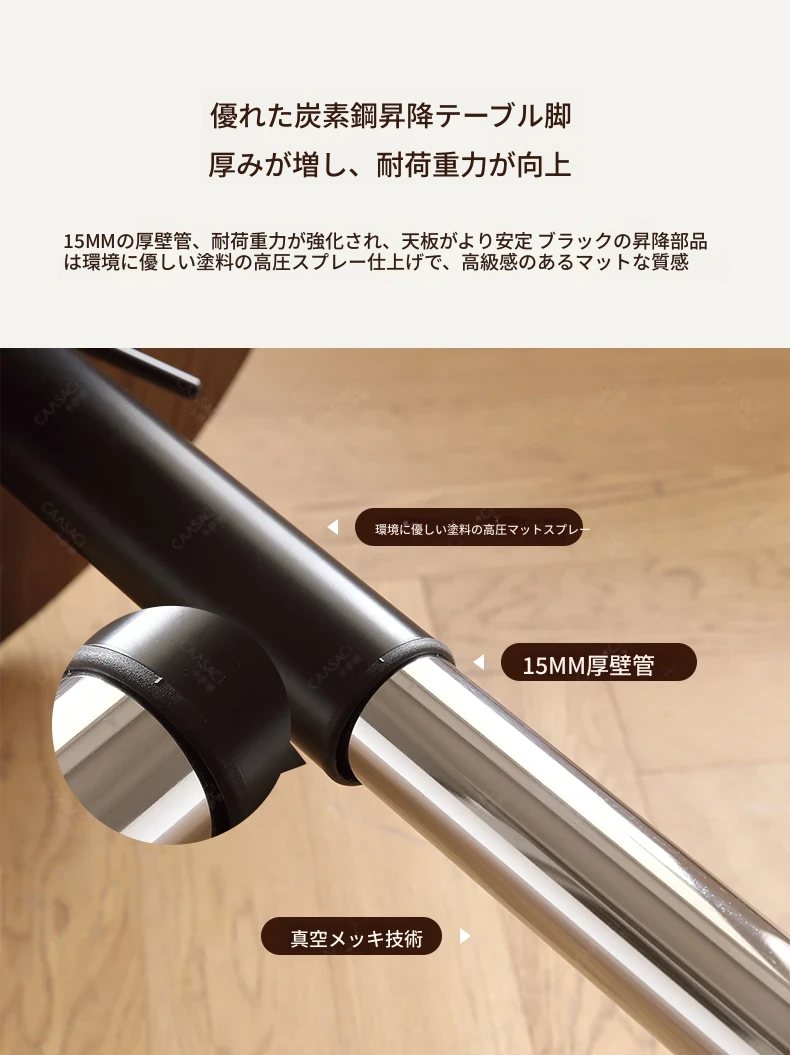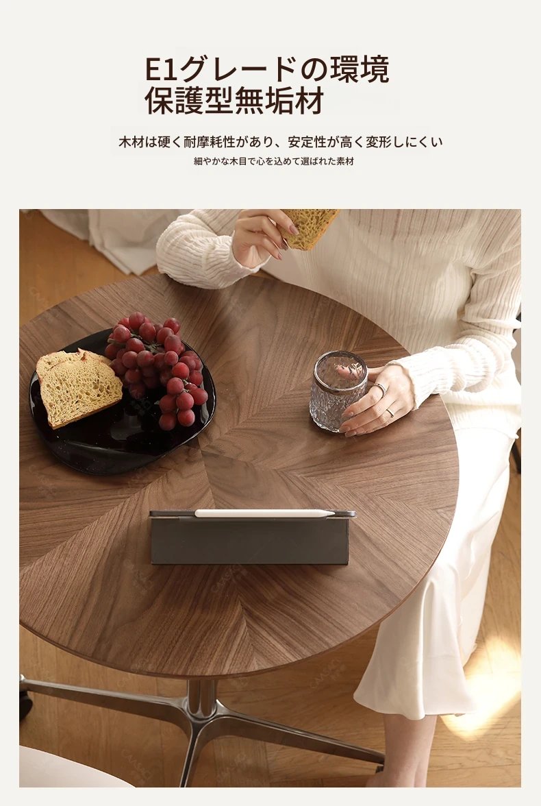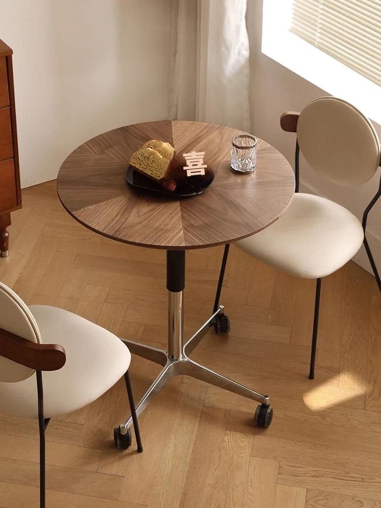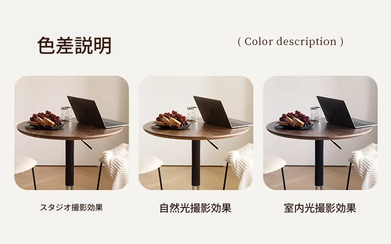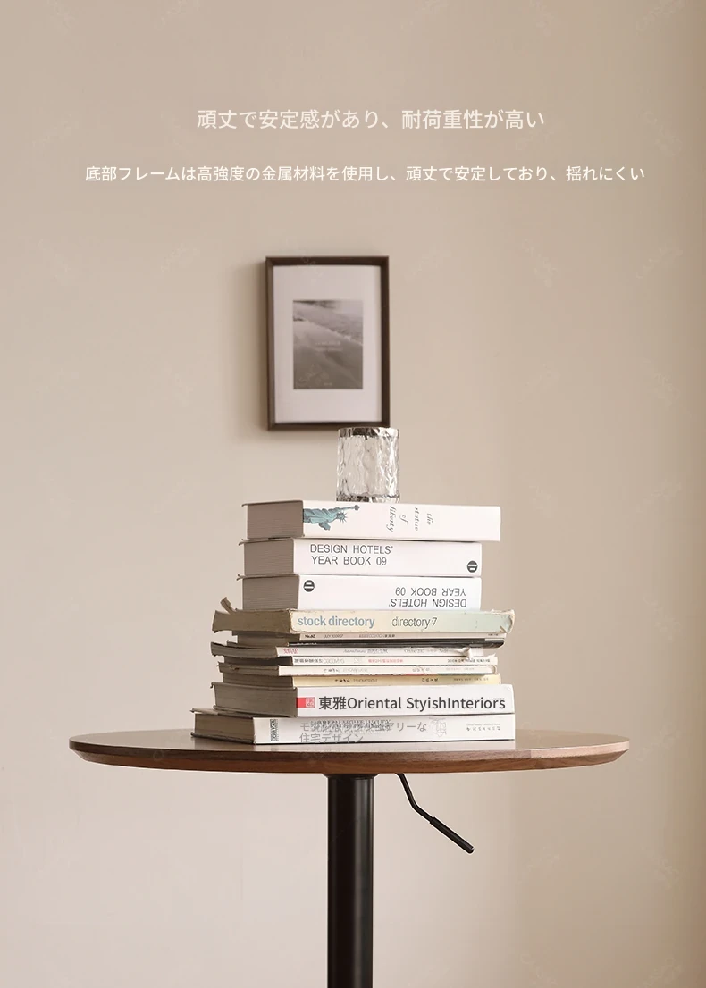 カサチの無垢材昇降テーブル - 北欧スタイルの小型住宅にぴったり!キャスター付きで移動も簡単な丸型サイドテーブル、リビングに華やかさをプラス。
