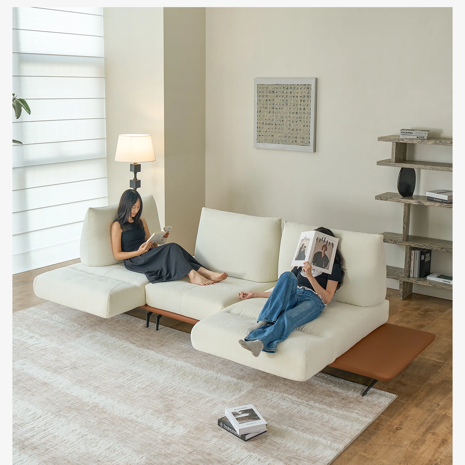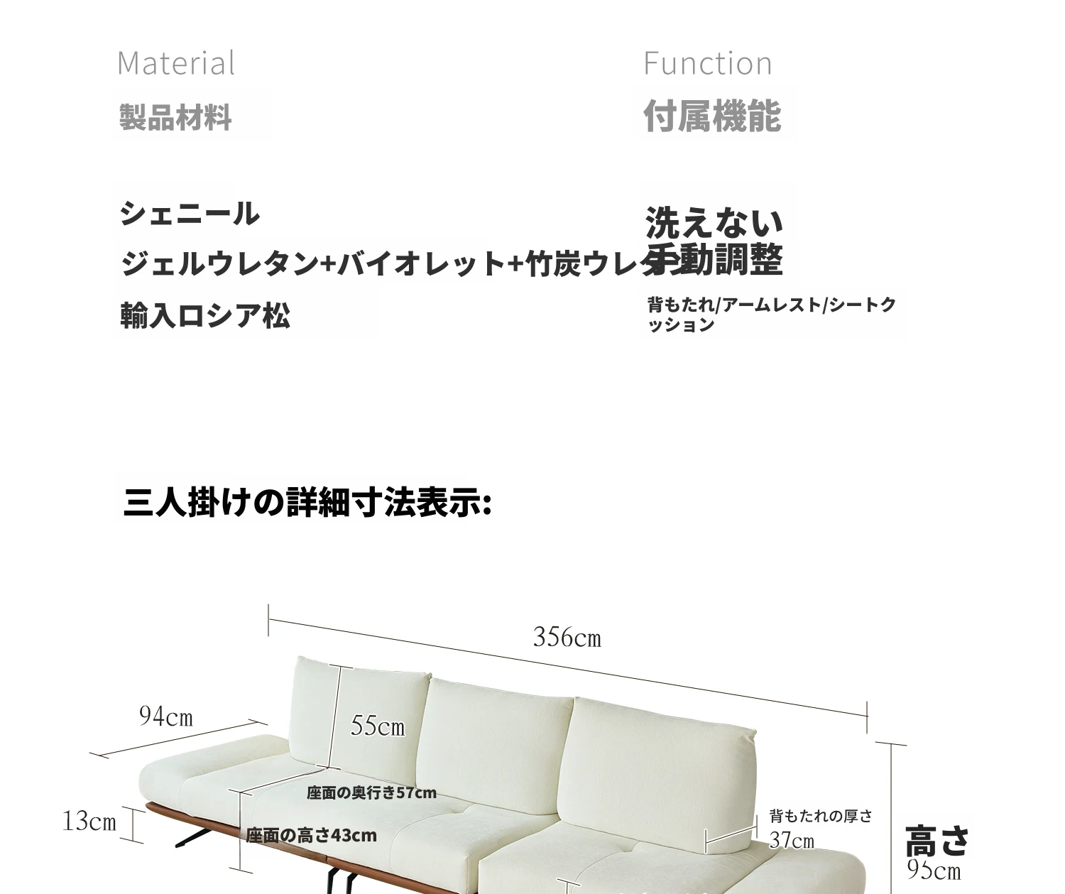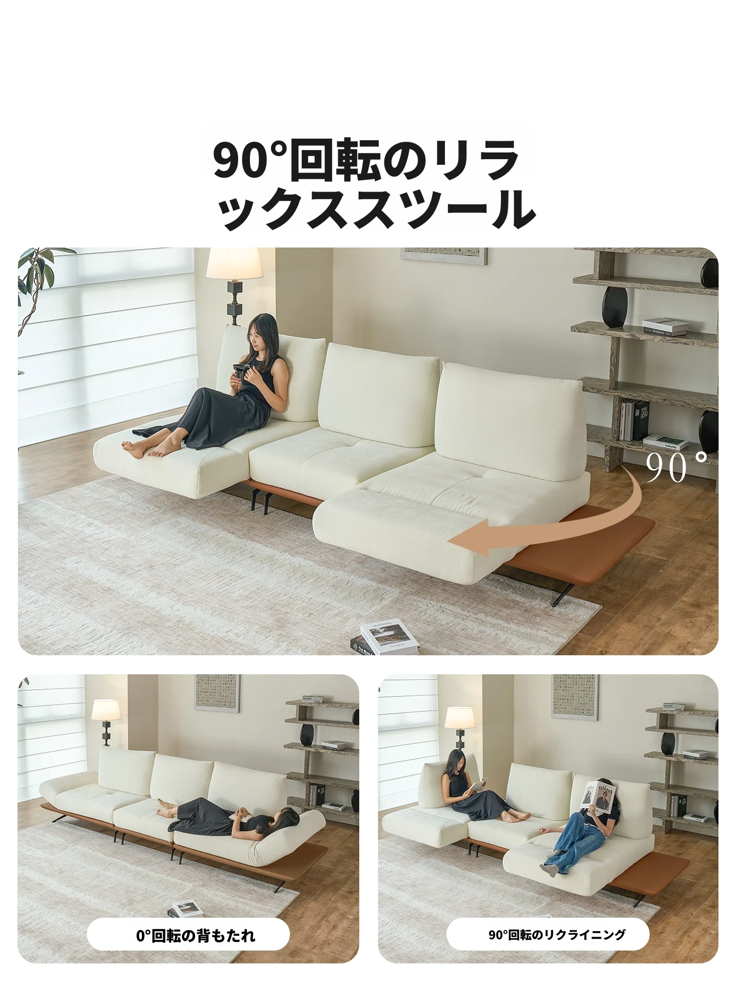 カサーチ 布製ソファ シェニール調整可能 中古クリーム風 スタイリッシュアイランド直排 多機能ソファで、リラックスしたひとときをお楽しみください!