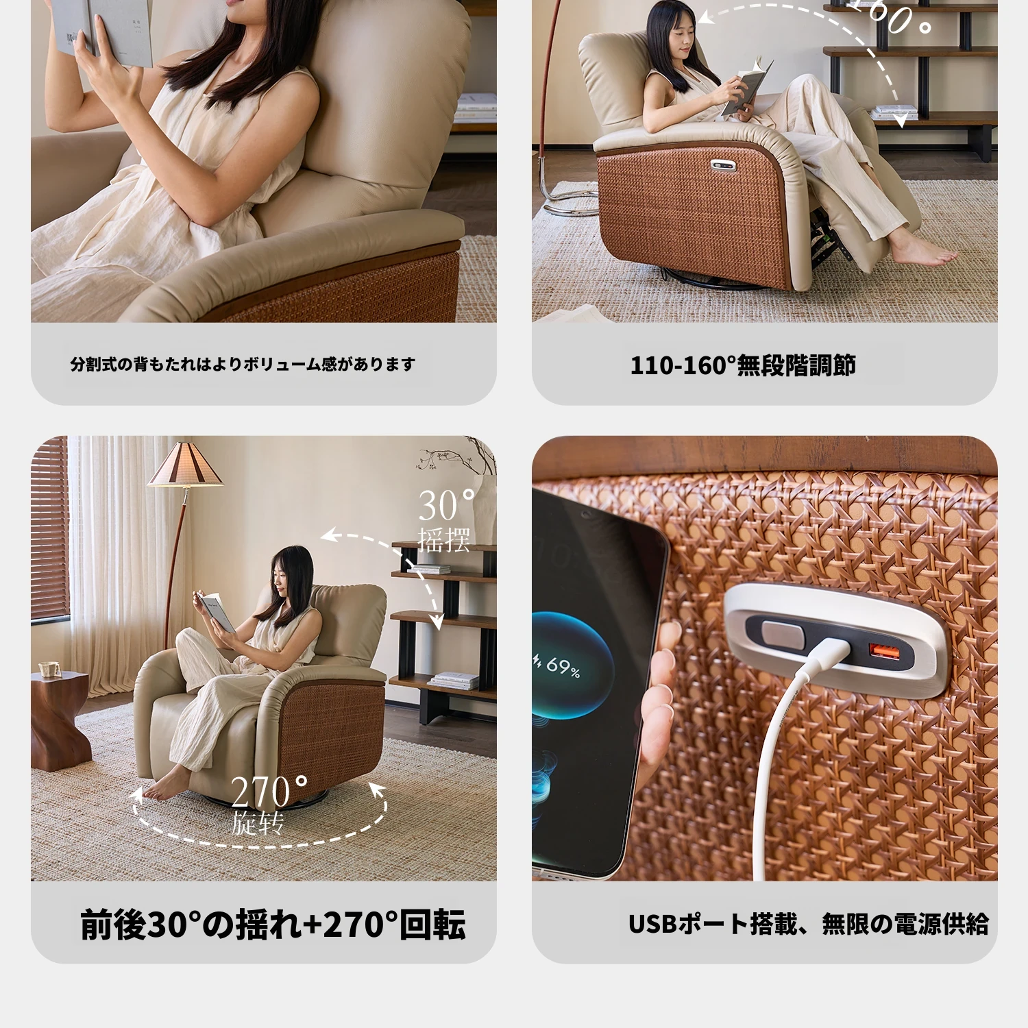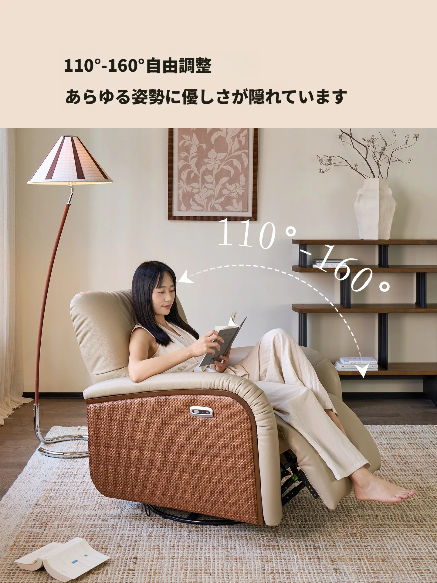 カサチ 高級本革 一人用電動多機能リクライニングチェア ヴィンテージ風 新中式 籐編調 整体調節可能な本革仕様で、くつろぎのひとときをお届けします。