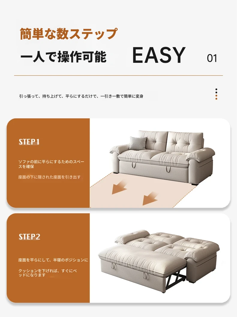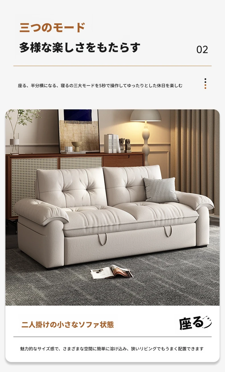 雲のような快適さ!2人用折りたたみソファベッド、洗えるデザインで小さなお部屋にもぴったり。2025年新モデルの多機能ソファベッド、シングルとしてもお使いいただけます!