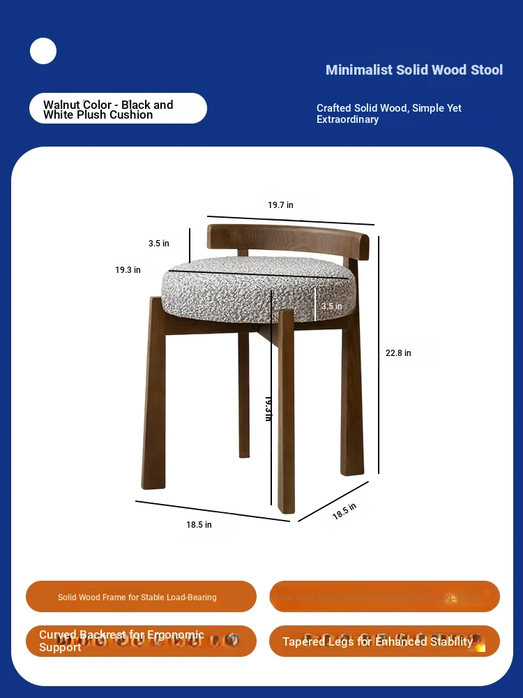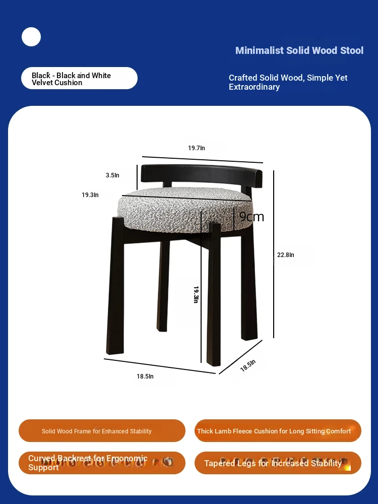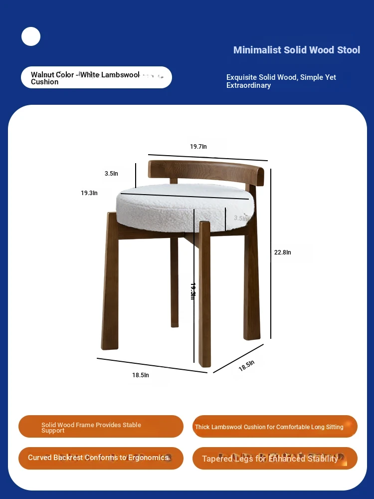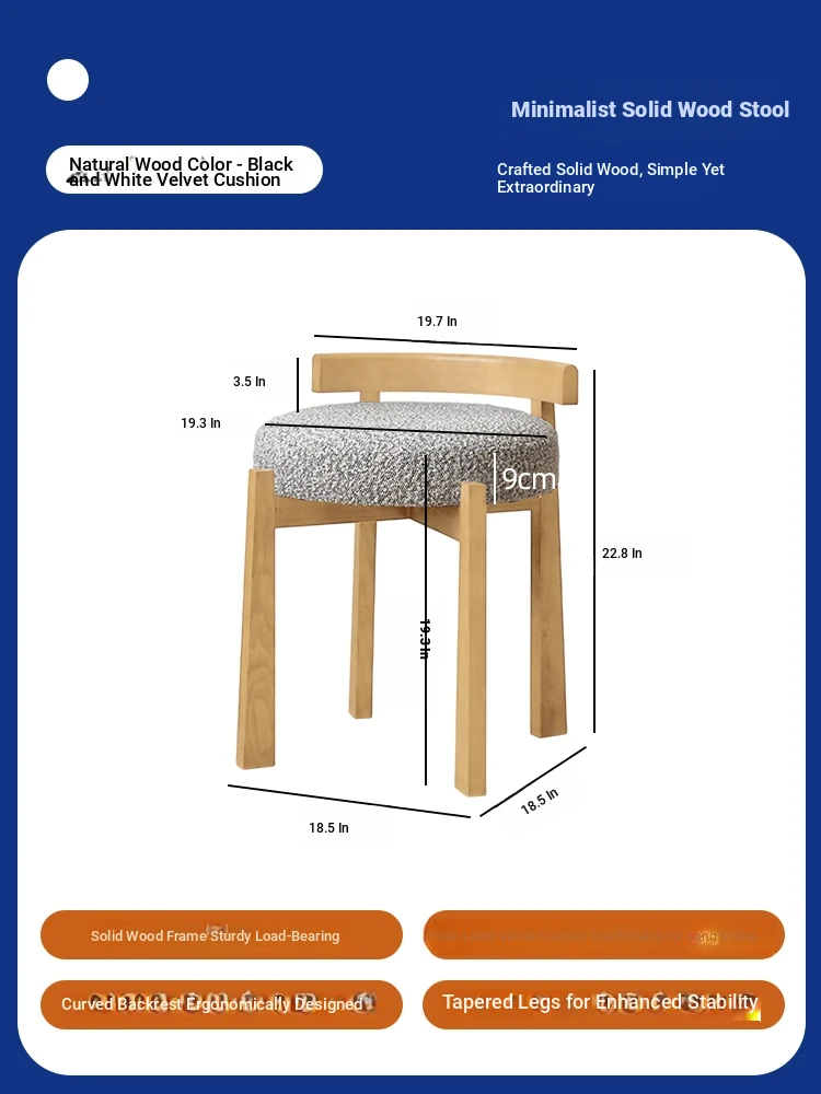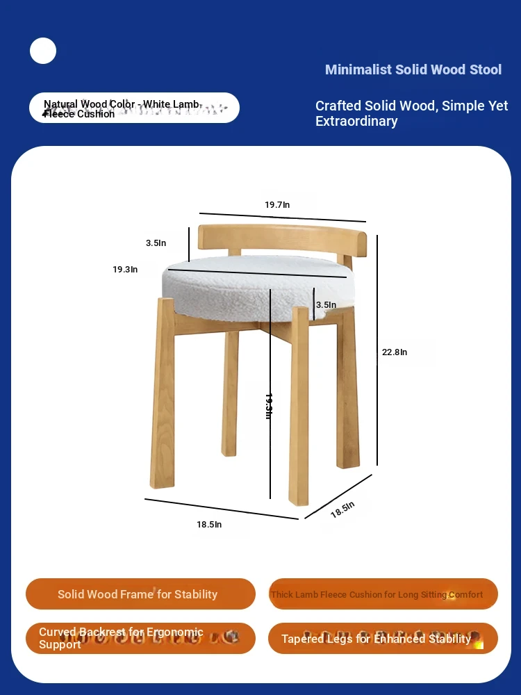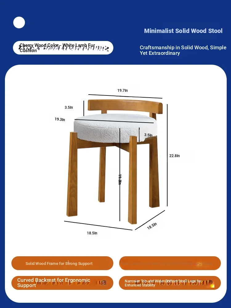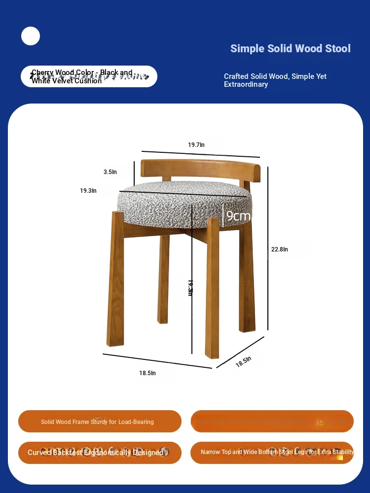 Eisenlante Solid Wood Vintage Makeup Stool – Space-Saving Round Vanity Chair with Soft Cushion for Girls' Bedrooms – Perfect for Nail Art and Makeup!