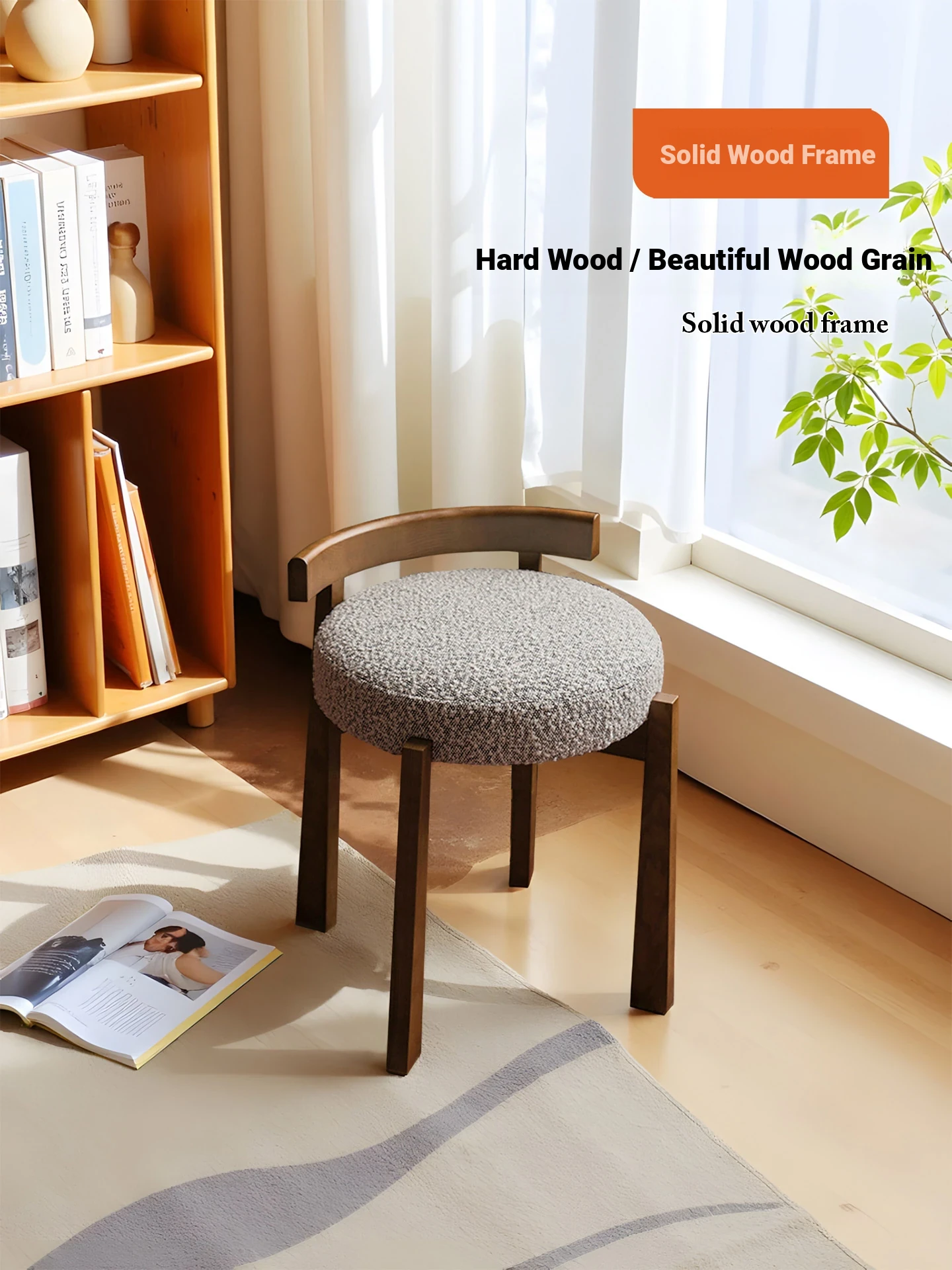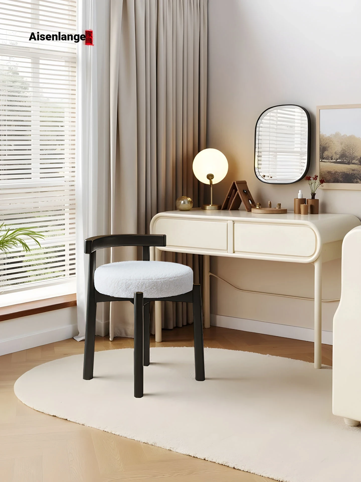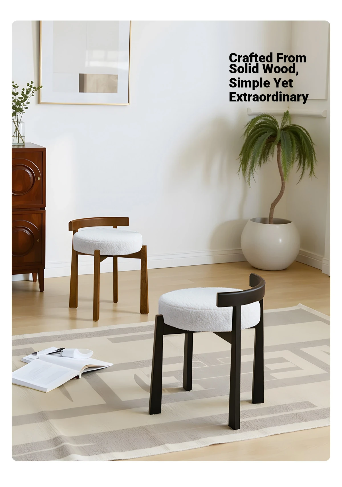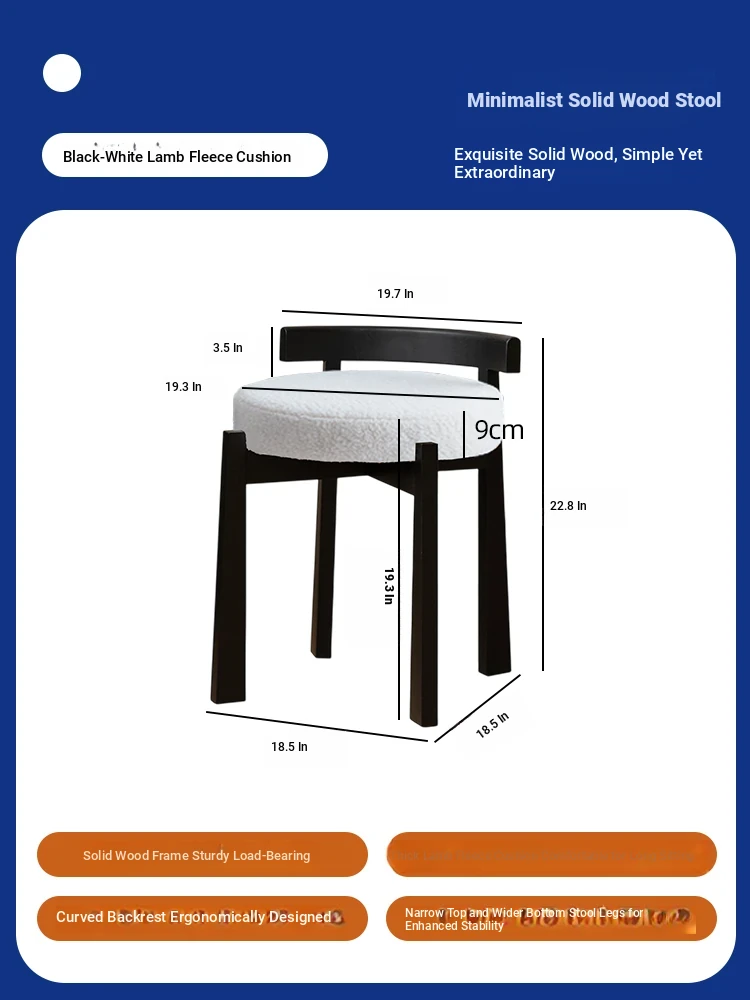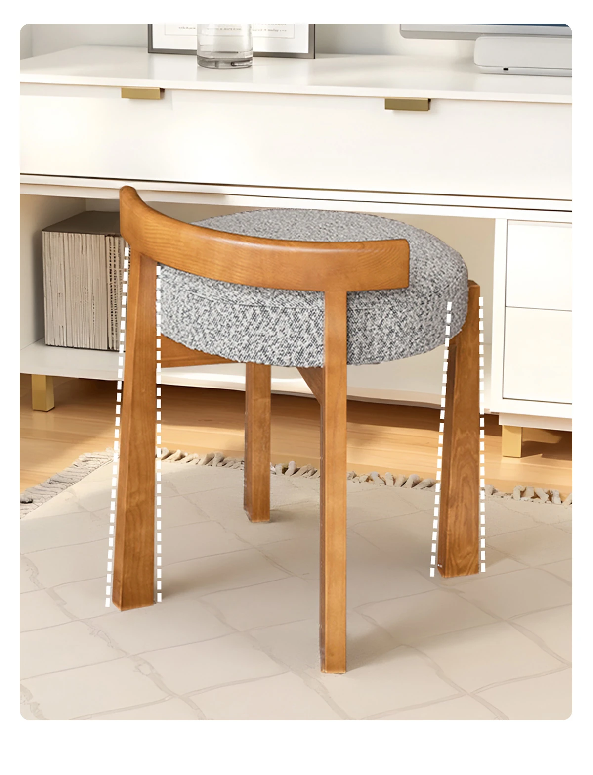 Eisenlante Solid Wood Vintage Makeup Stool – Space-Saving Round Vanity Chair with Soft Cushion for Girls' Bedrooms – Perfect for Nail Art and Makeup!