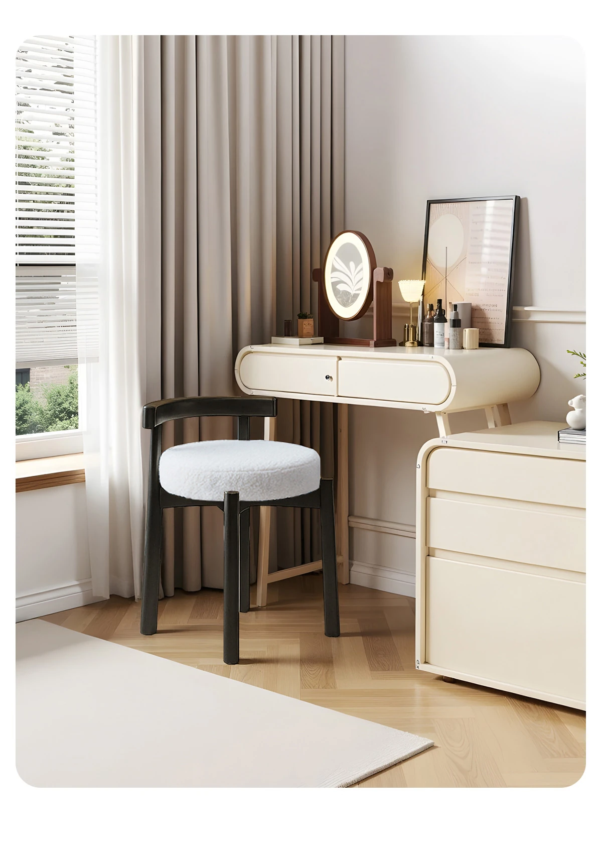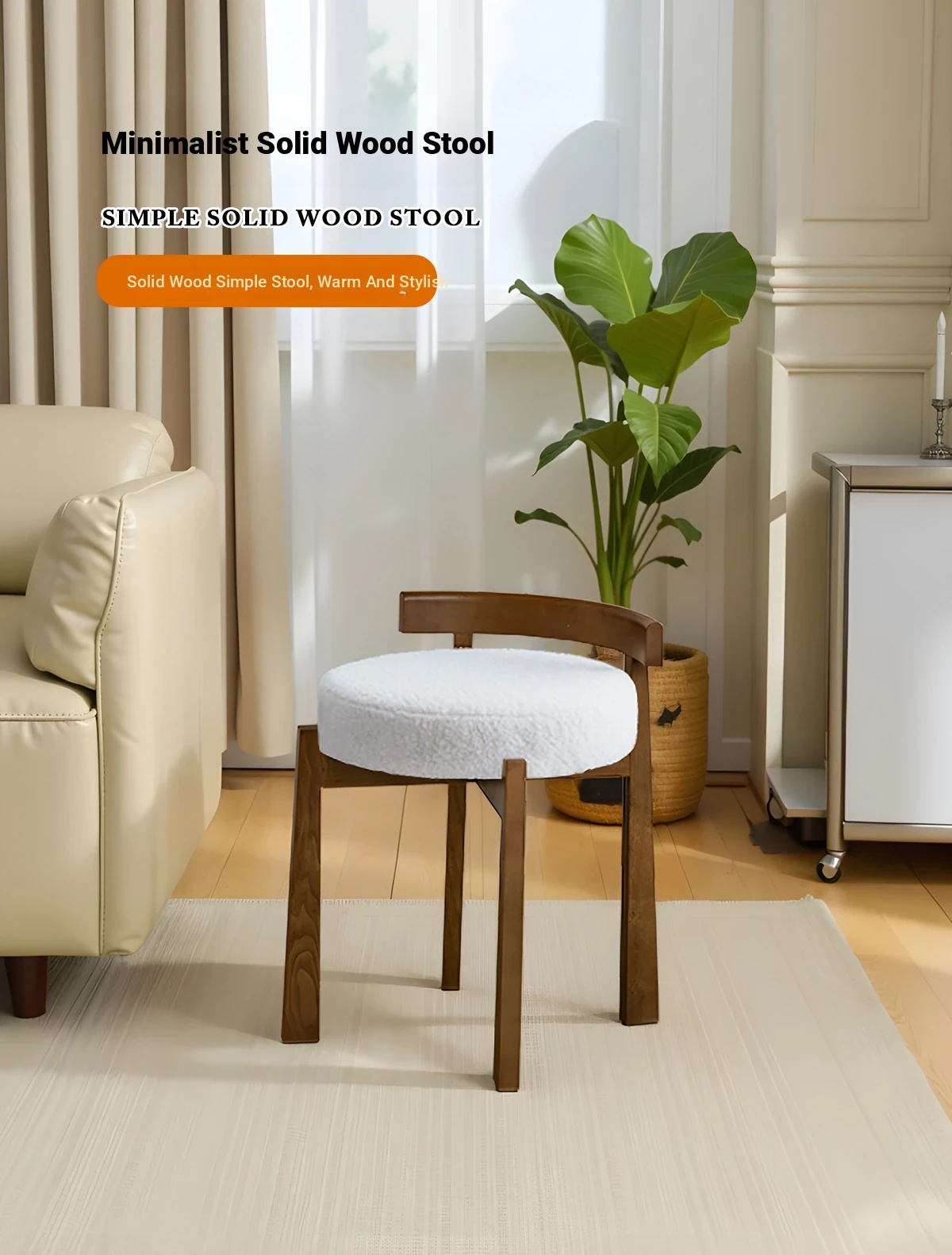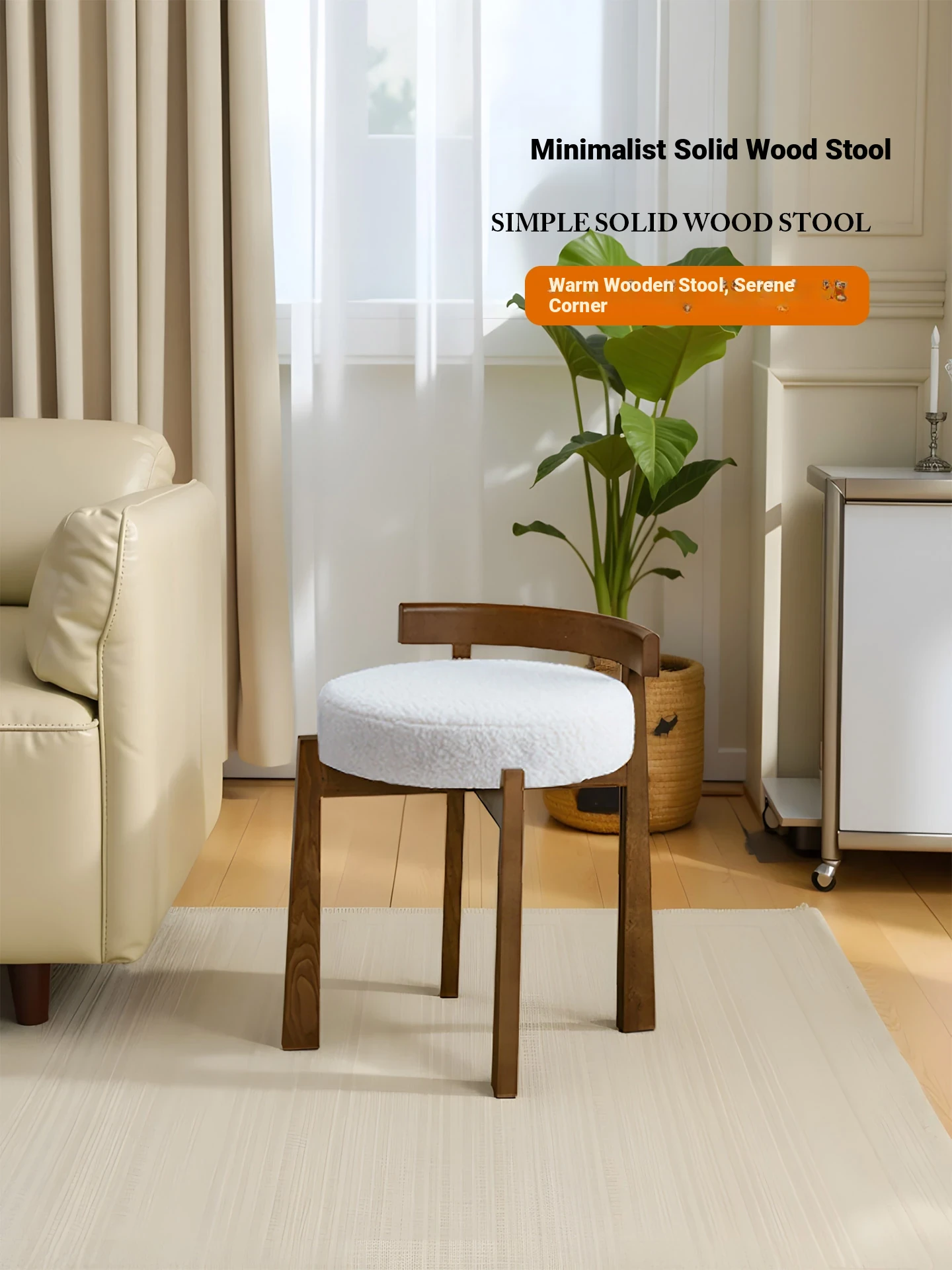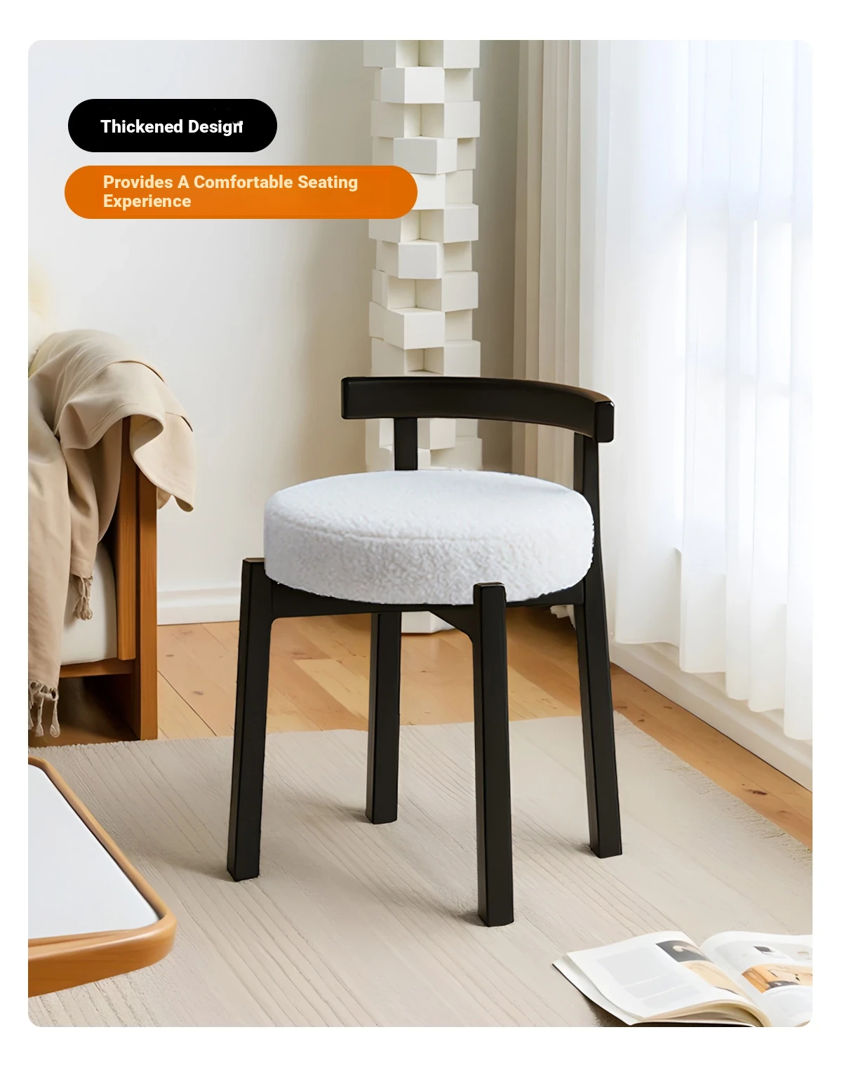 Eisenlante Solid Wood Vintage Makeup Stool – Space-Saving Round Vanity Chair with Soft Cushion for Girls' Bedrooms – Perfect for Nail Art and Makeup!