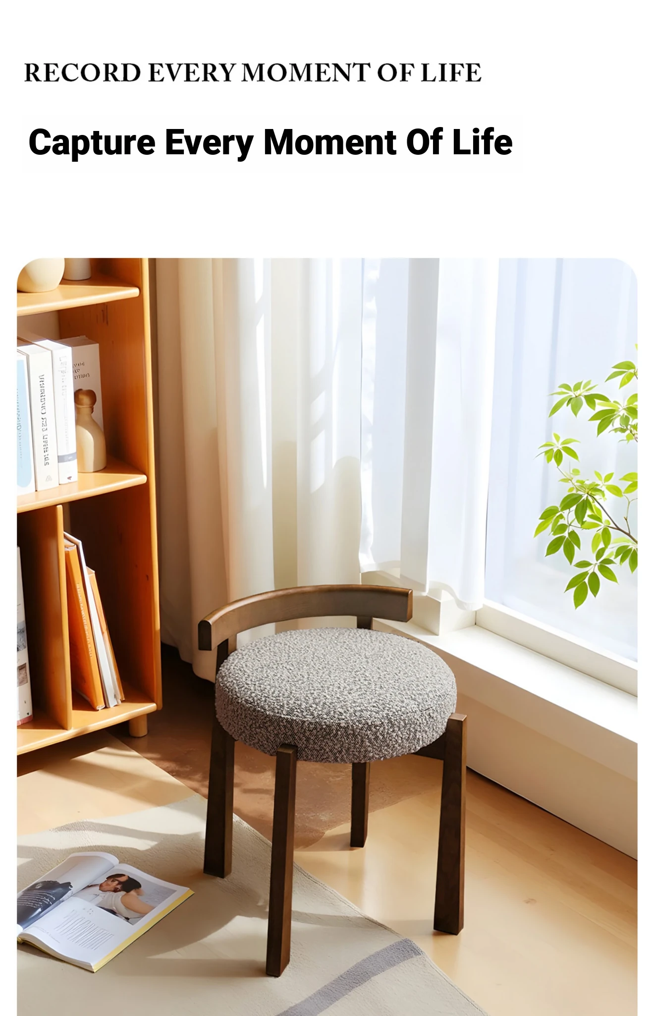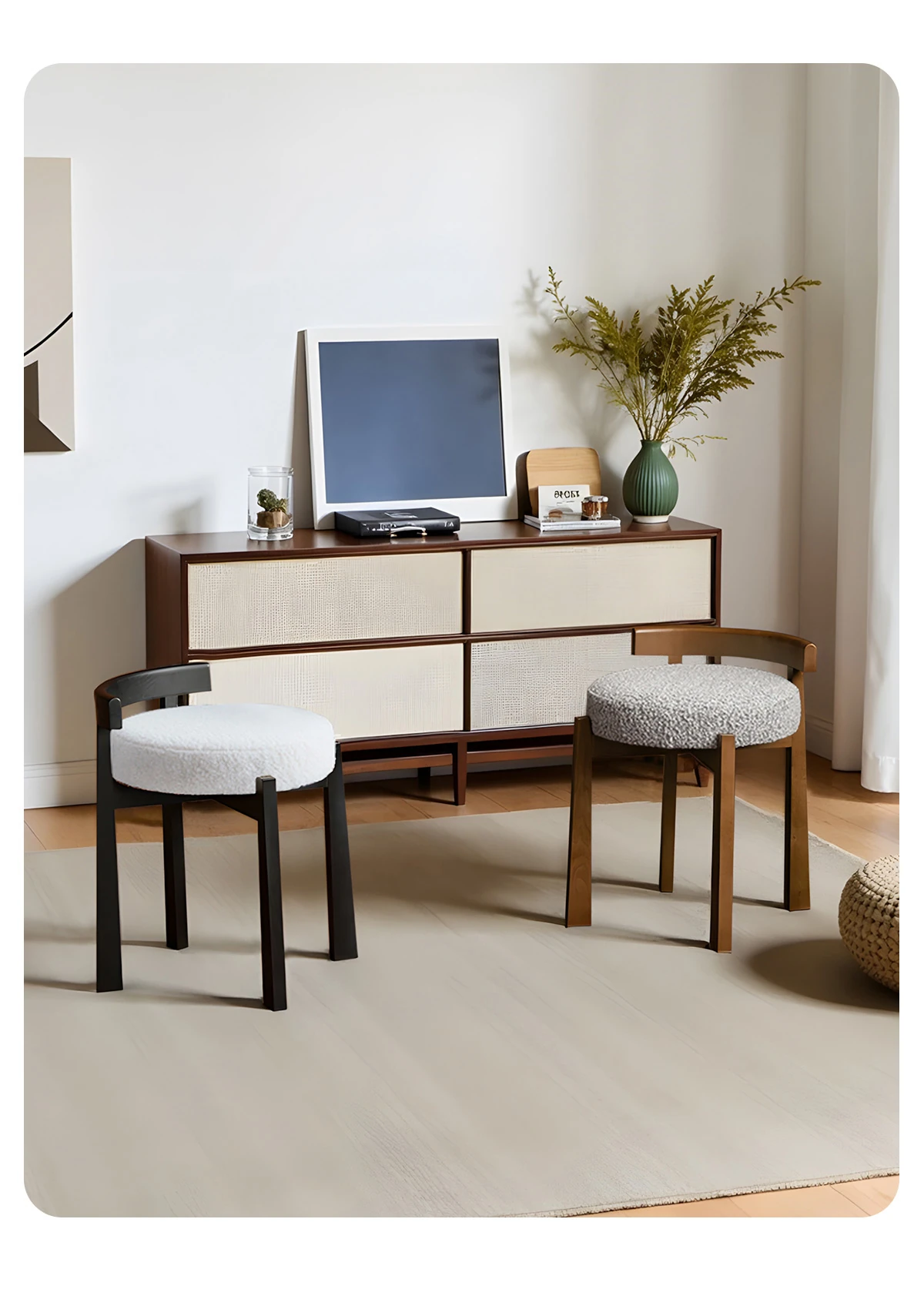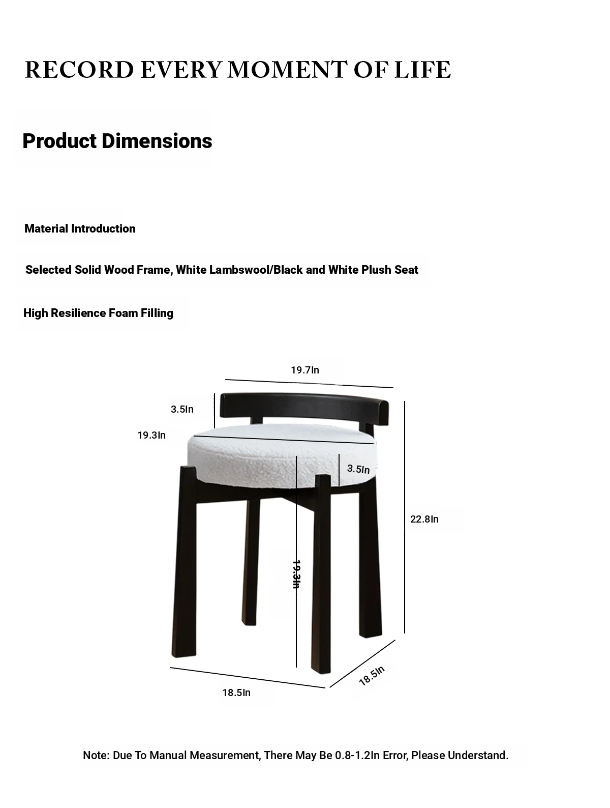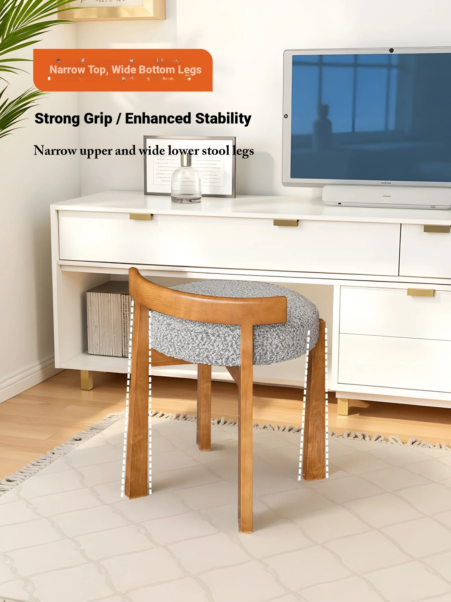 Eisenlante Solid Wood Vintage Makeup Stool – Space-Saving Round Vanity Chair with Soft Cushion for Girls' Bedrooms – Perfect for Nail Art and Makeup!