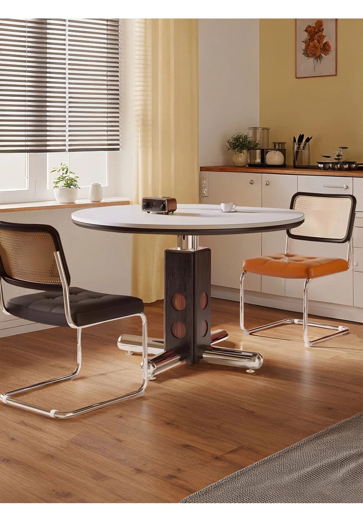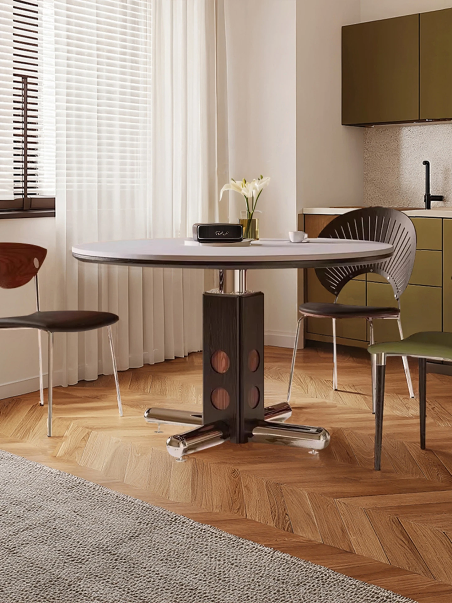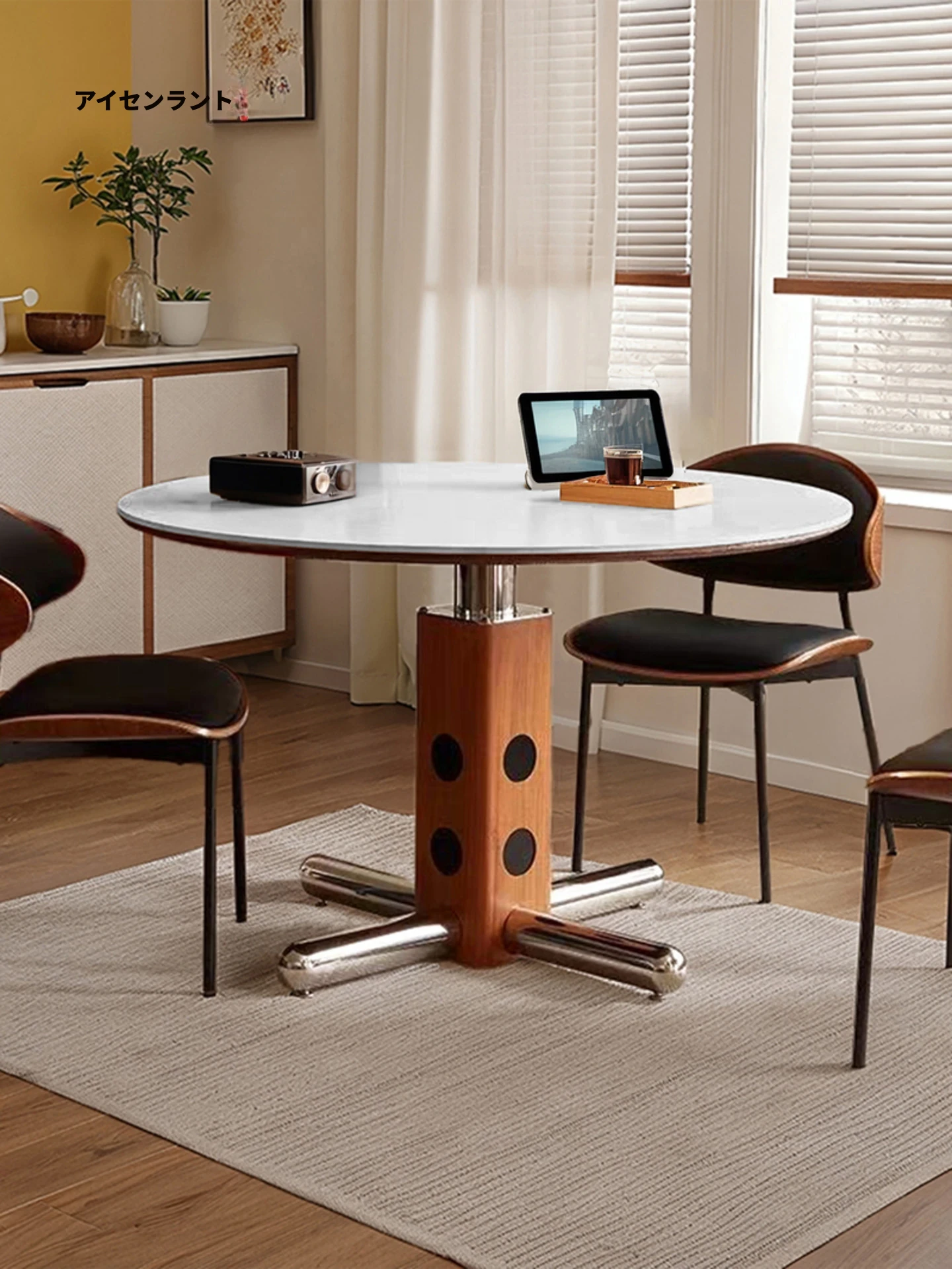 アイセンラント フレンチクリーム ストーンテーブル 家庭用 丸型ステンレス 中古デザイン バウハウススタイル サークルテーブル - 高級感あふれるデザインで、食卓を華やかに演出。おしゃれな空間を演出する一品!