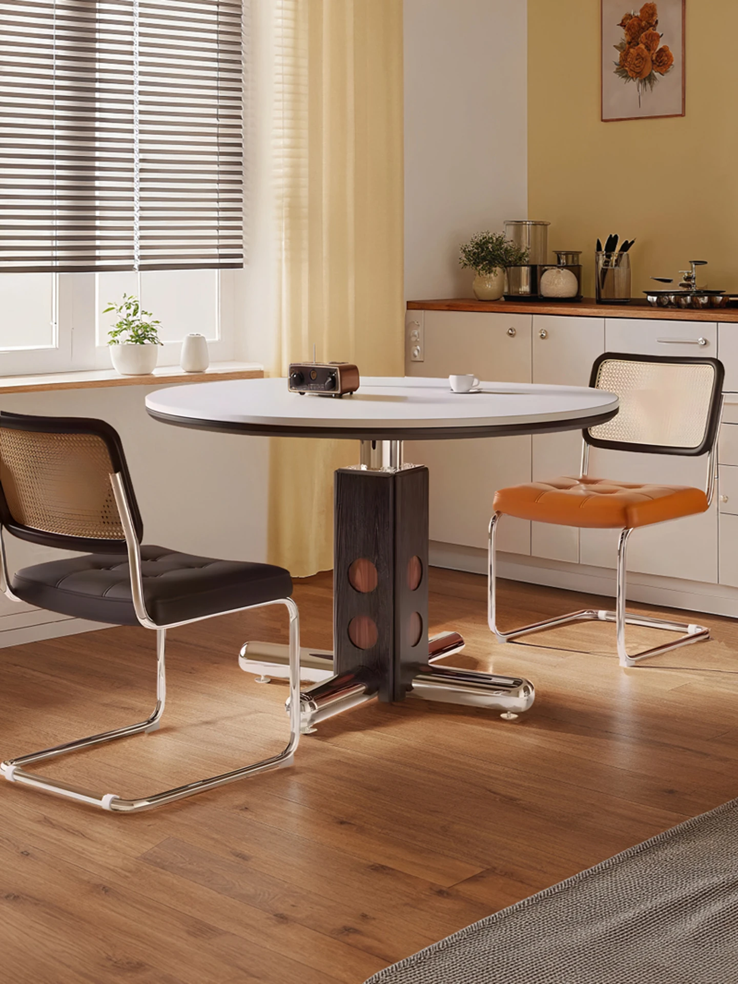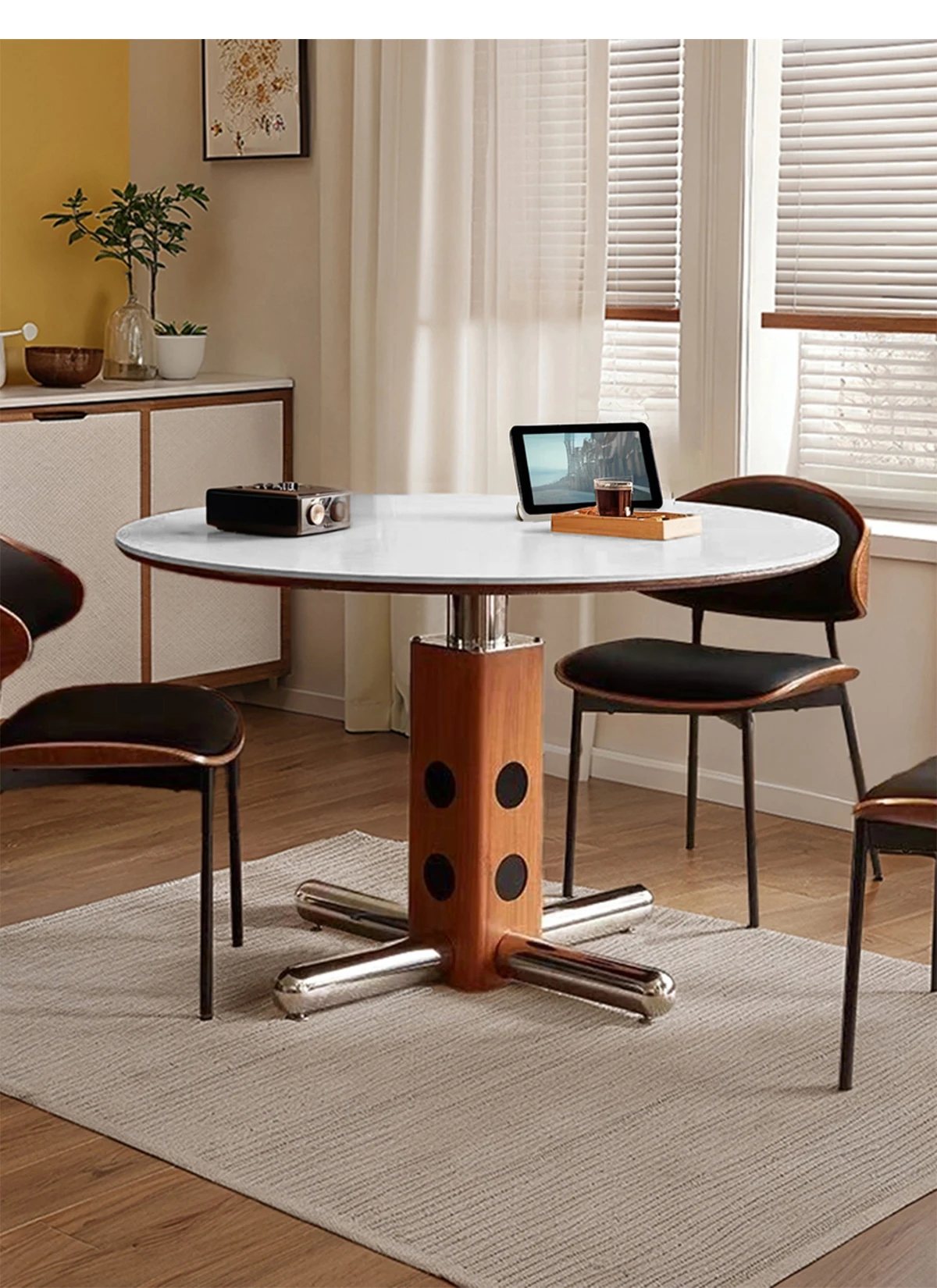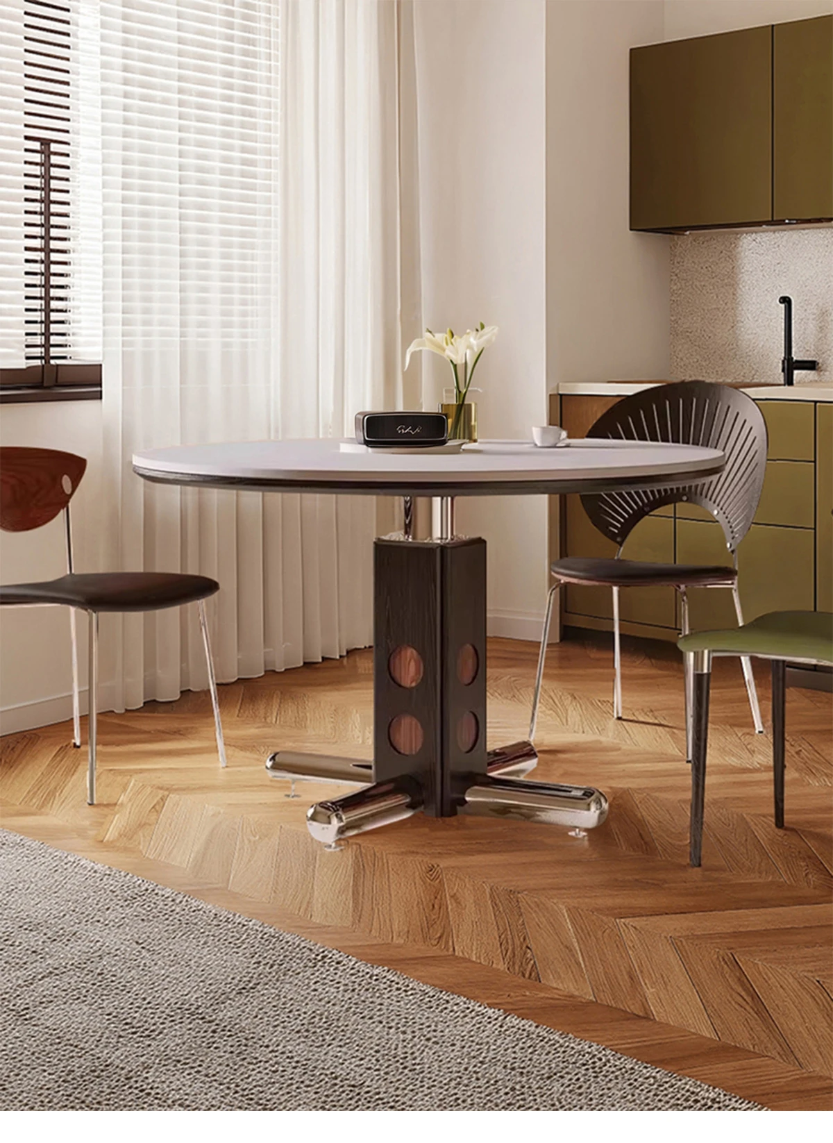 アイセンラント フレンチクリーム ストーンテーブル 家庭用 丸型ステンレス 中古デザイン バウハウススタイル サークルテーブル - 高級感あふれるデザインで、食卓を華やかに演出。おしゃれな空間を演出する一品!