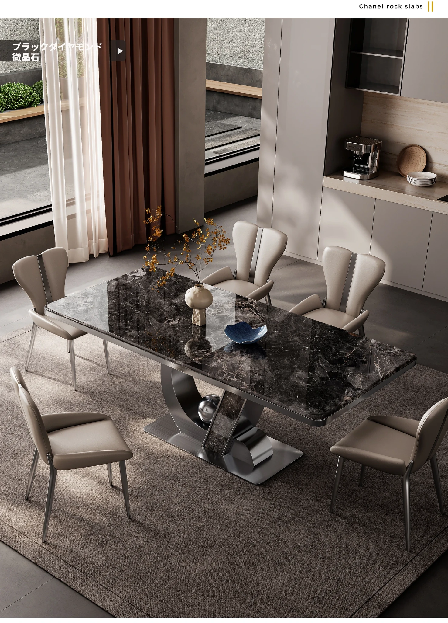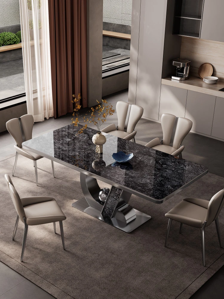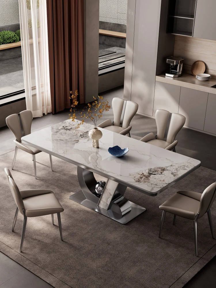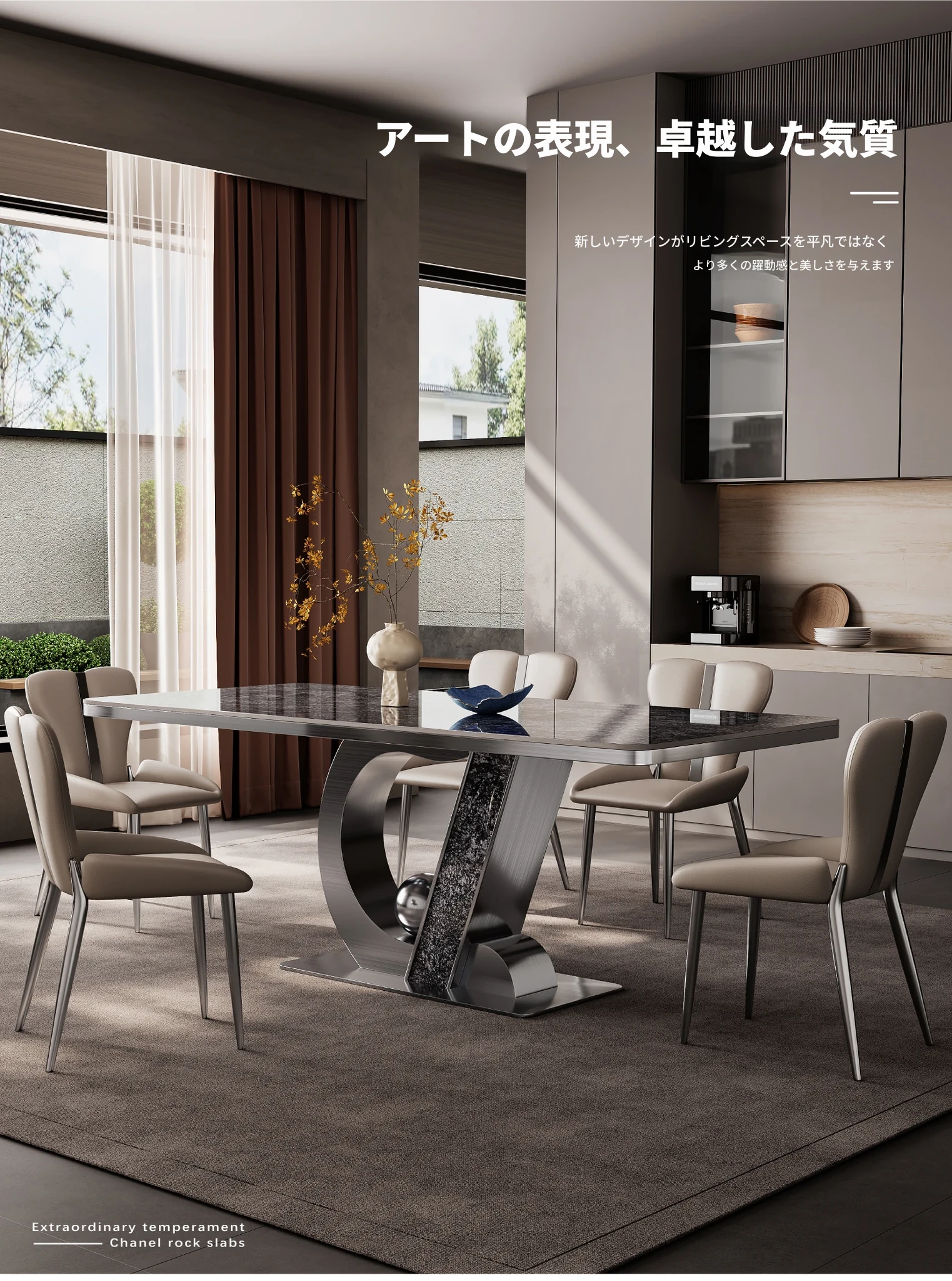 洗練されたデザインの軽奢岩板ダイニングテーブル!モダンでシンプルなスタイル、小さなリビングにぴったりな長方形の高級感溢れる食卓セット。家族や友人との特別なひとときを演出します。
