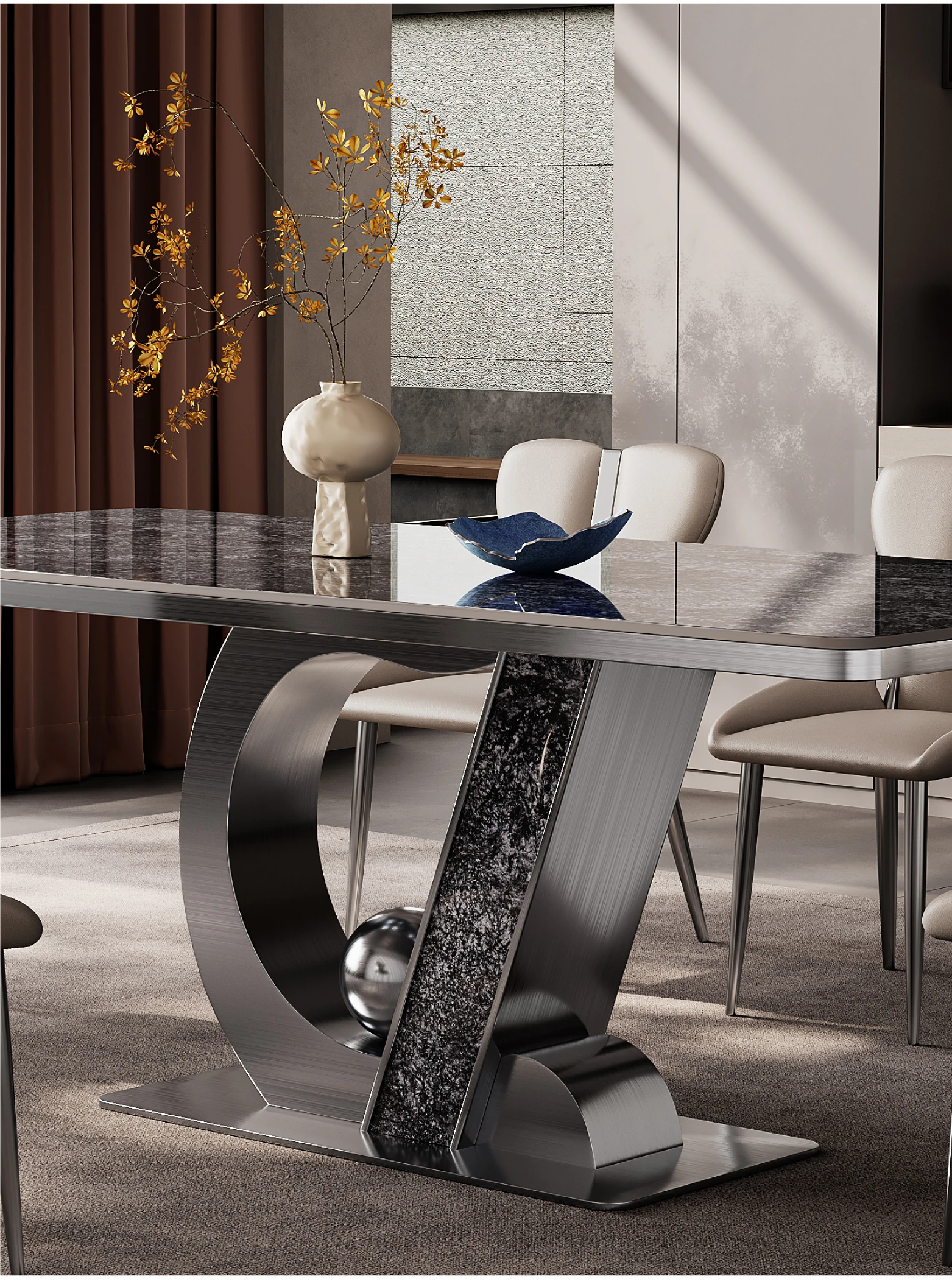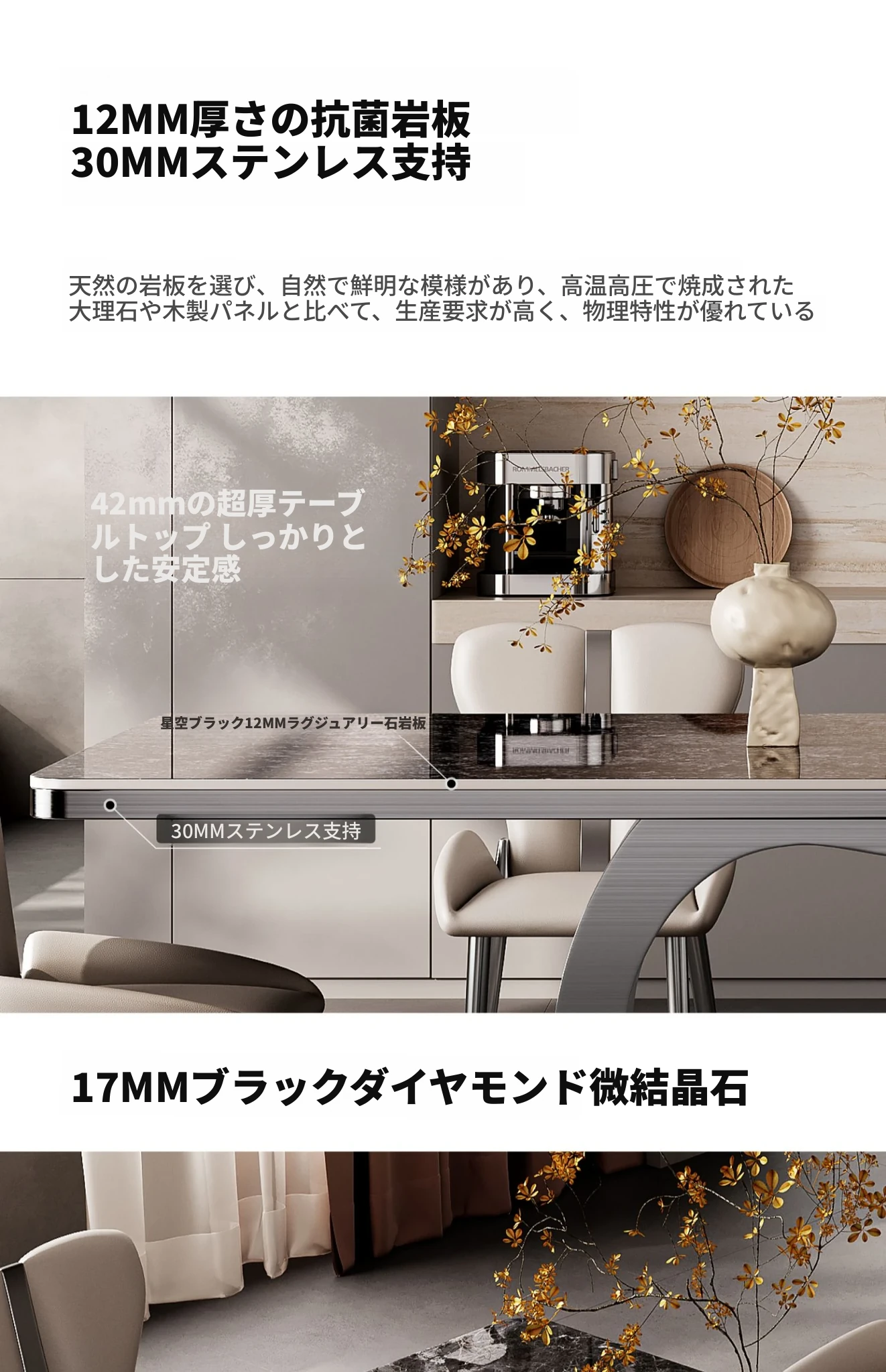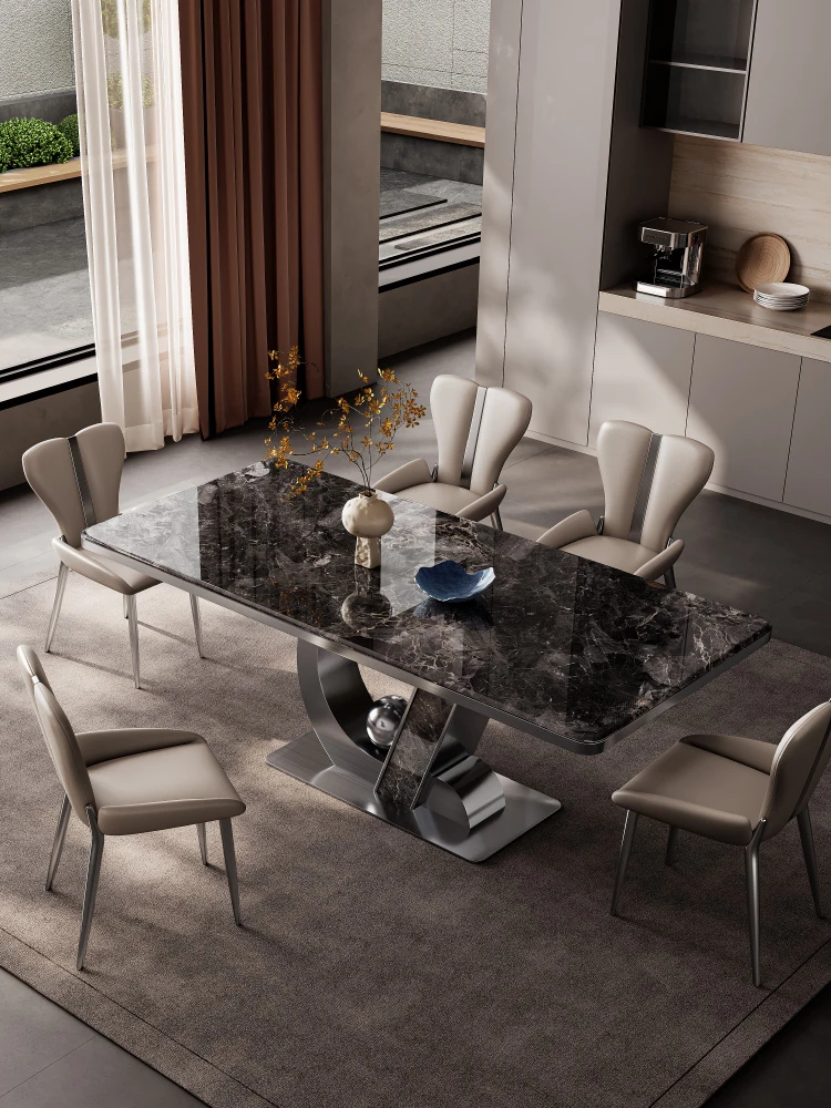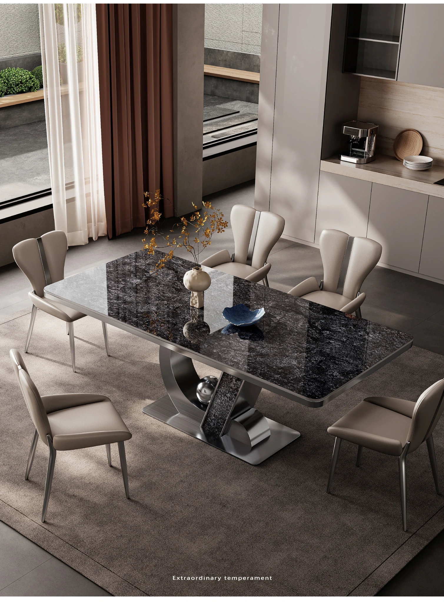洗練されたデザインの軽奢岩板ダイニングテーブル!モダンでシンプルなスタイル、小さなリビングにぴったりな長方形の高級感溢れる食卓セット。家族や友人との特別なひとときを演出します。