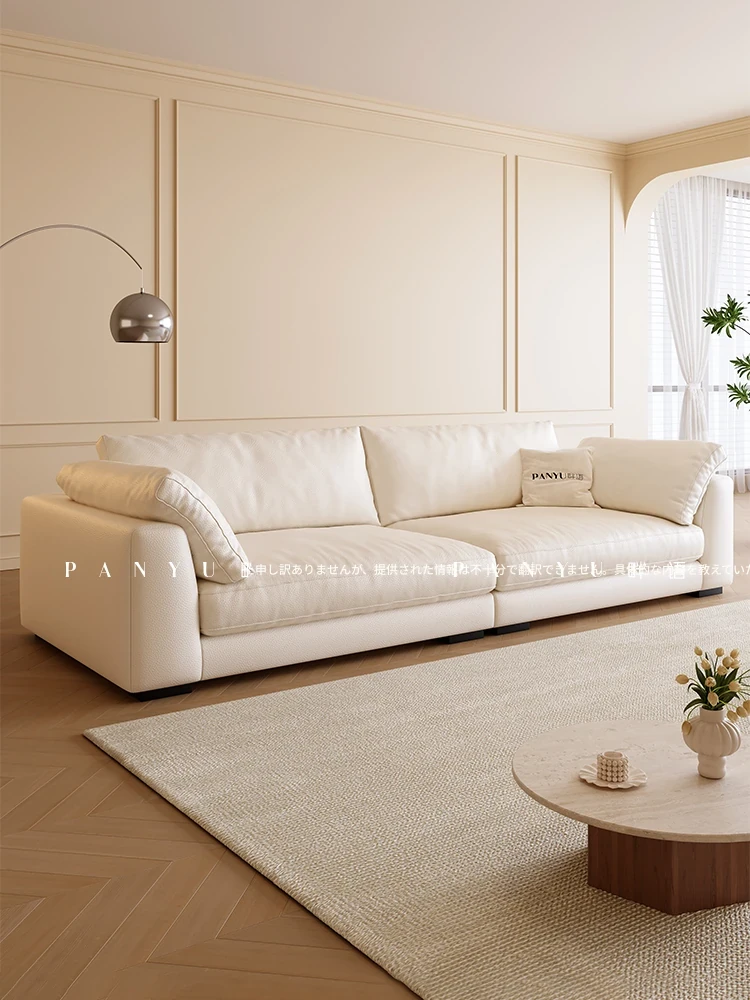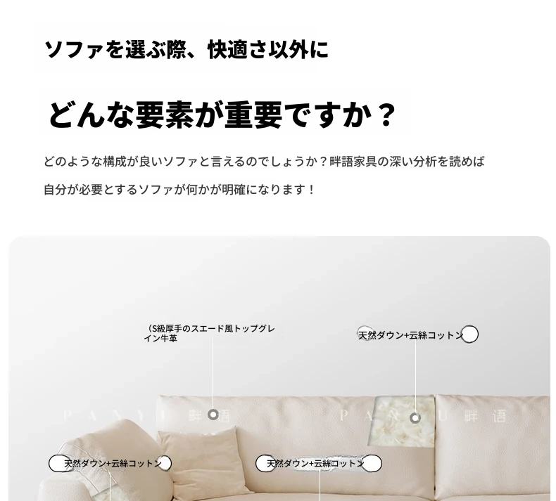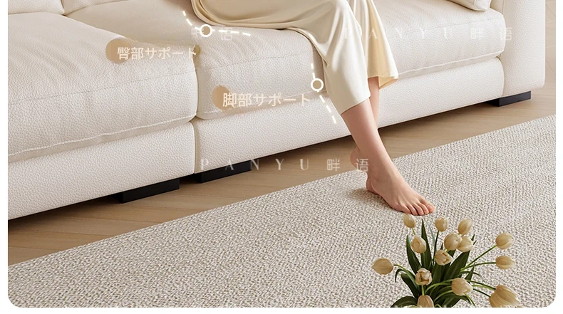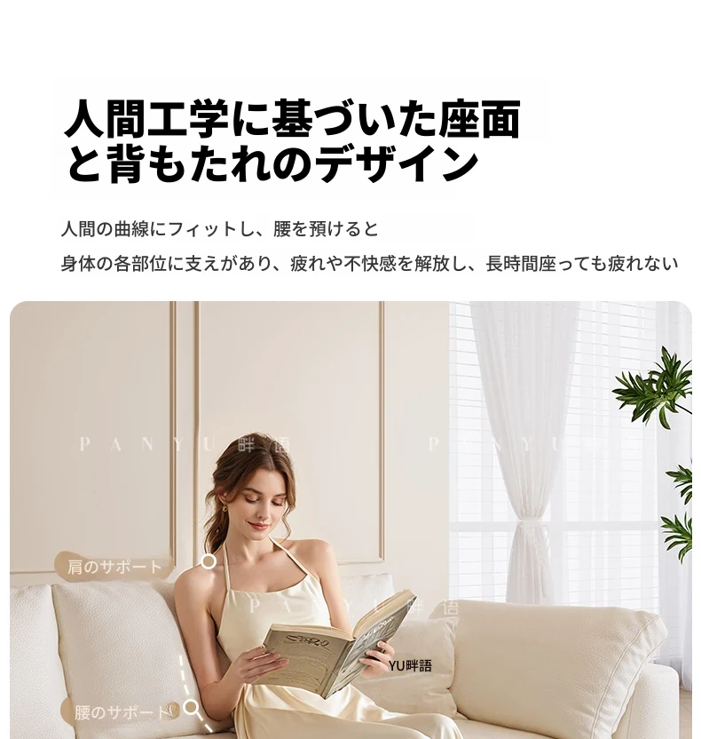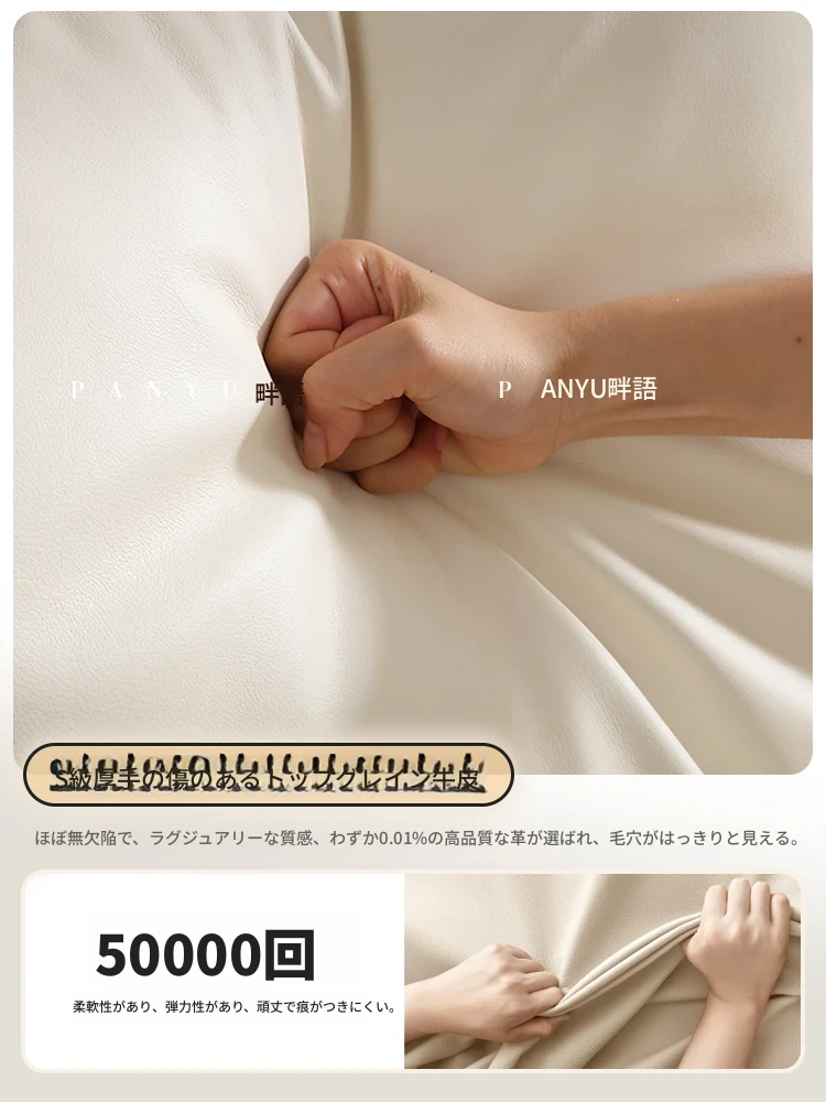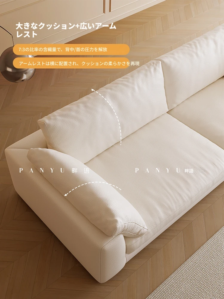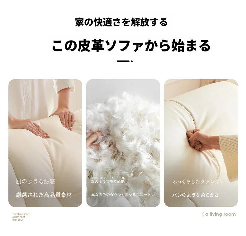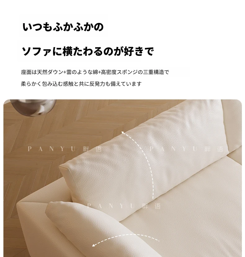 畔語ライヒン本革クリーム色ソファ - 小型リビングに最適なシンプルなホワイトレザー、一流の牛革使用、スタイリッシュなデザインで快適な空間を演出!