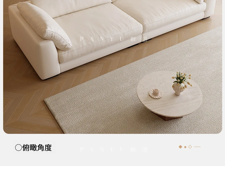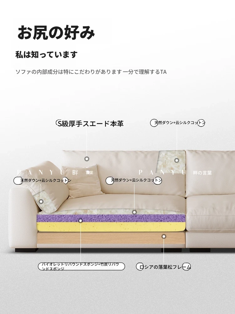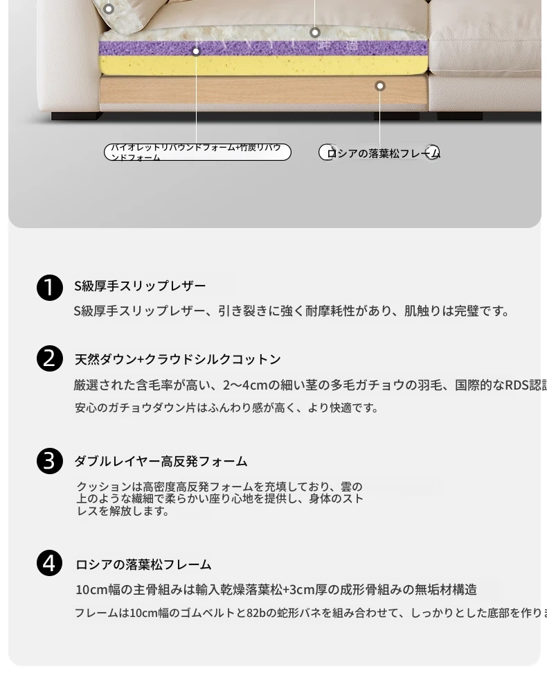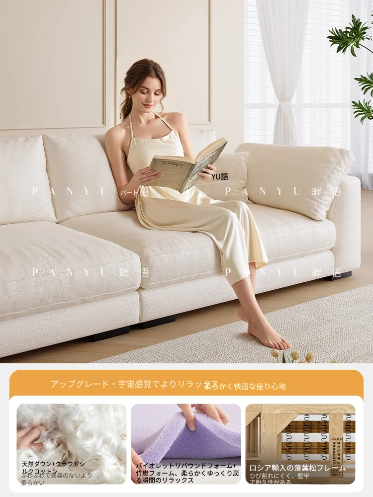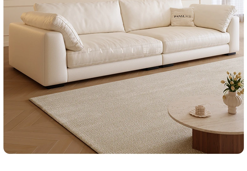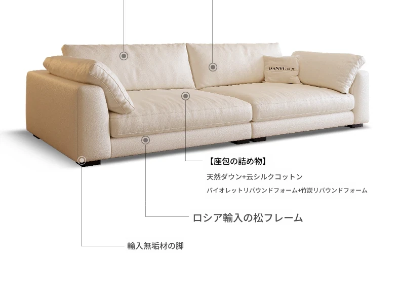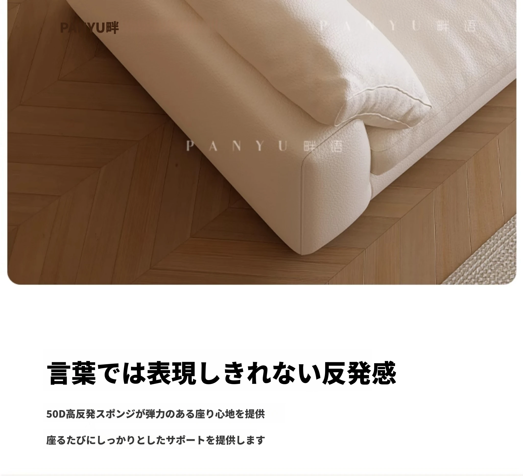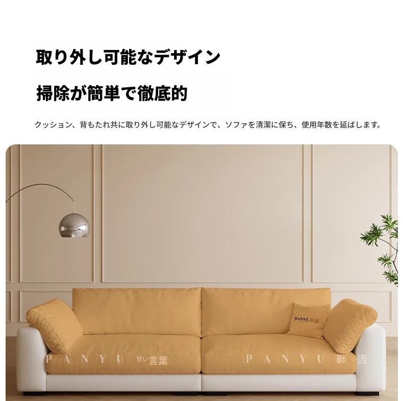 畔語ライヒン本革クリーム色ソファ - 小型リビングに最適なシンプルなホワイトレザー、一流の牛革使用、スタイリッシュなデザインで快適な空間を演出!