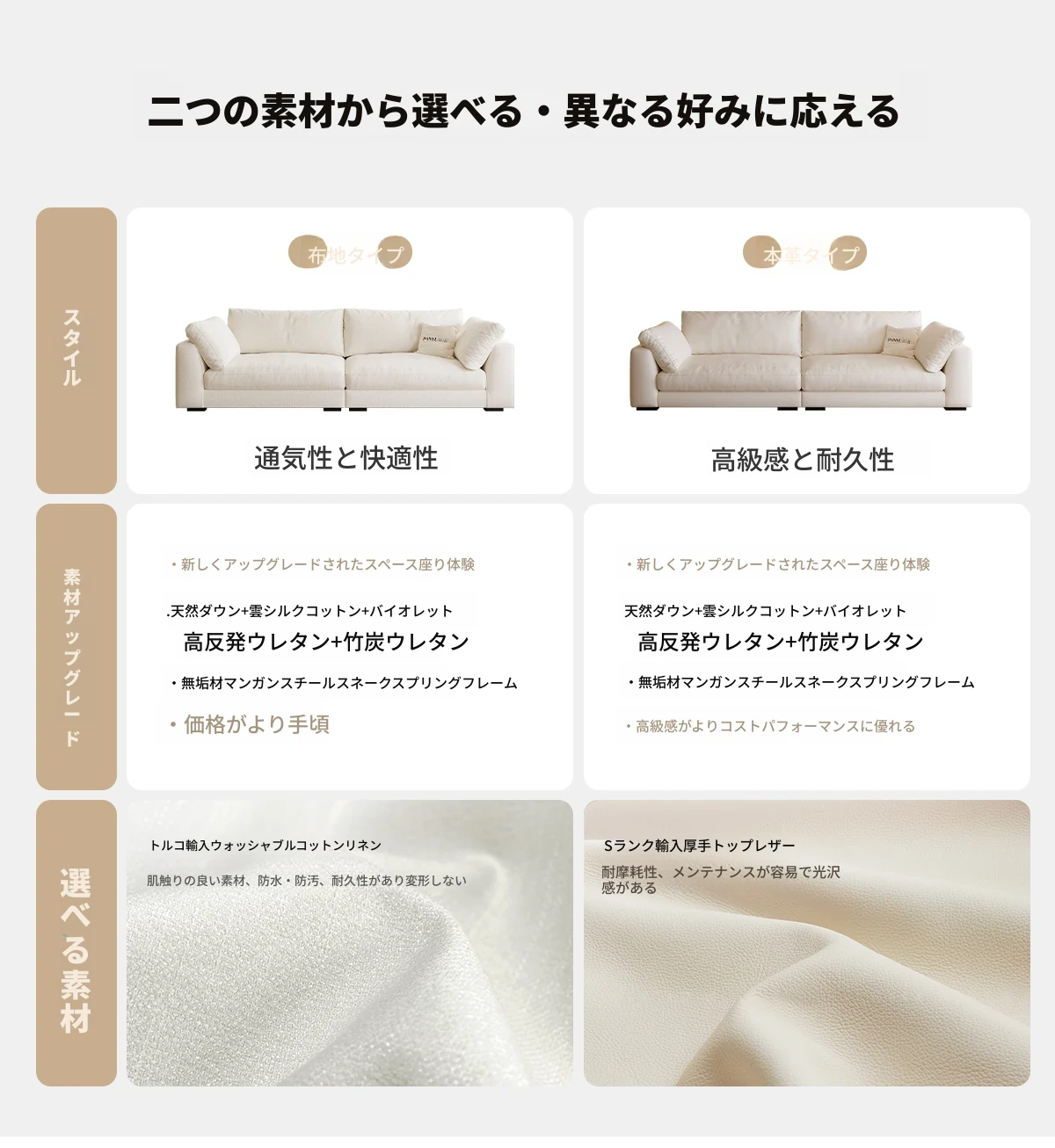 2.0メートル大ダブル用【(快適スタンダード版1.0m幅)+ダウンクッション座包】
