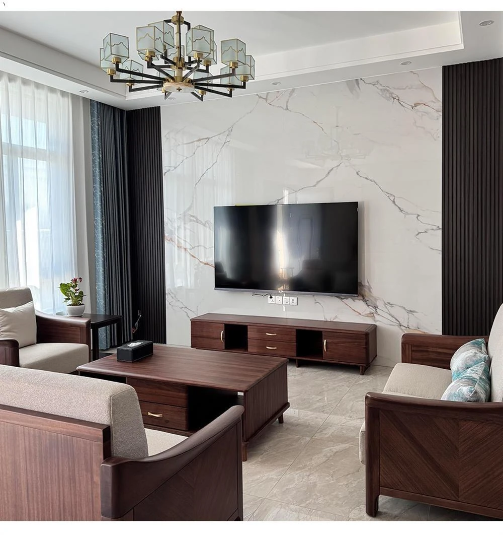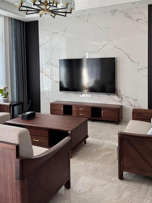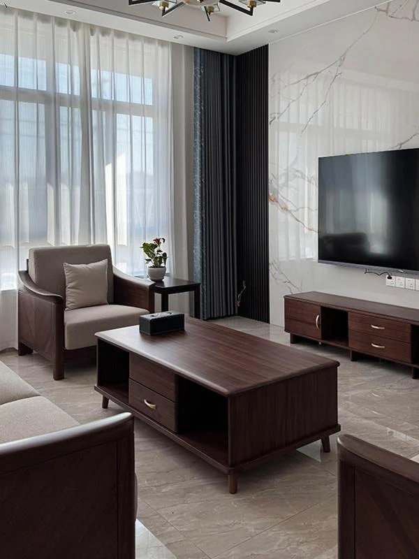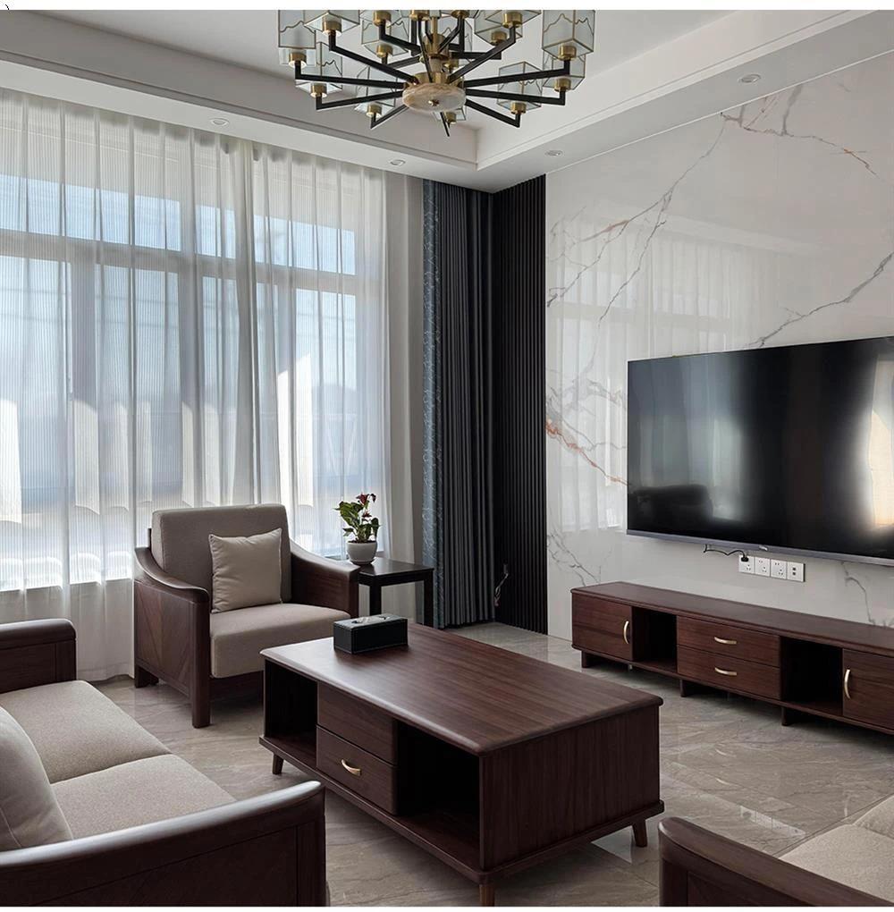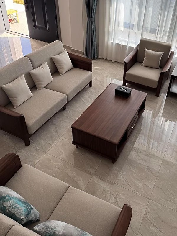 ウルキン材の無垢材ソファ|新中式スタイル|別荘リビングにぴったり!モダンでシンプルなデザイン|冬も夏も快適な布製ソファ|大小さまざまな間取りに対応可能!